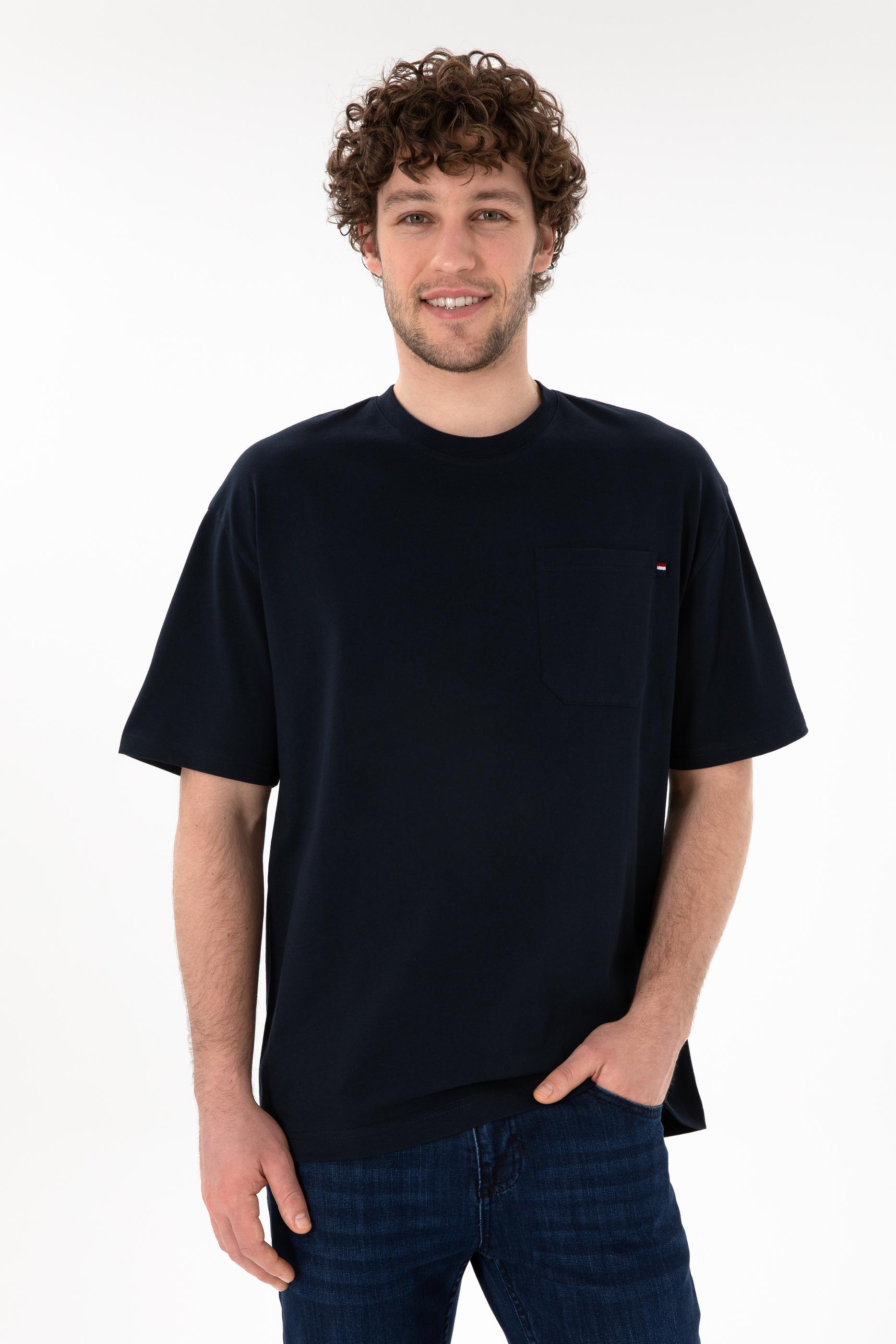 Erkek Comfort Fit Bisiklet Yaka Lacivert Tişört