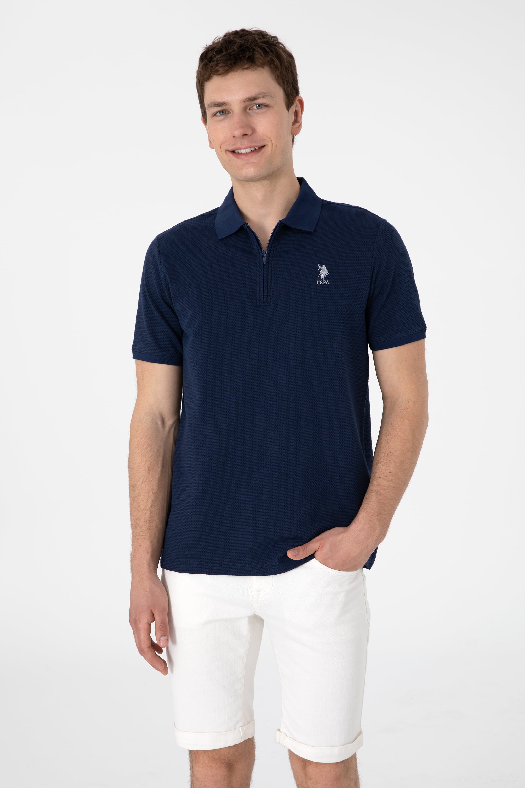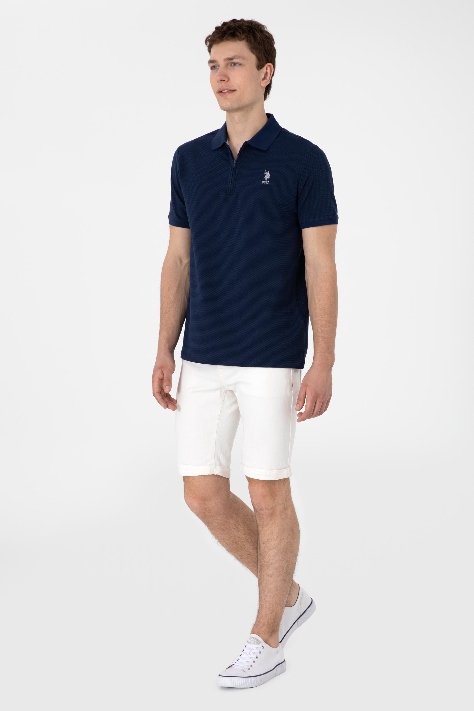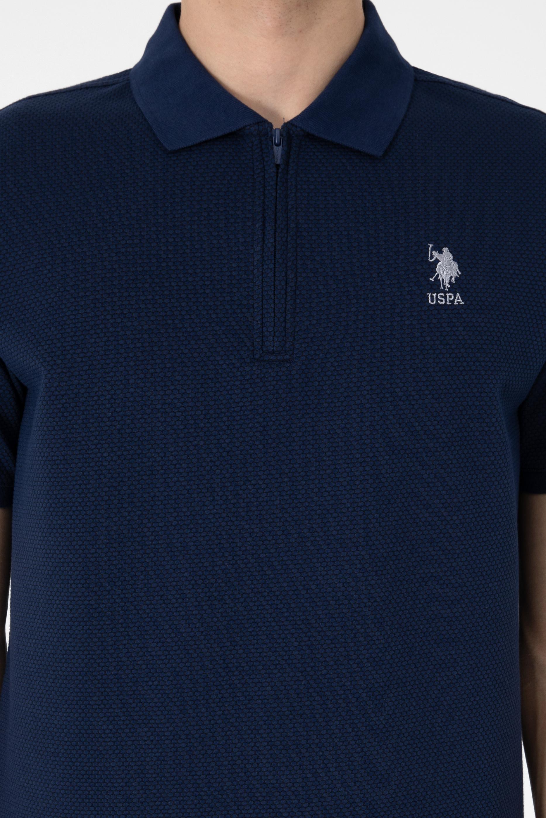 - Erkek Regular Fit Fermuarlı Lacivert Dokulu Tişört