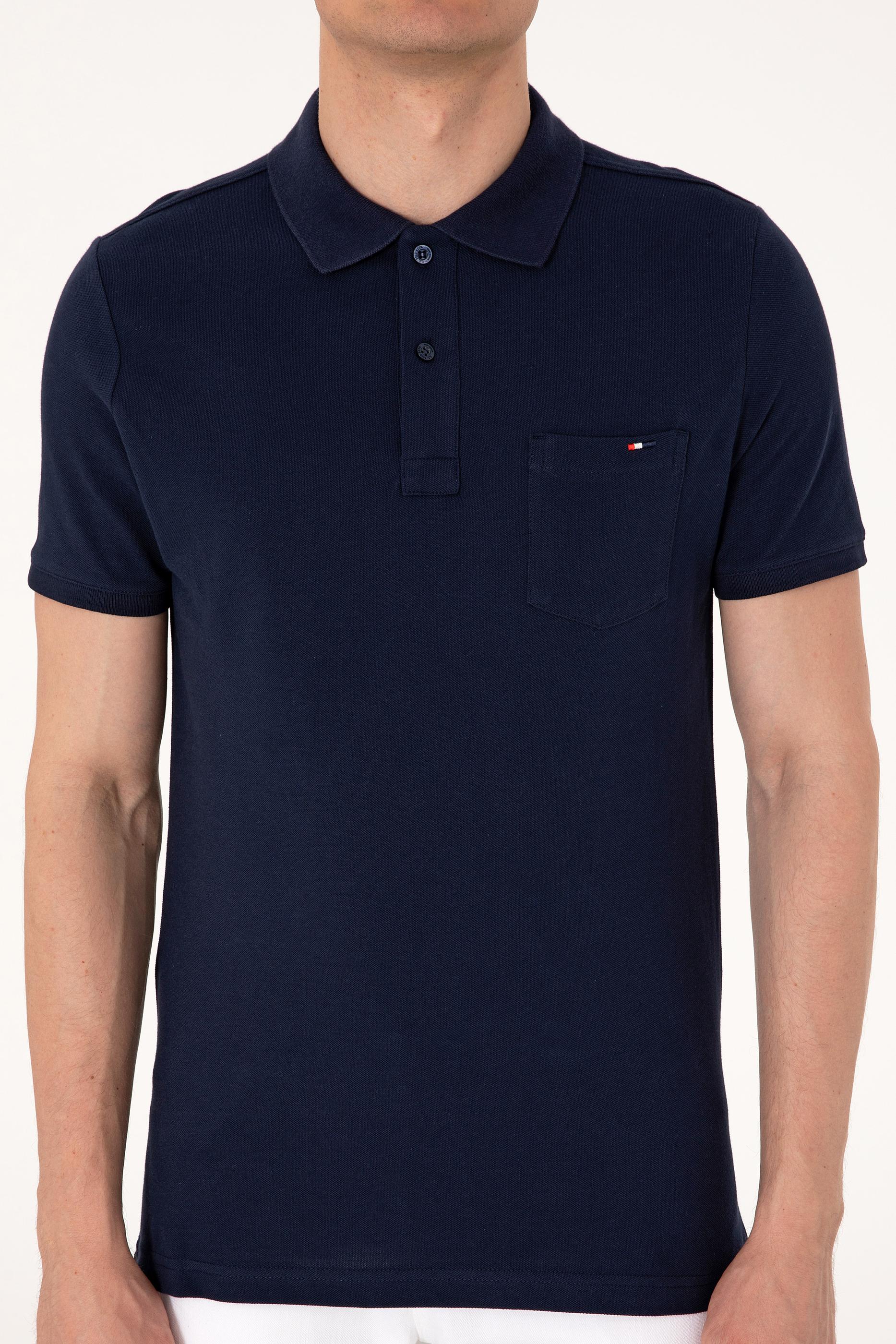 Erkek Regular Fit Polo Yaka Lacivert Cepli Tişört