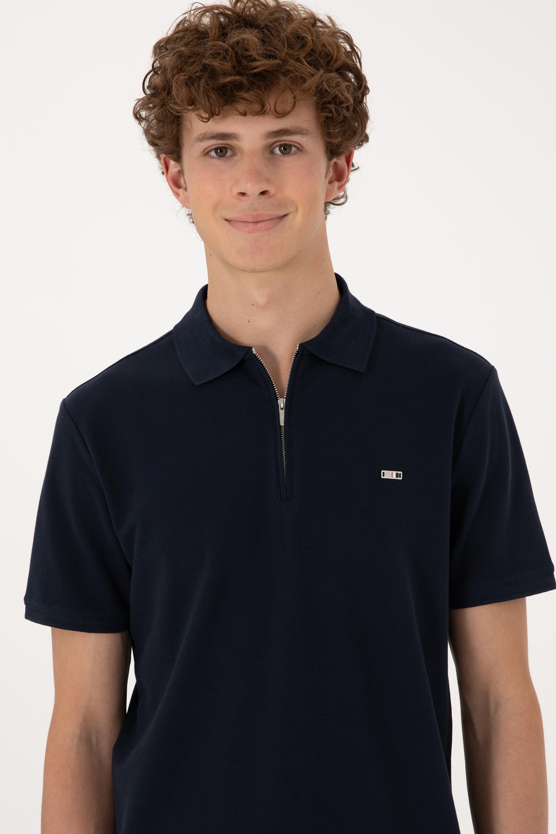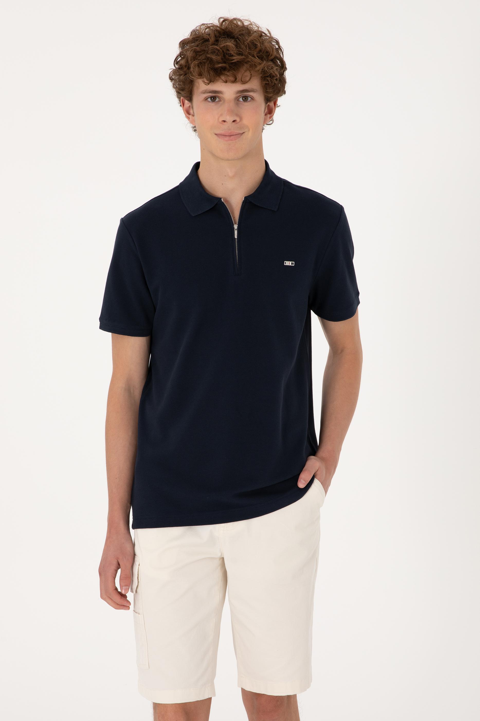 - Erkek Regular Fit Fermuarlı Lacivert Tişört