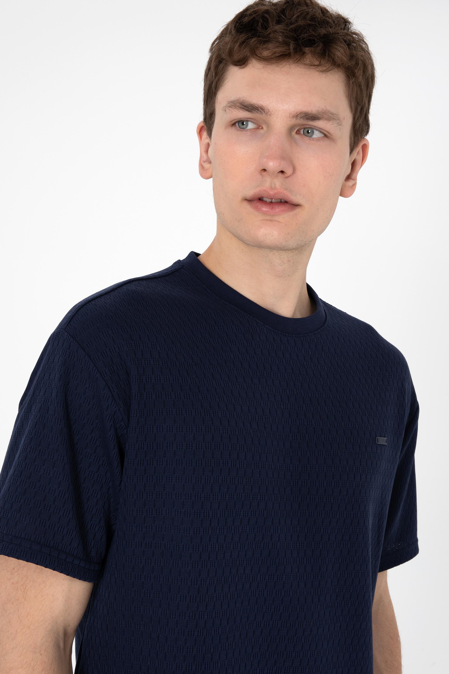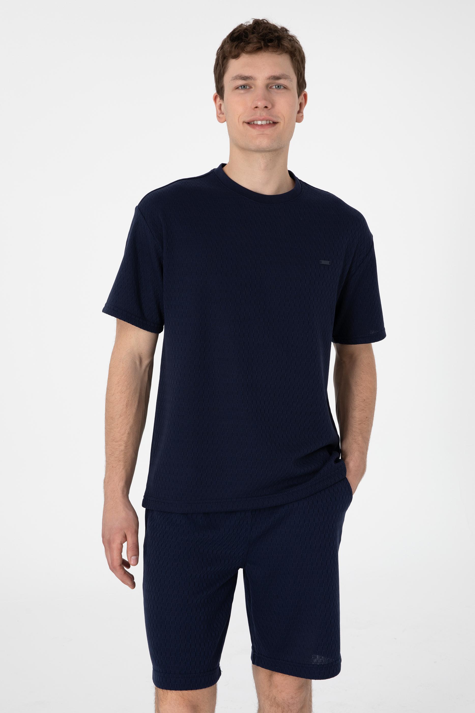 - Erkek Comfort Fit Bisiklet Yaka Lacivert Tişört