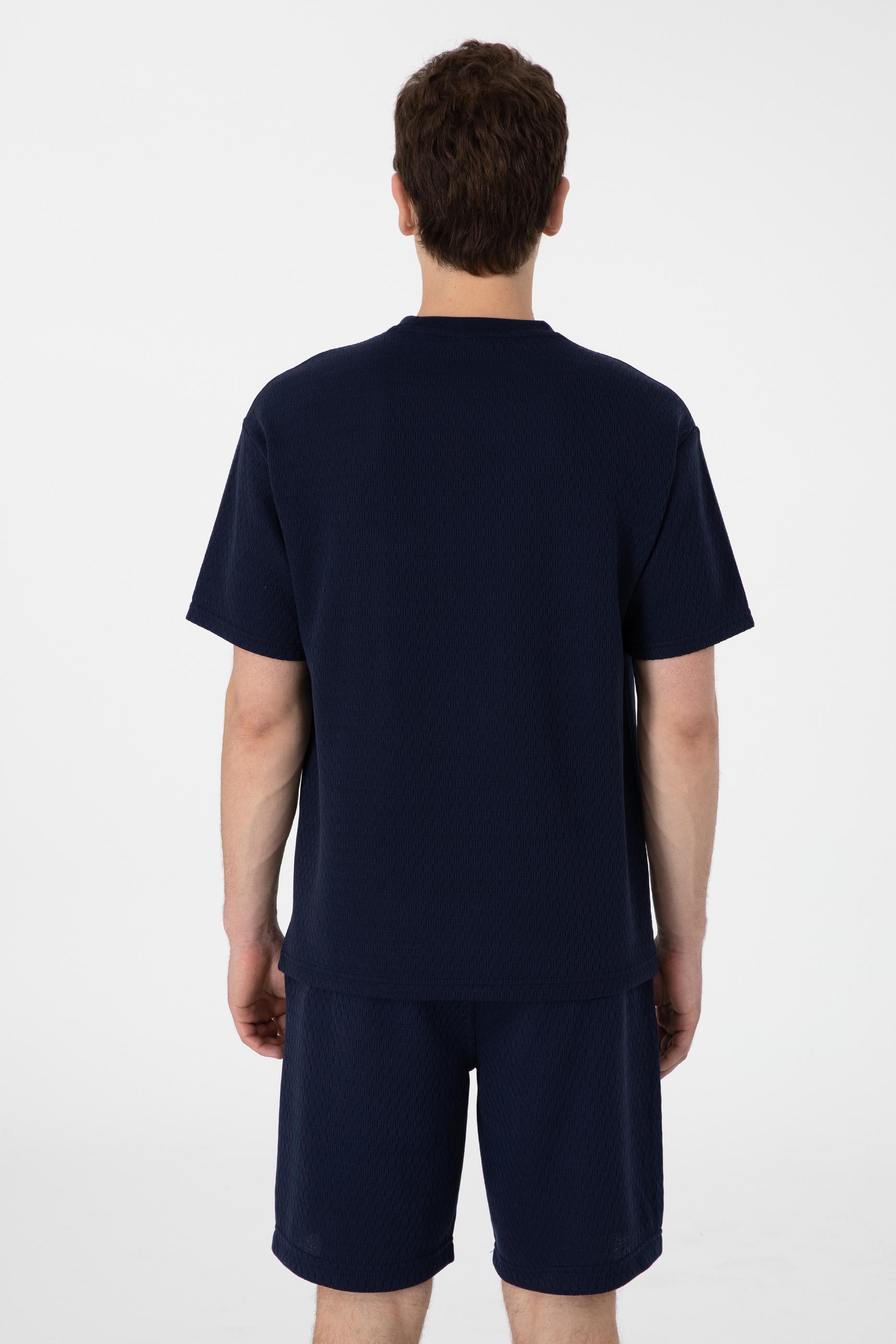 Erkek Comfort Fit Bisiklet Yaka Lacivert Tişört