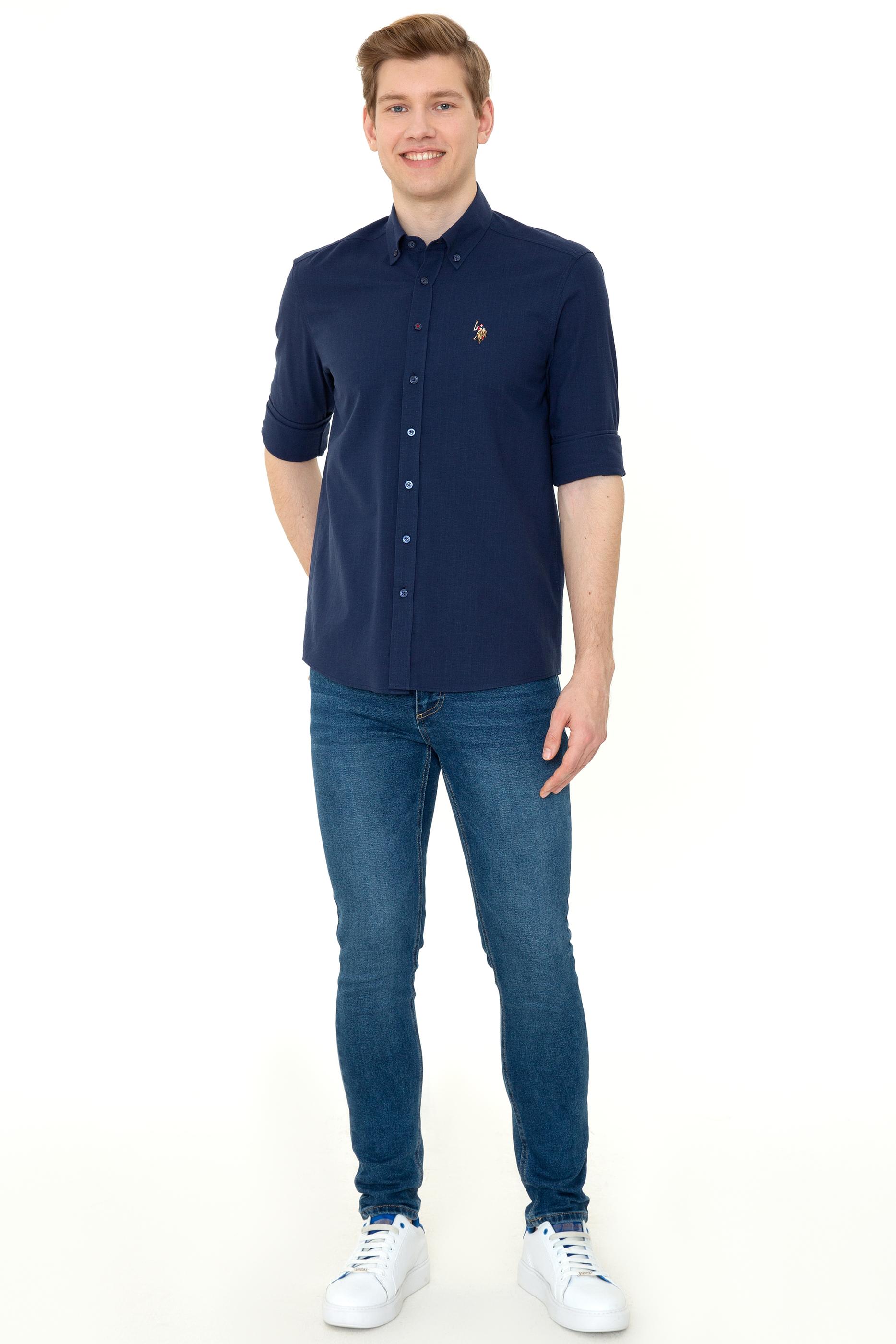 Erkek Lacivert Uzun Kollu Basic Gömlek