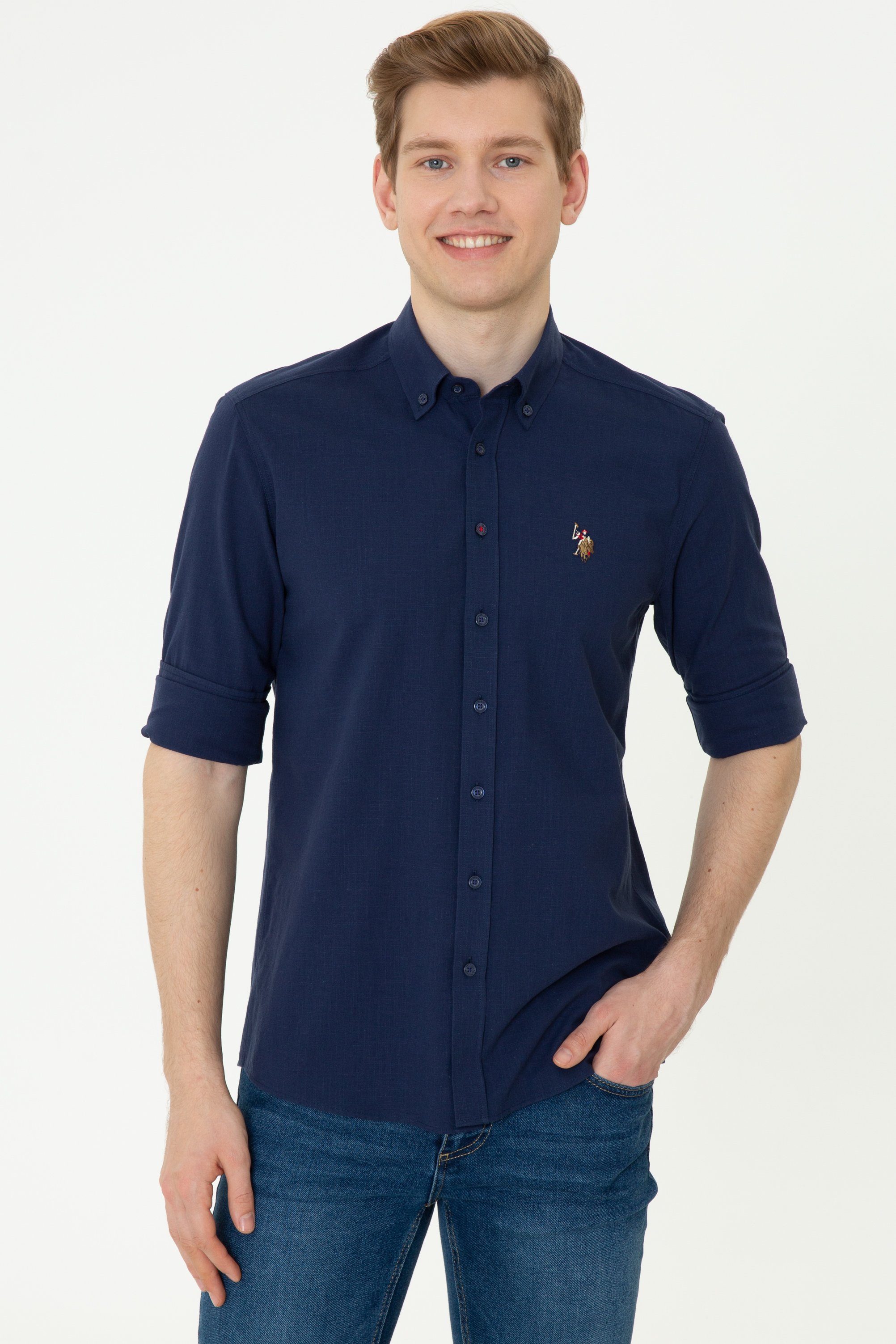 - Erkek Lacivert Uzun Kollu Basic Gömlek