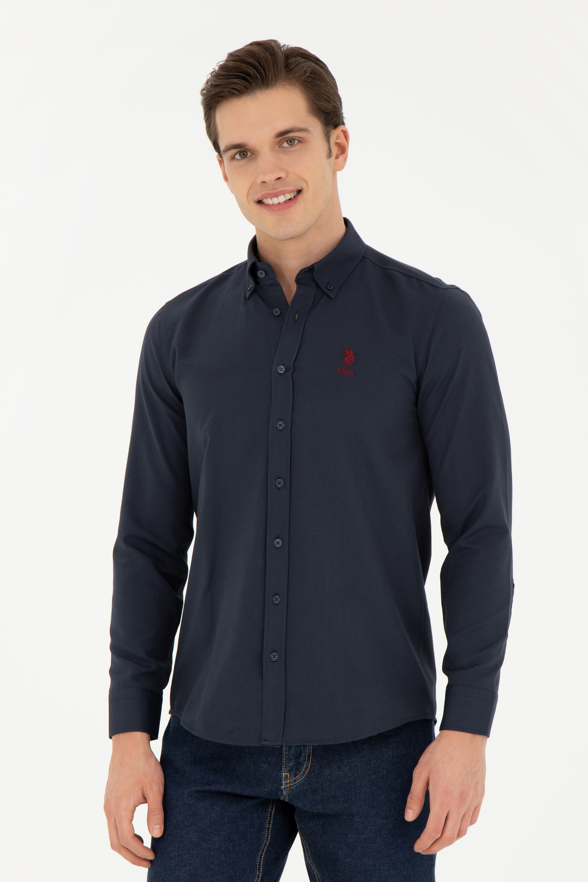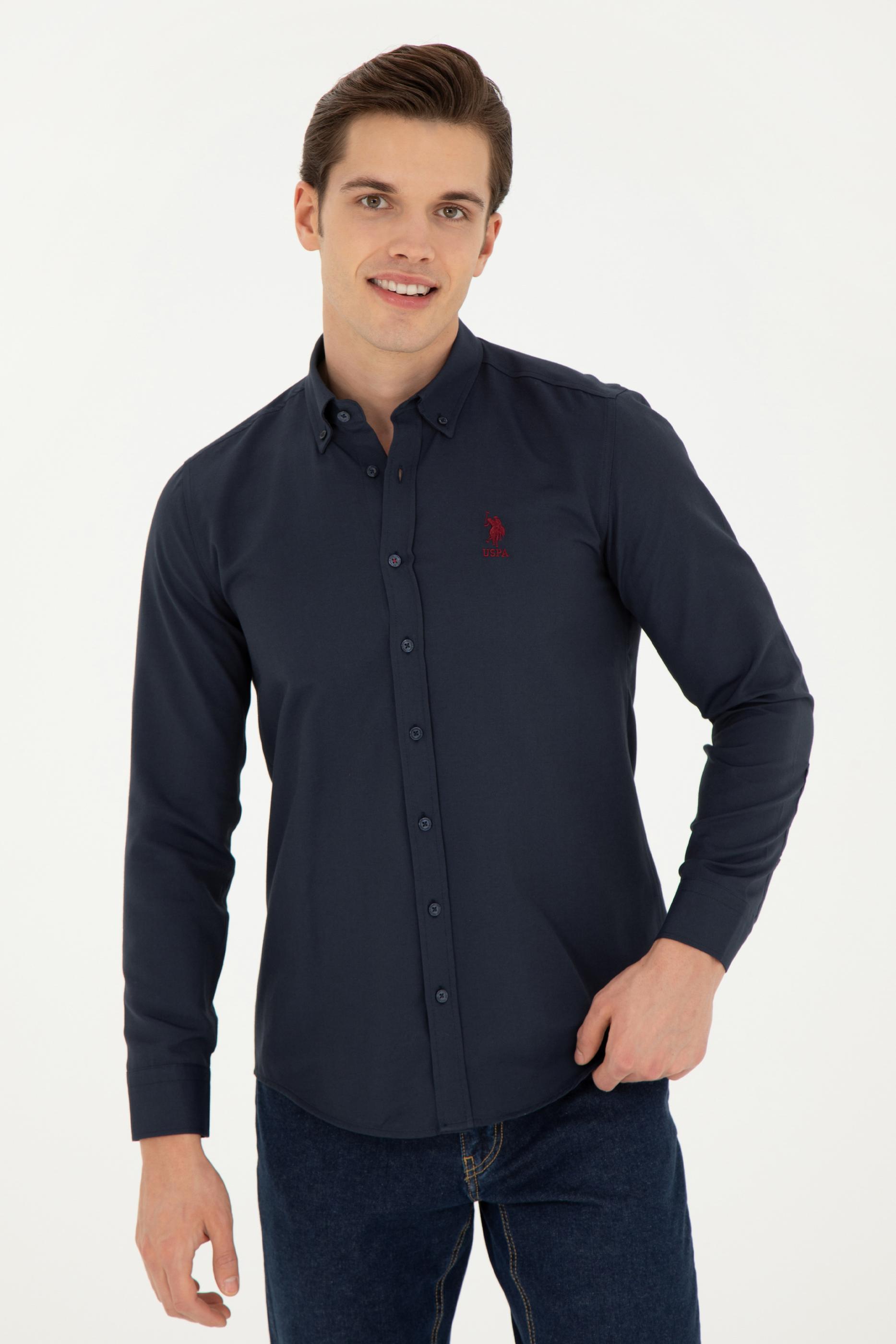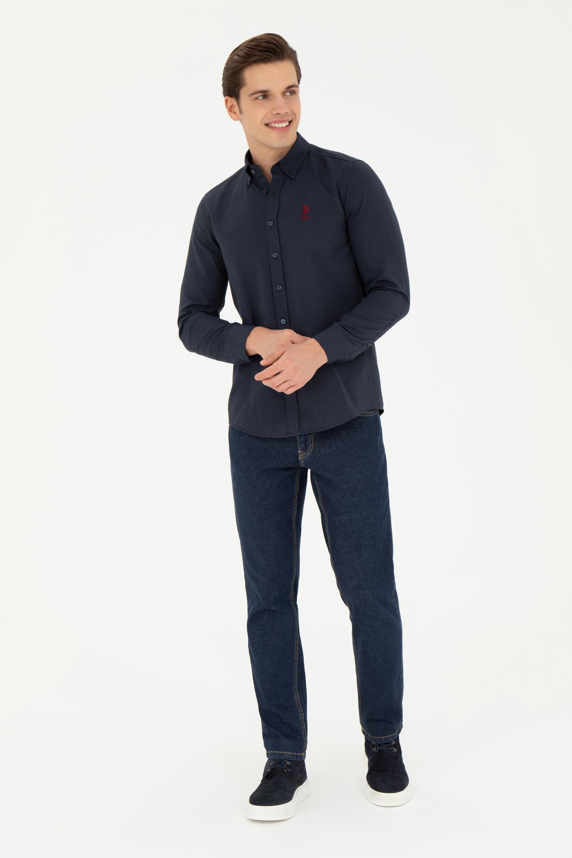 Erkek Lacivert Uzun Kollu Basic Gömlek