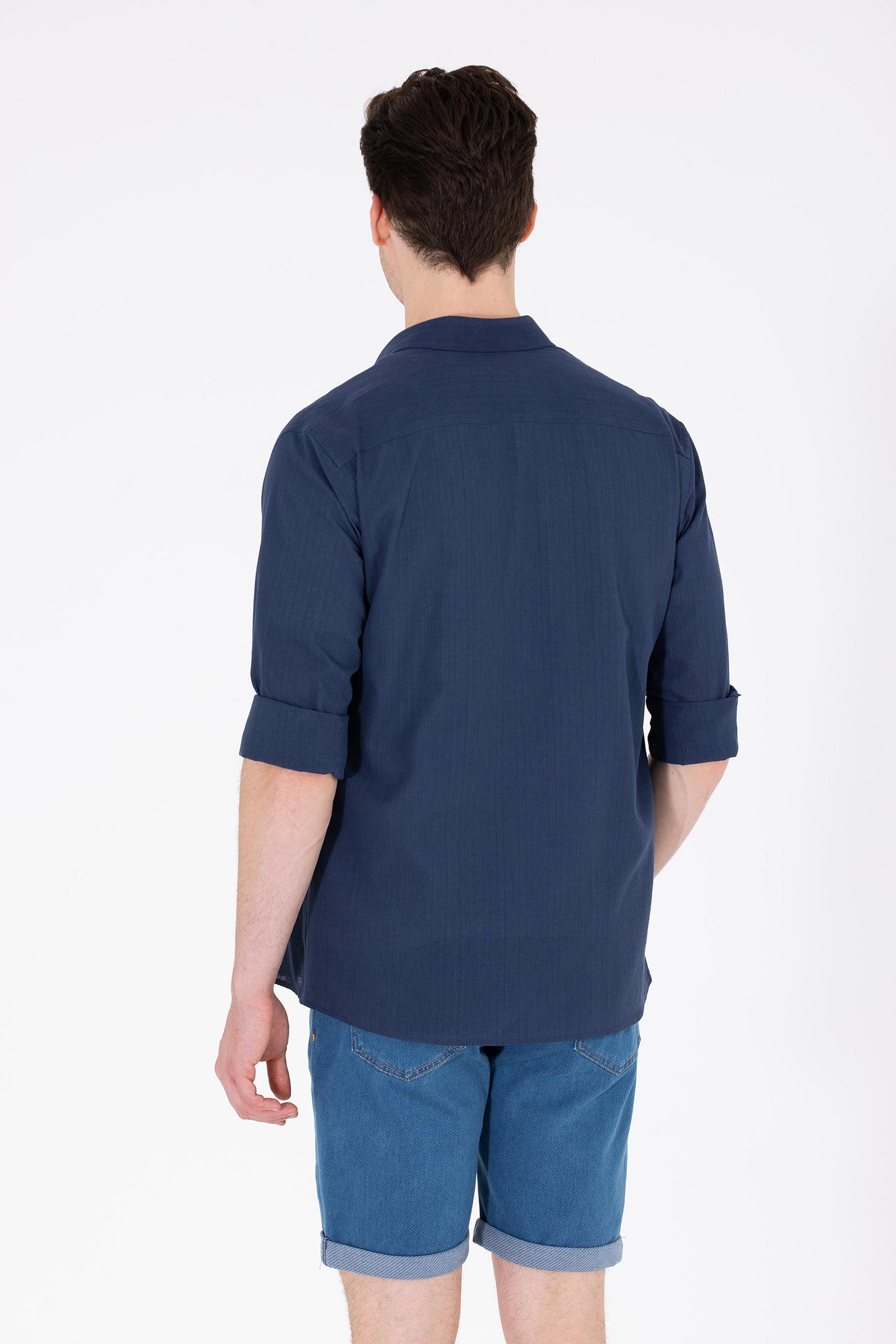 Erkek Lacivert Uzun Kollu Basic Gömlek