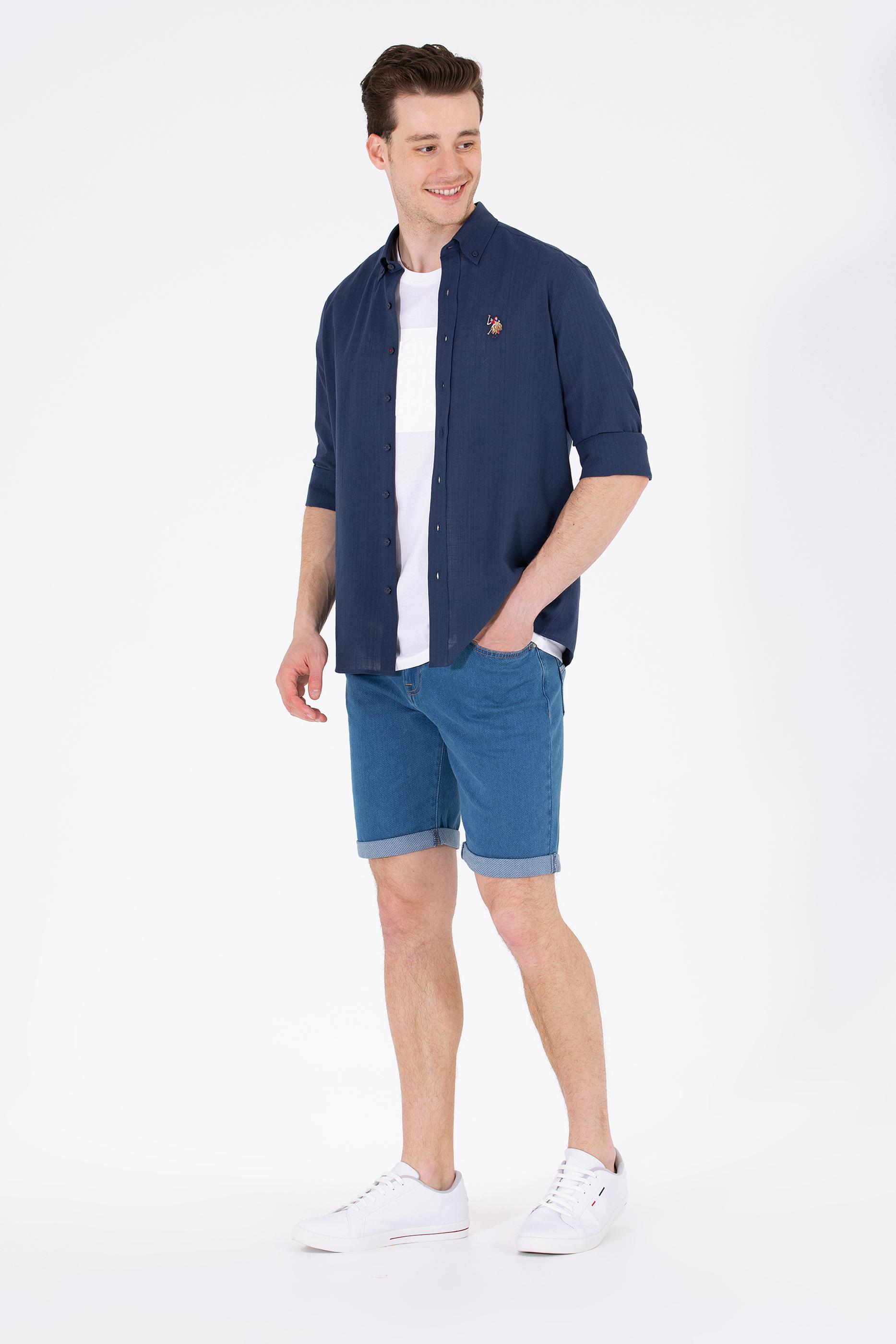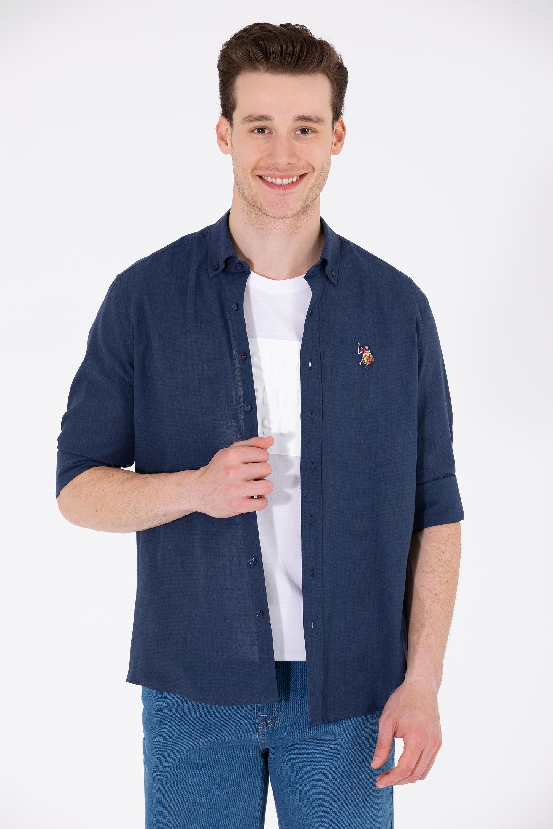 - Erkek Lacivert Uzun Kollu Basic Gömlek