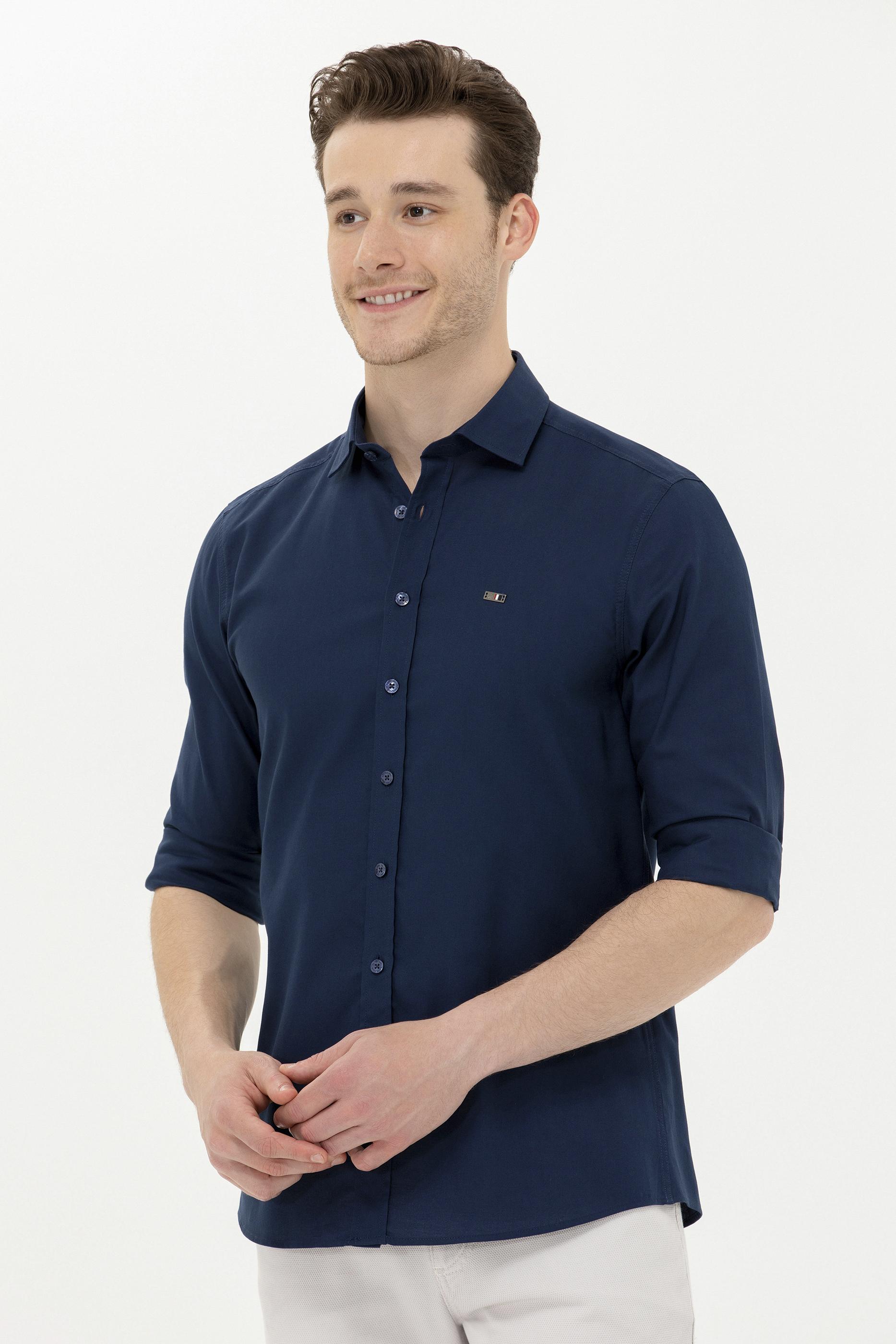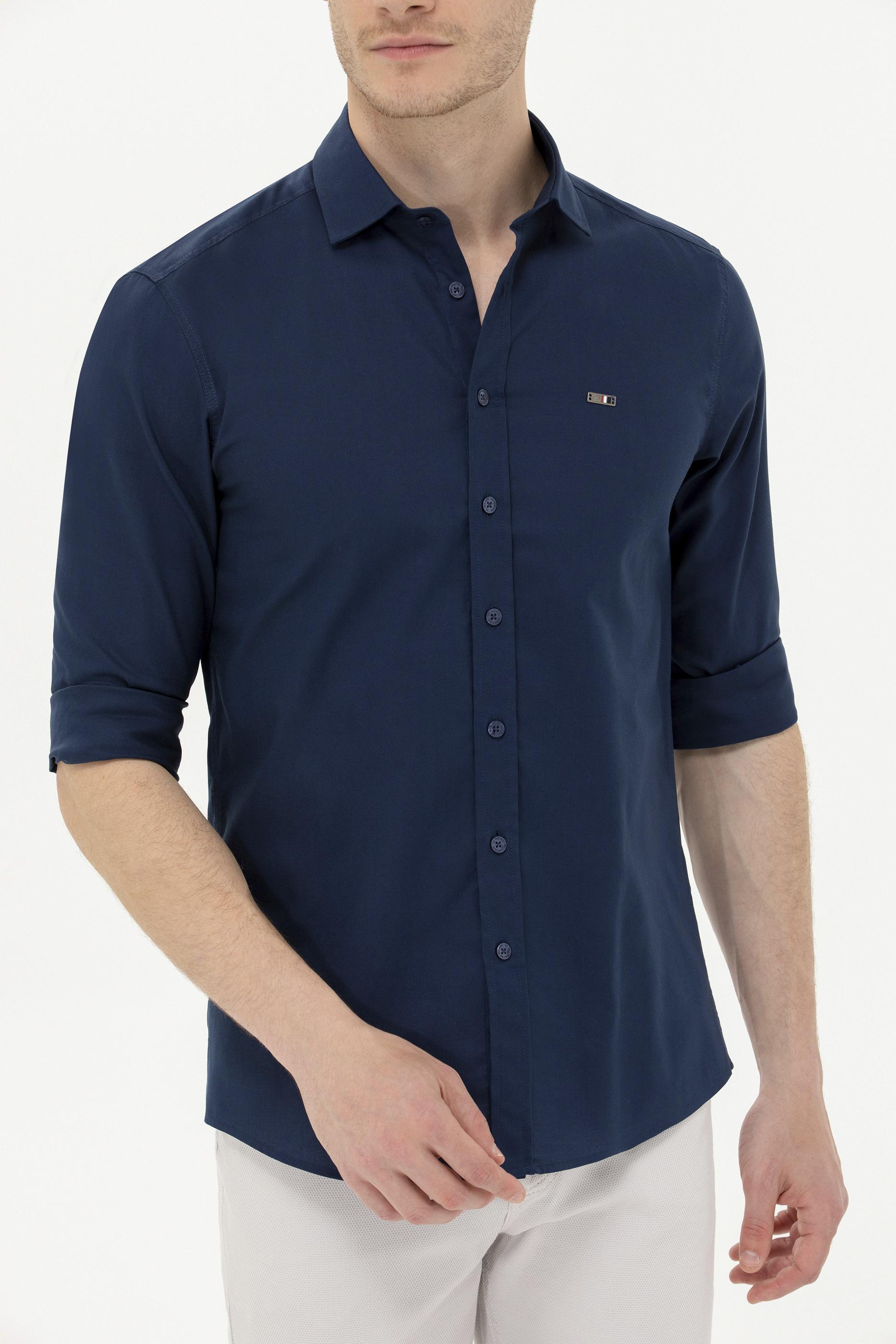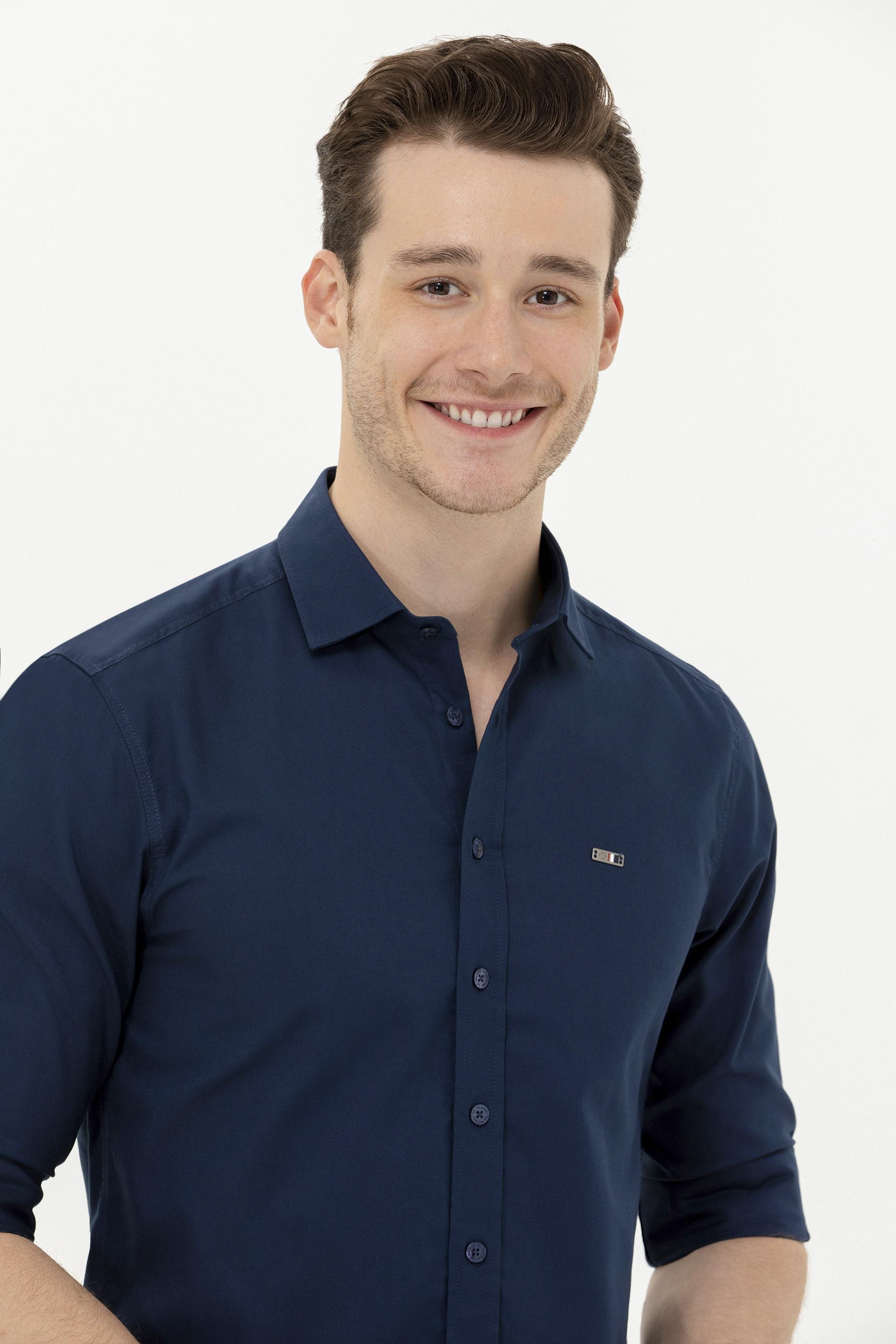 Erkek Lacivert Uzun Kollu Basic Gömlek