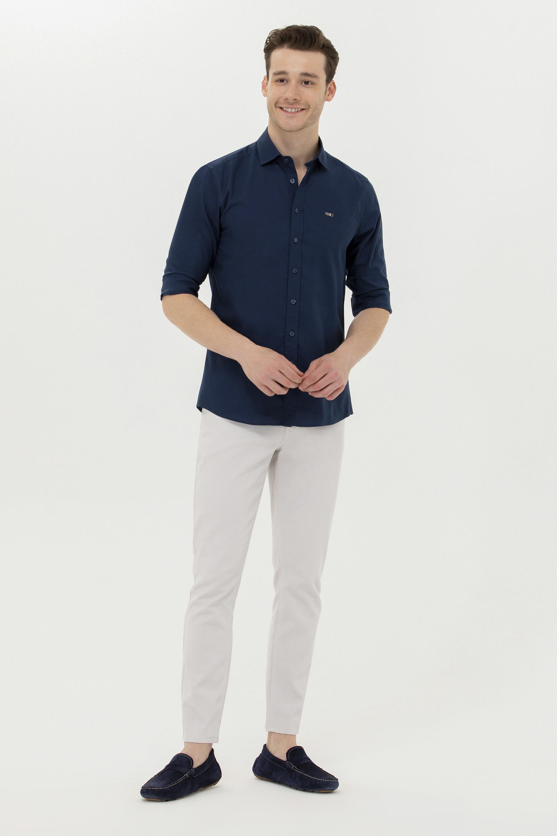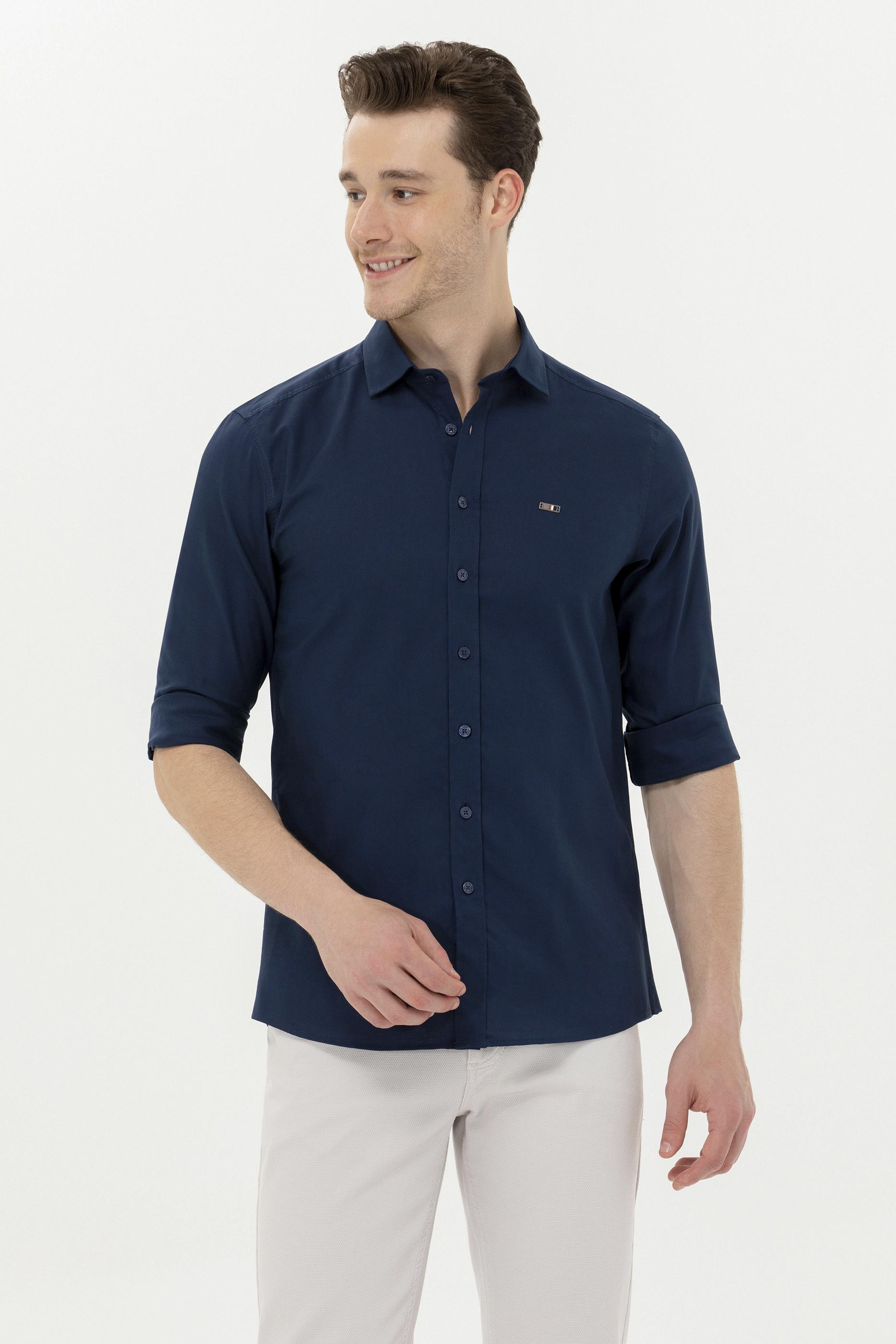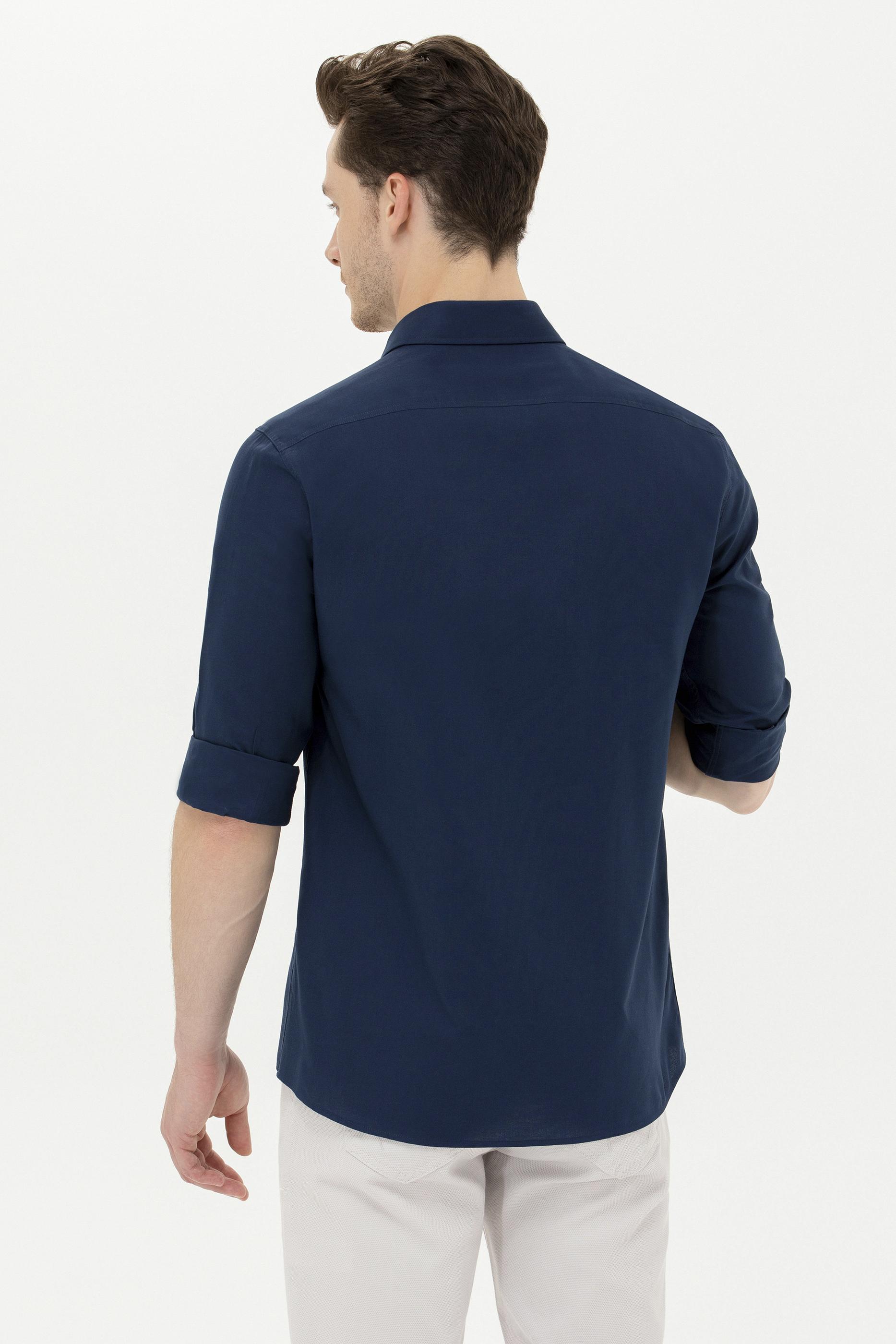 Erkek Lacivert Uzun Kollu Basic Gömlek