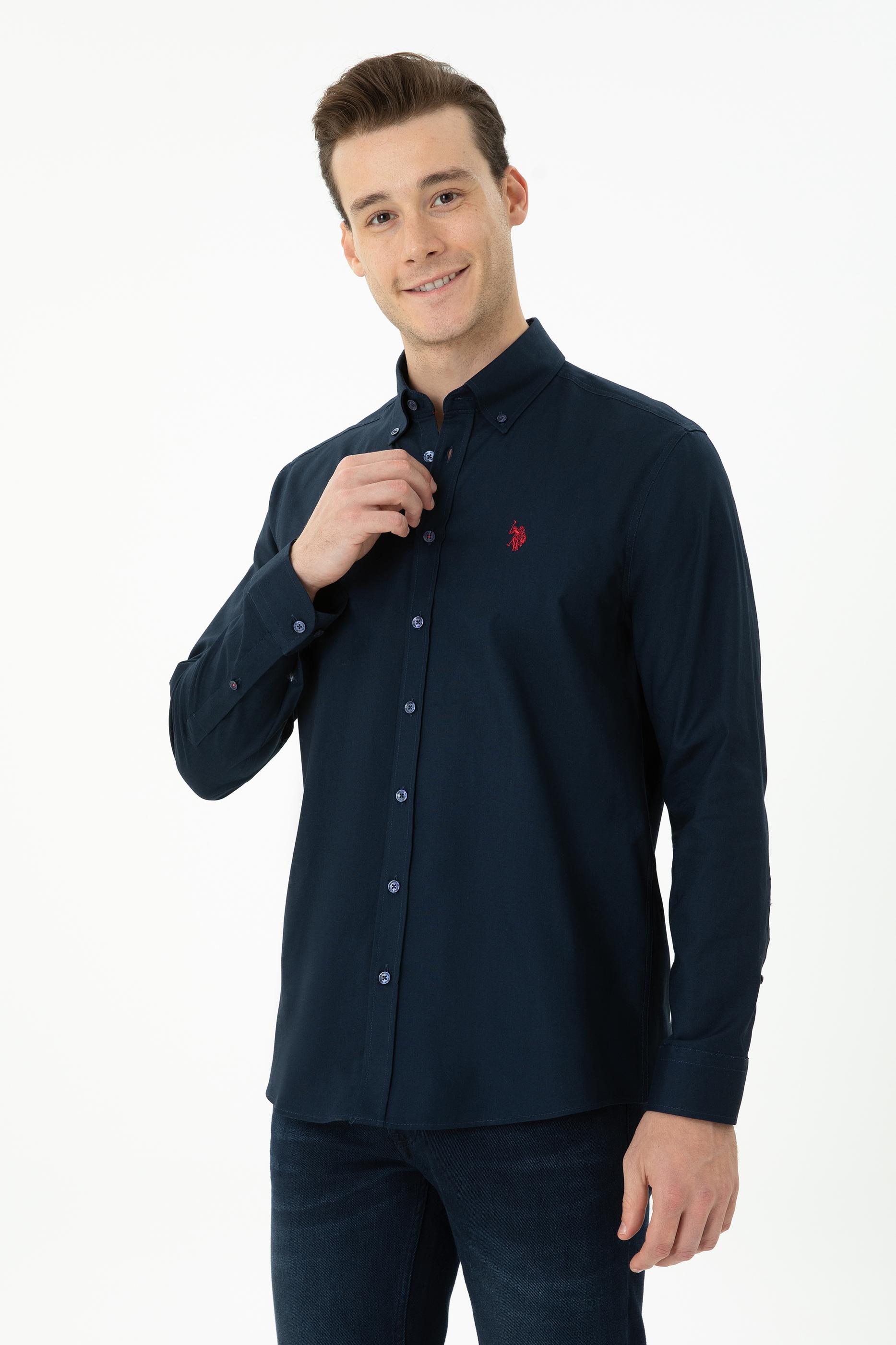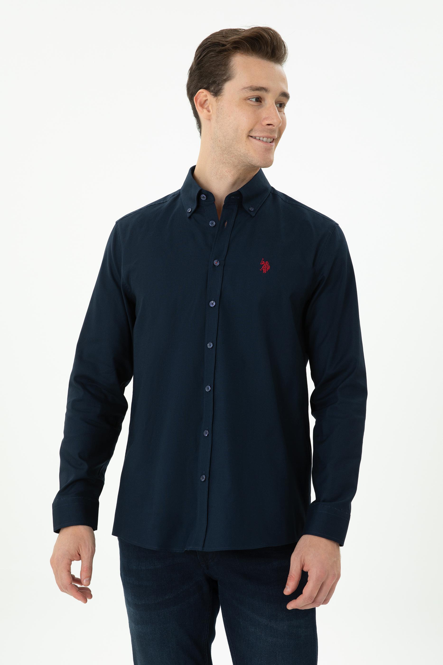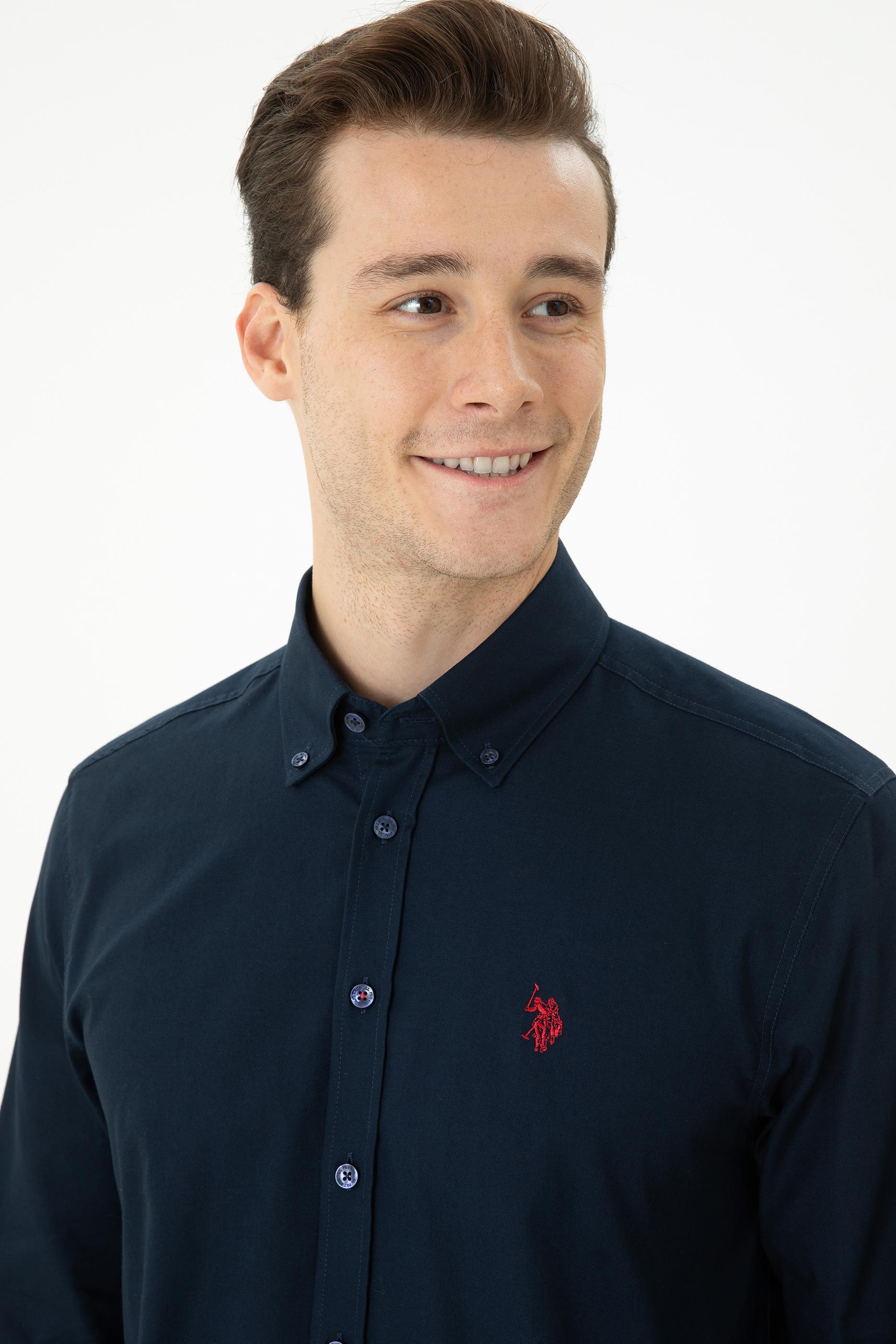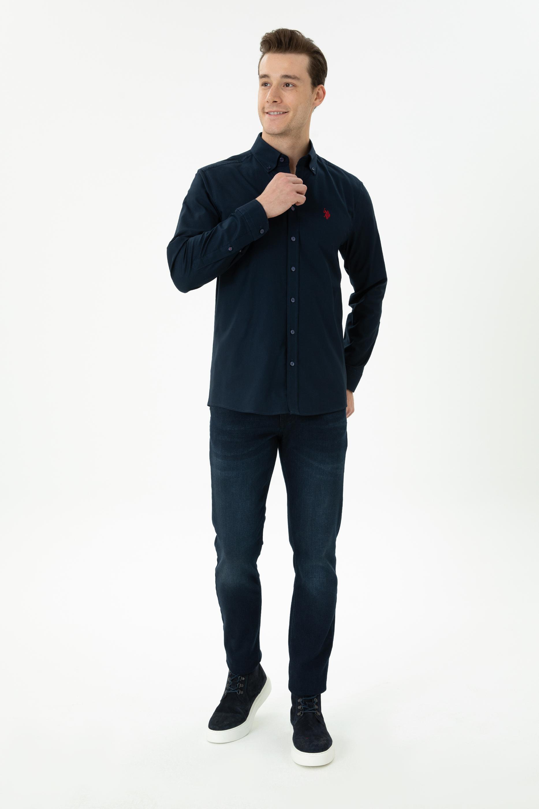 Erkek Lacivert Uzun Kollu Basic Gömlek