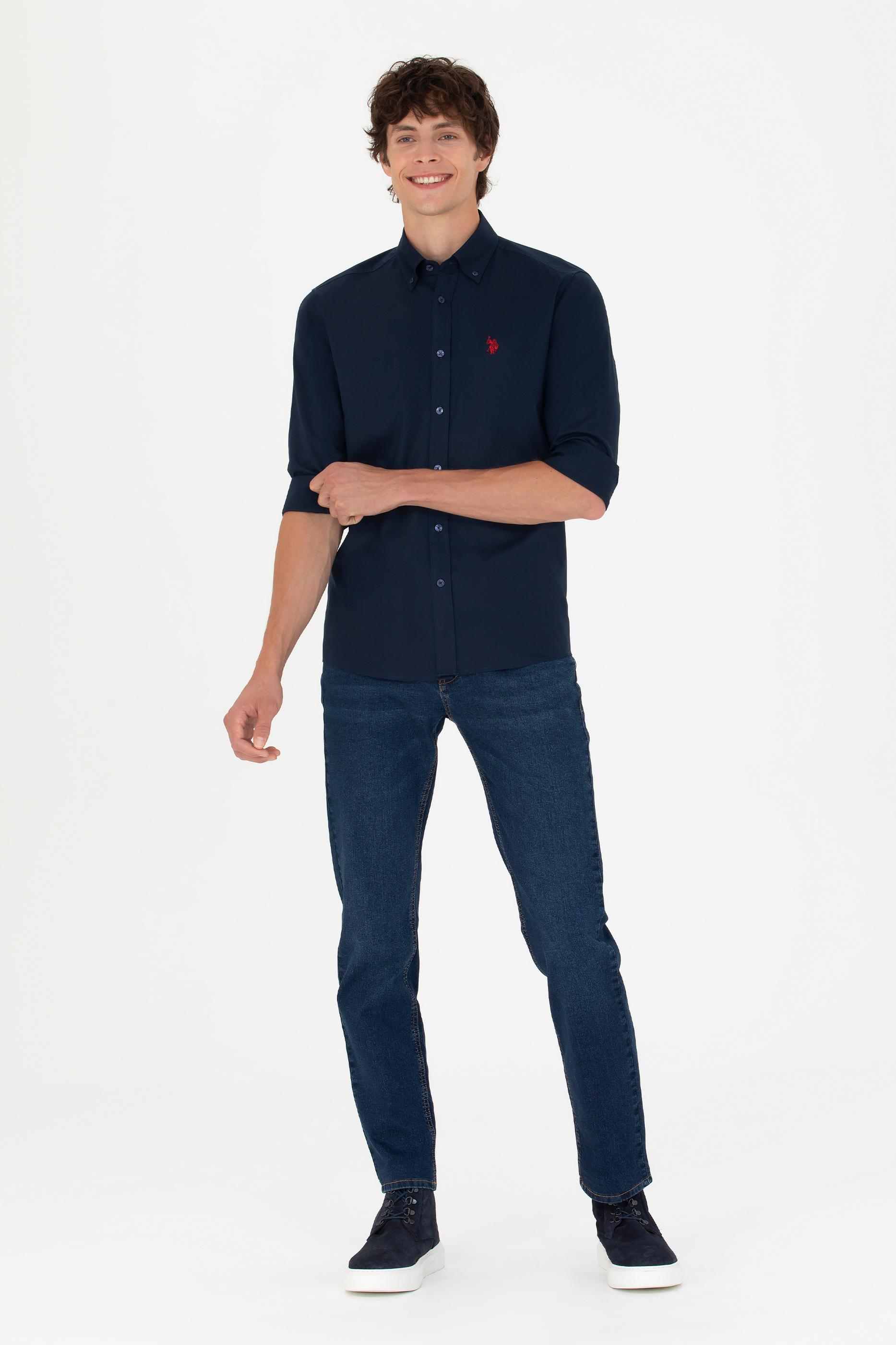 Erkek Lacivert Uzun Kollu Basic Gömlek