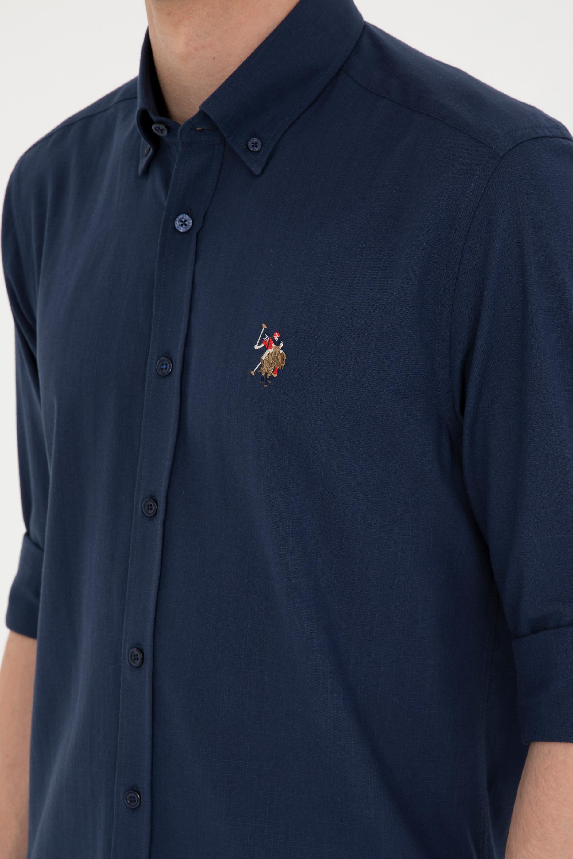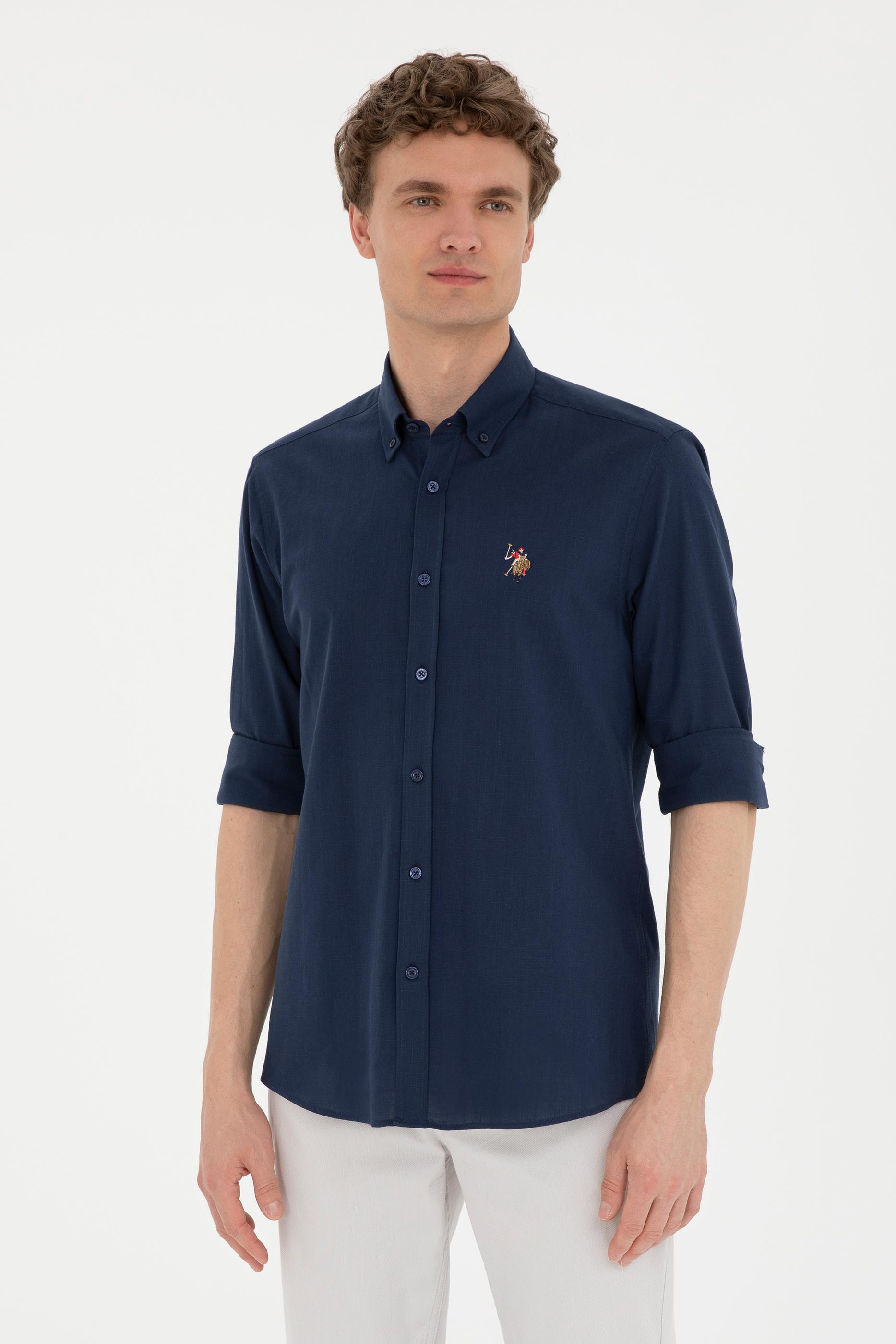 Erkek Lacivert Uzun Kollu Basic Gömlek