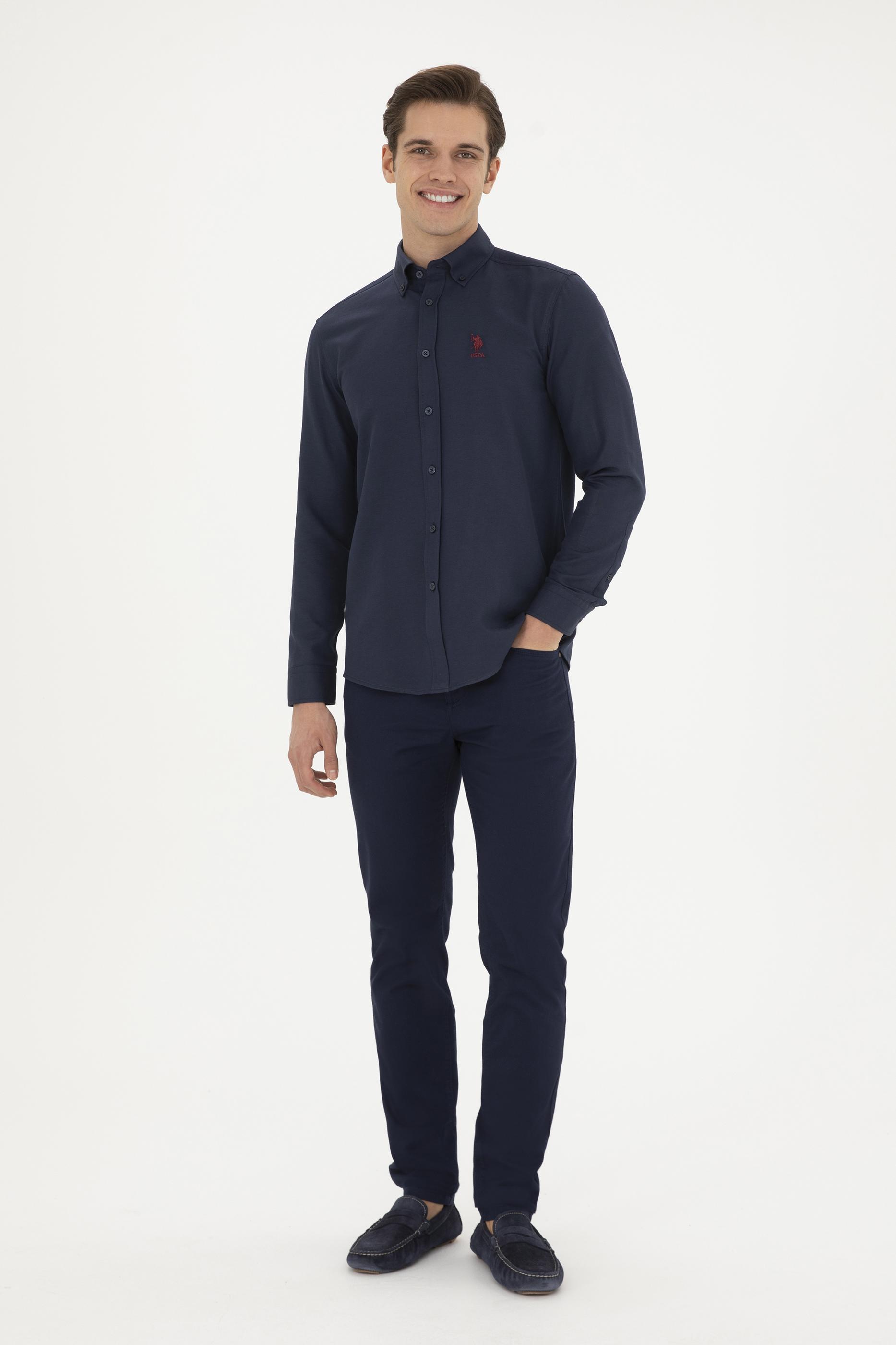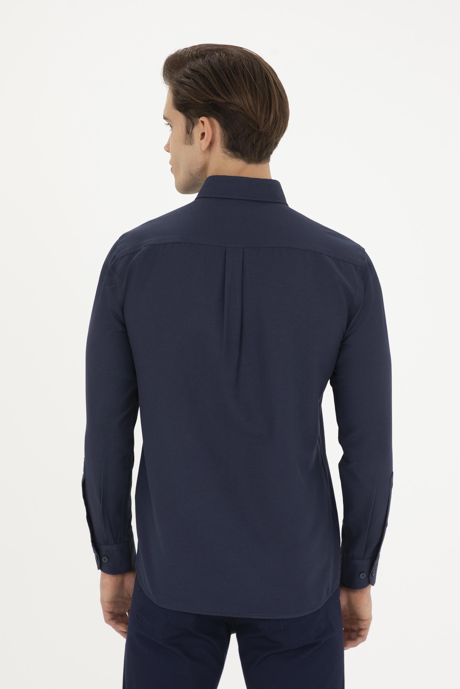 Erkek Lacivert Uzun Kollu Basic Gömlek