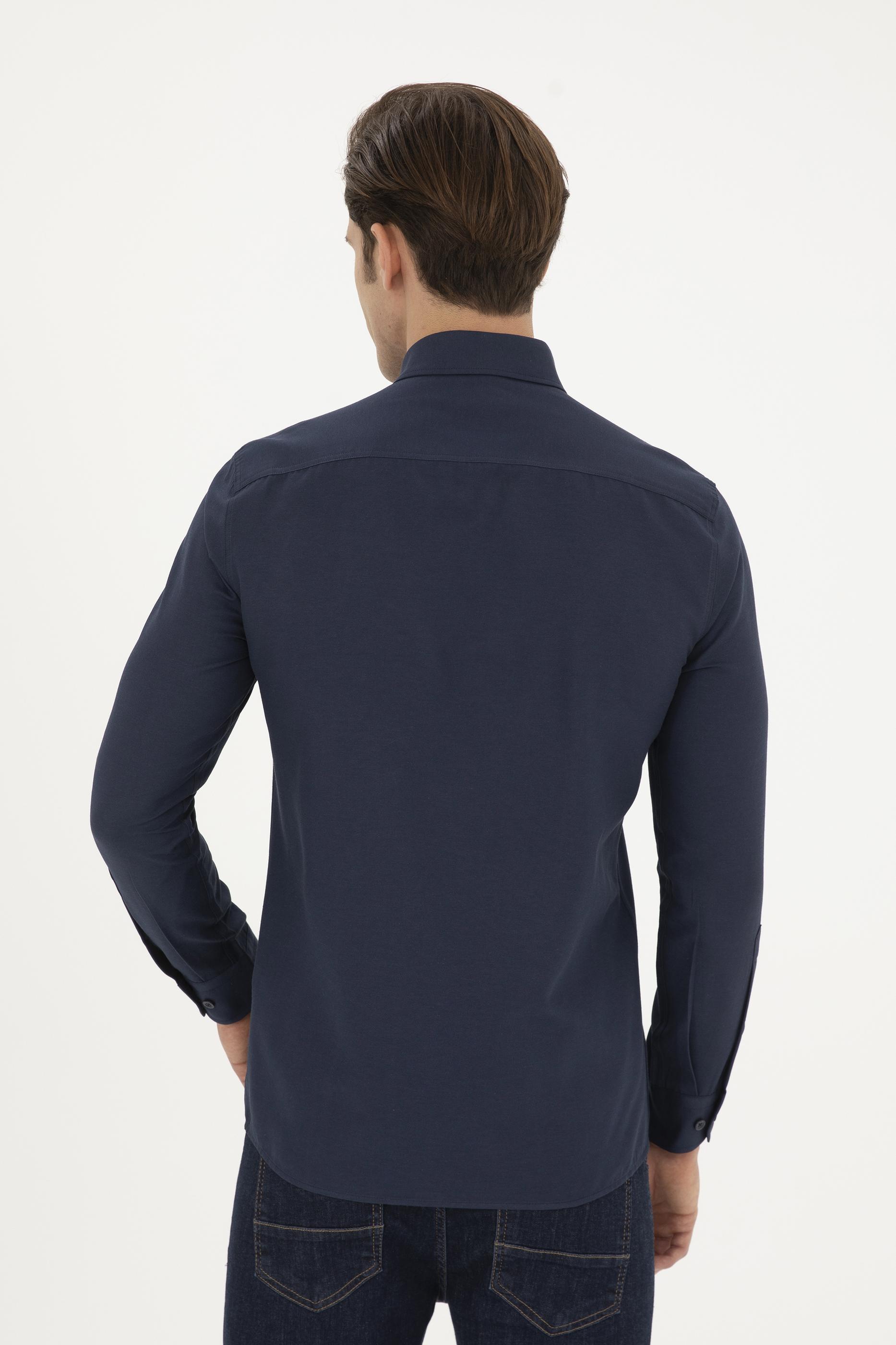 Erkek Lacivert Uzun Kollu Basic Gömlek
