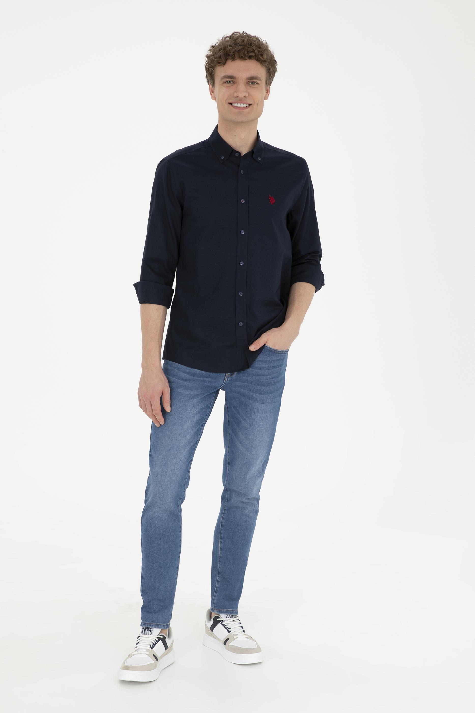Erkek Lacivert Uzun Kollu Basic Gömlek