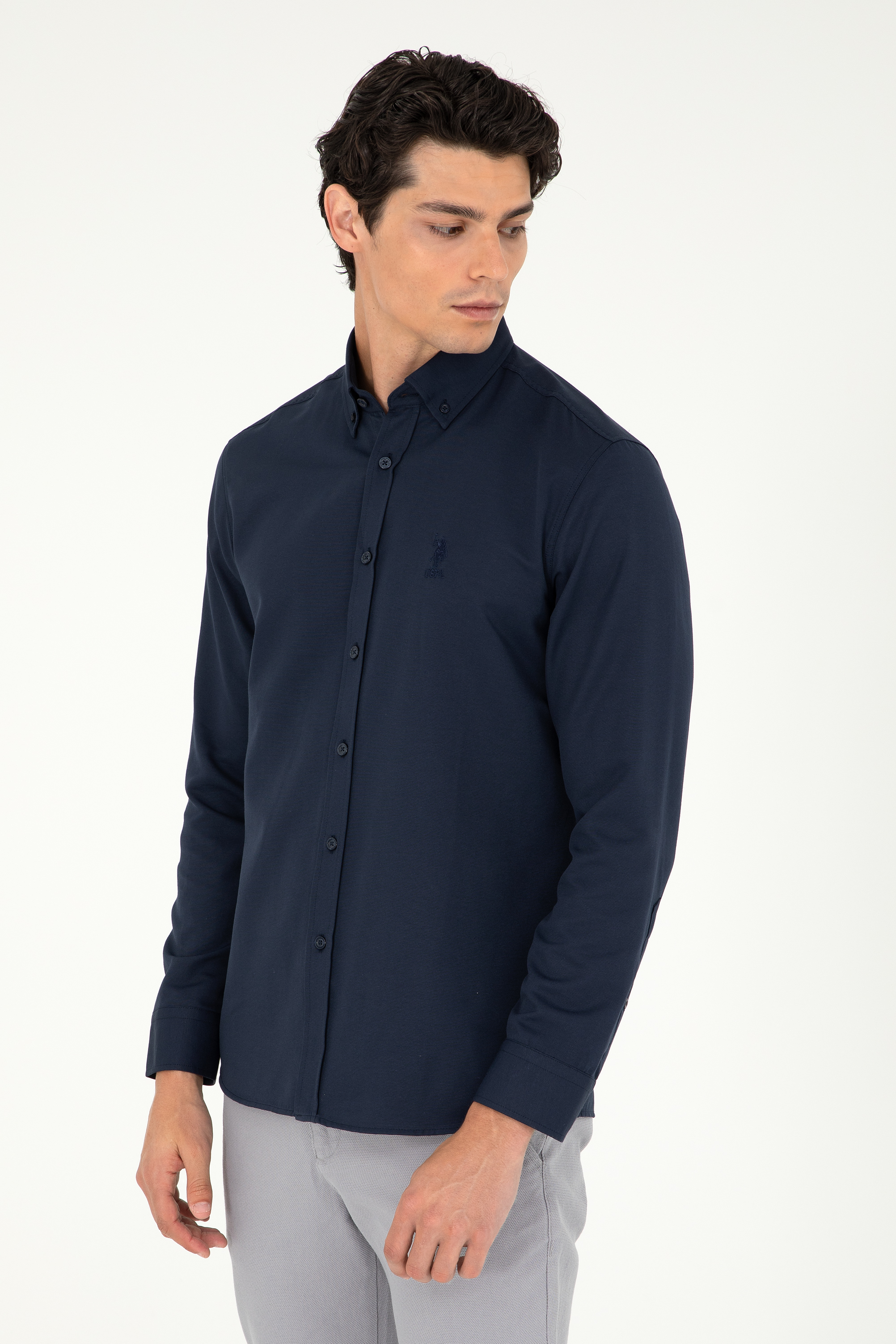Erkek Lacivert Uzun Kollu Basic Gömlek