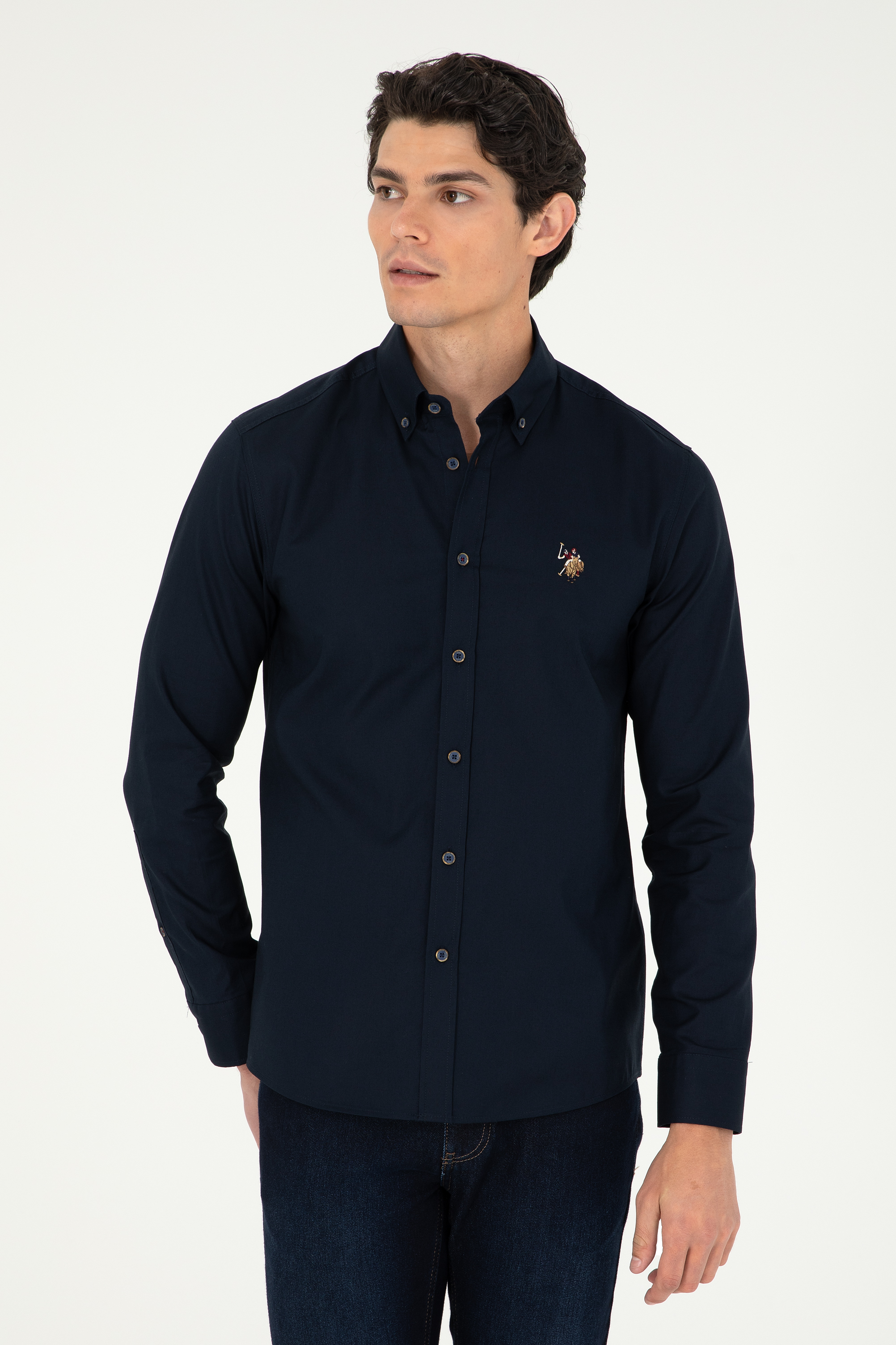 Erkek Lacivert Uzun Kollu Basic Gömlek