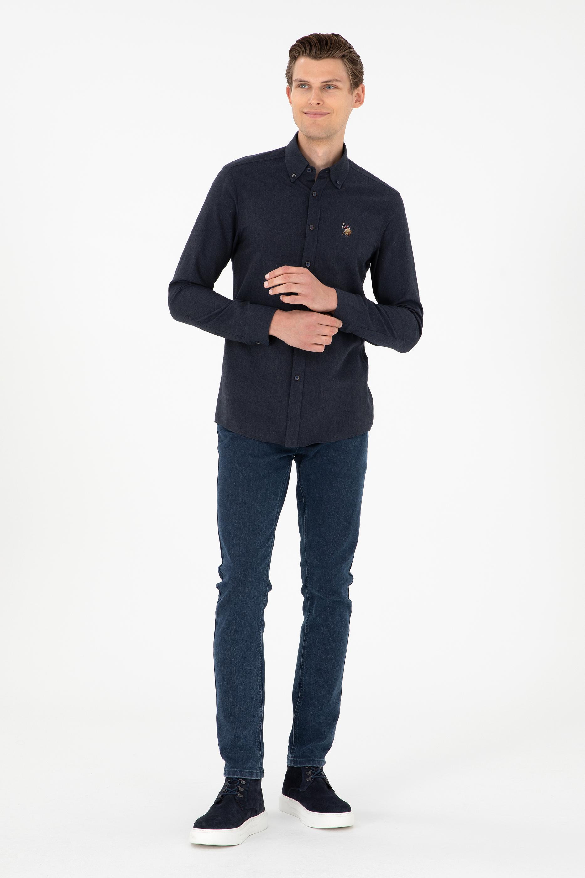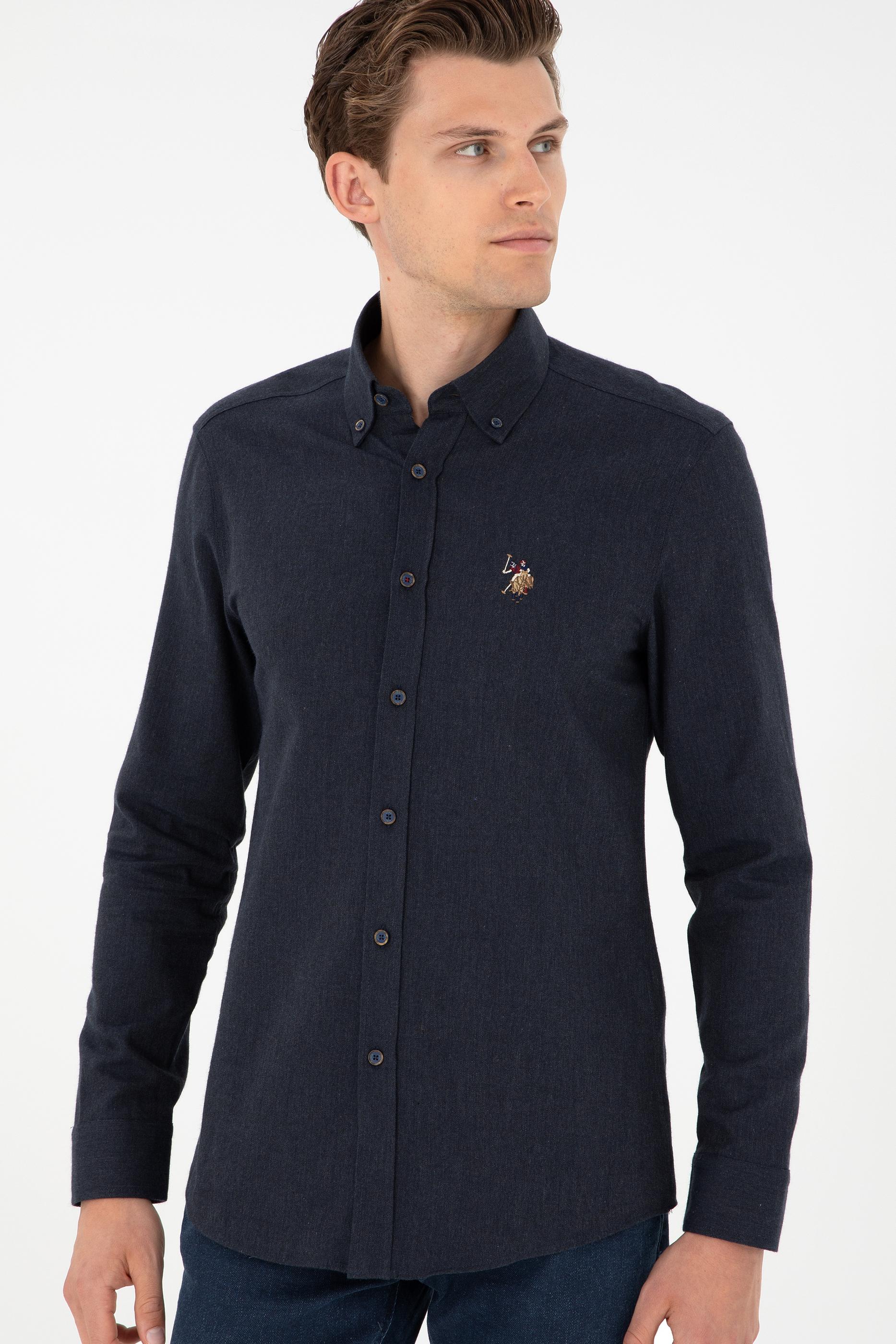 Erkek Lacivert Uzun Kollu Basic Gömlek