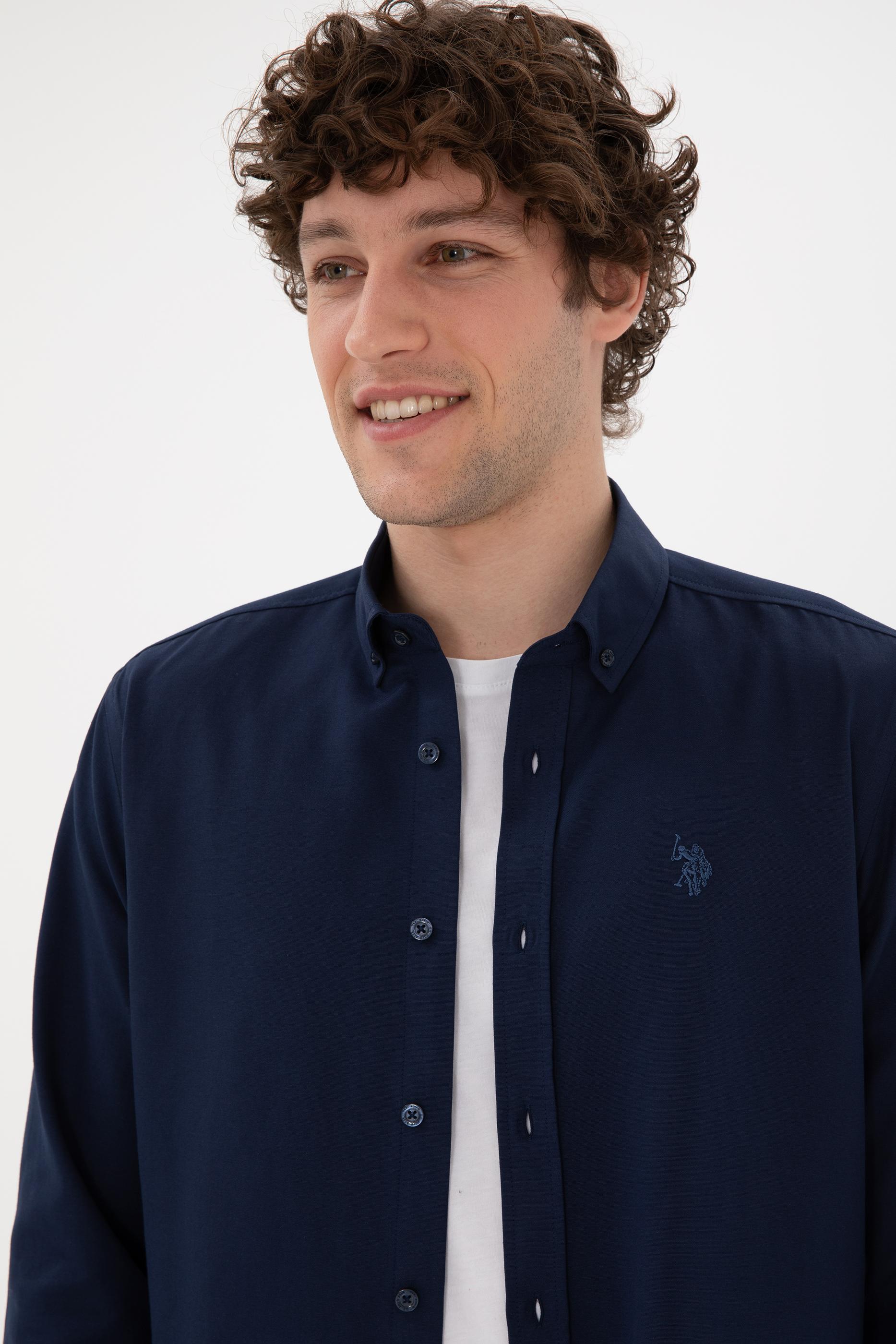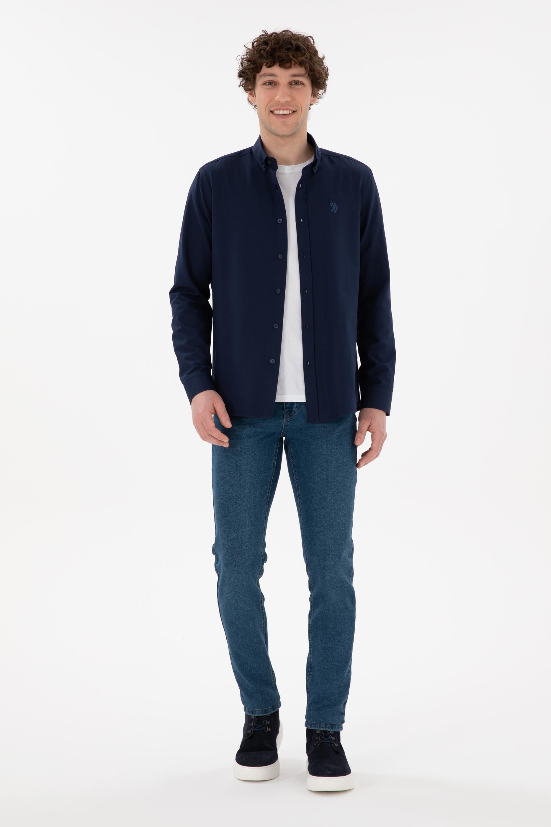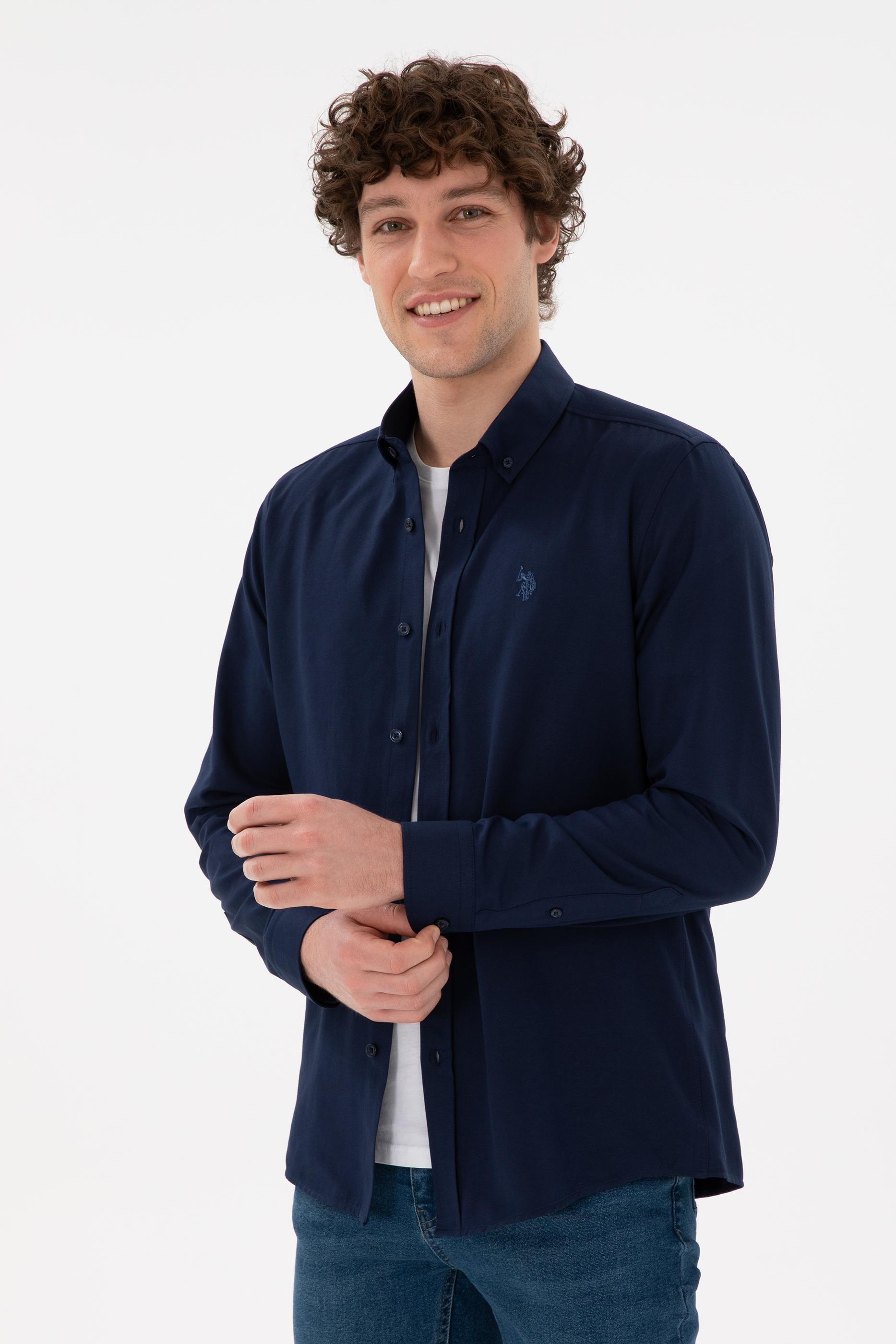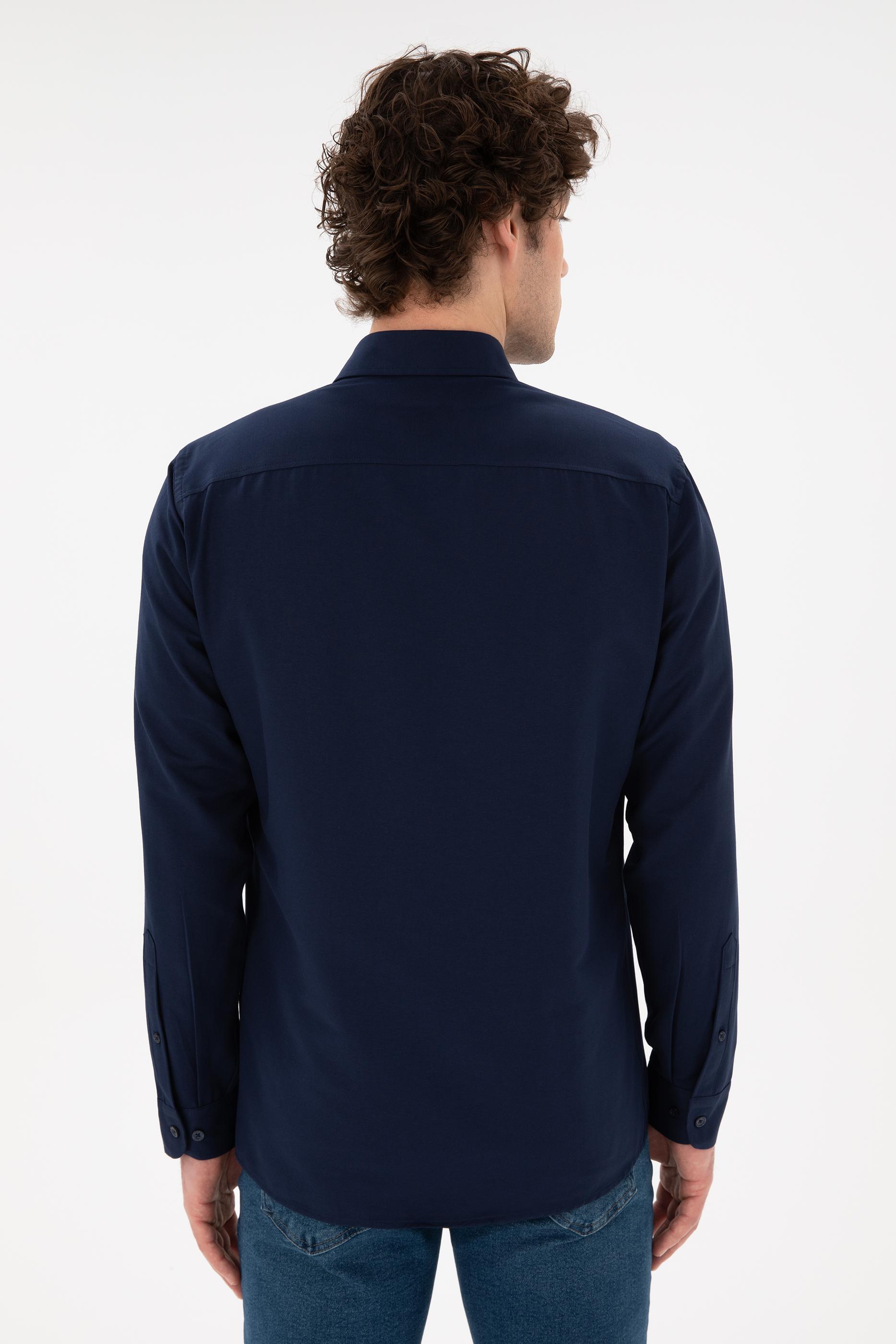 Erkek Lacivert Uzun Kollu Basic Gömlek