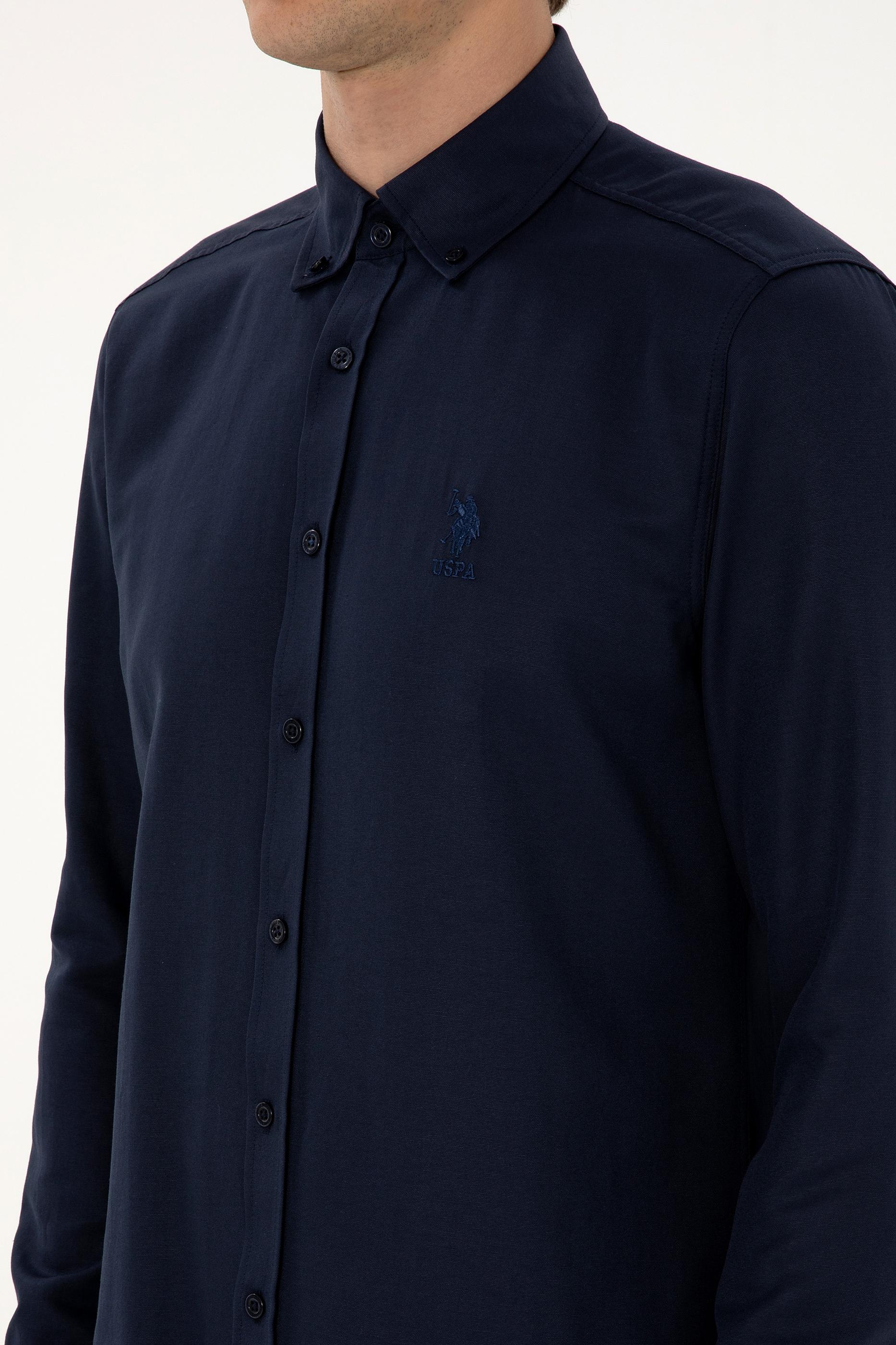 Erkek Lacivert Uzun Kollu Basic Gömlek