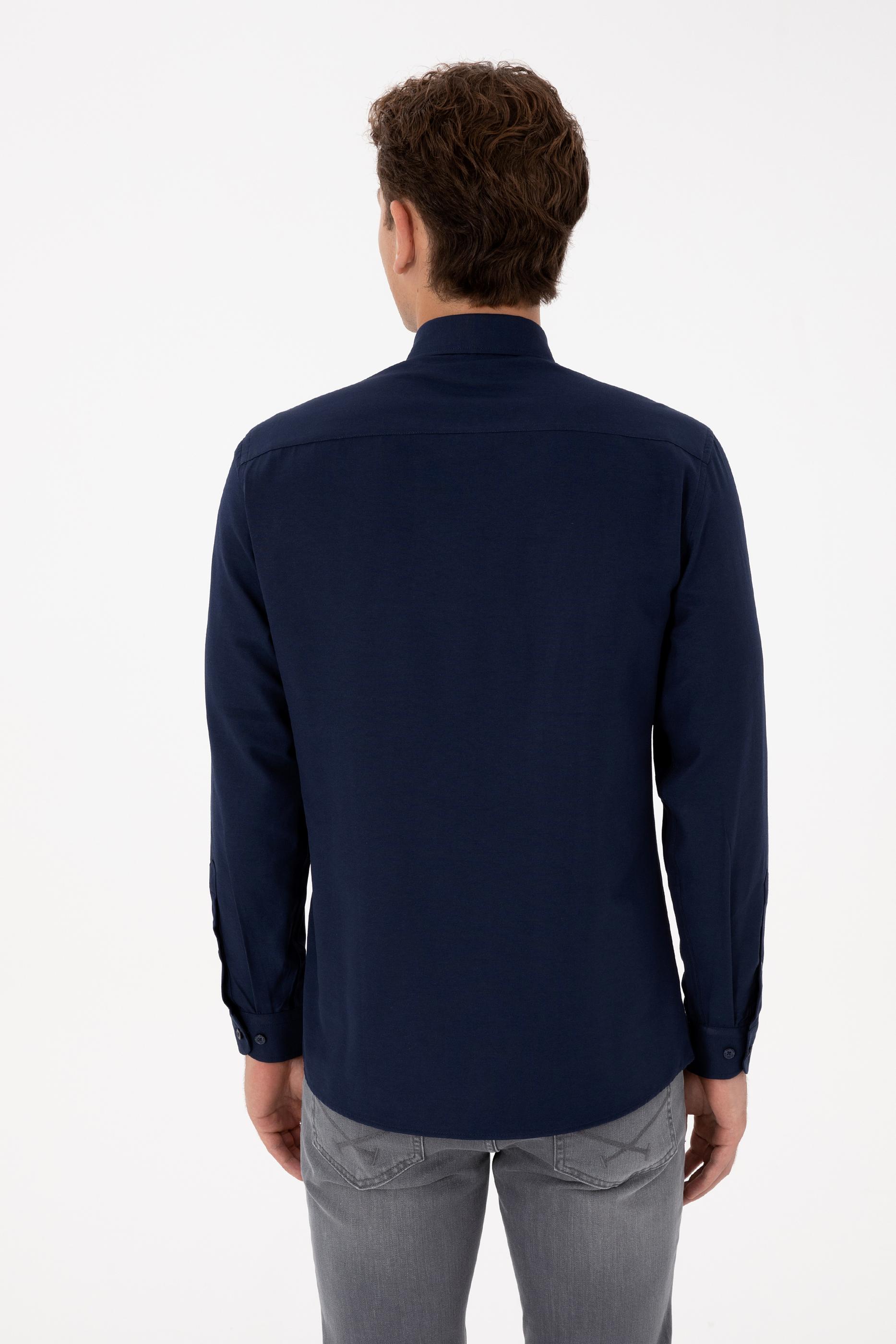Erkek Lacivert Uzun Kollu Basic Gömlek