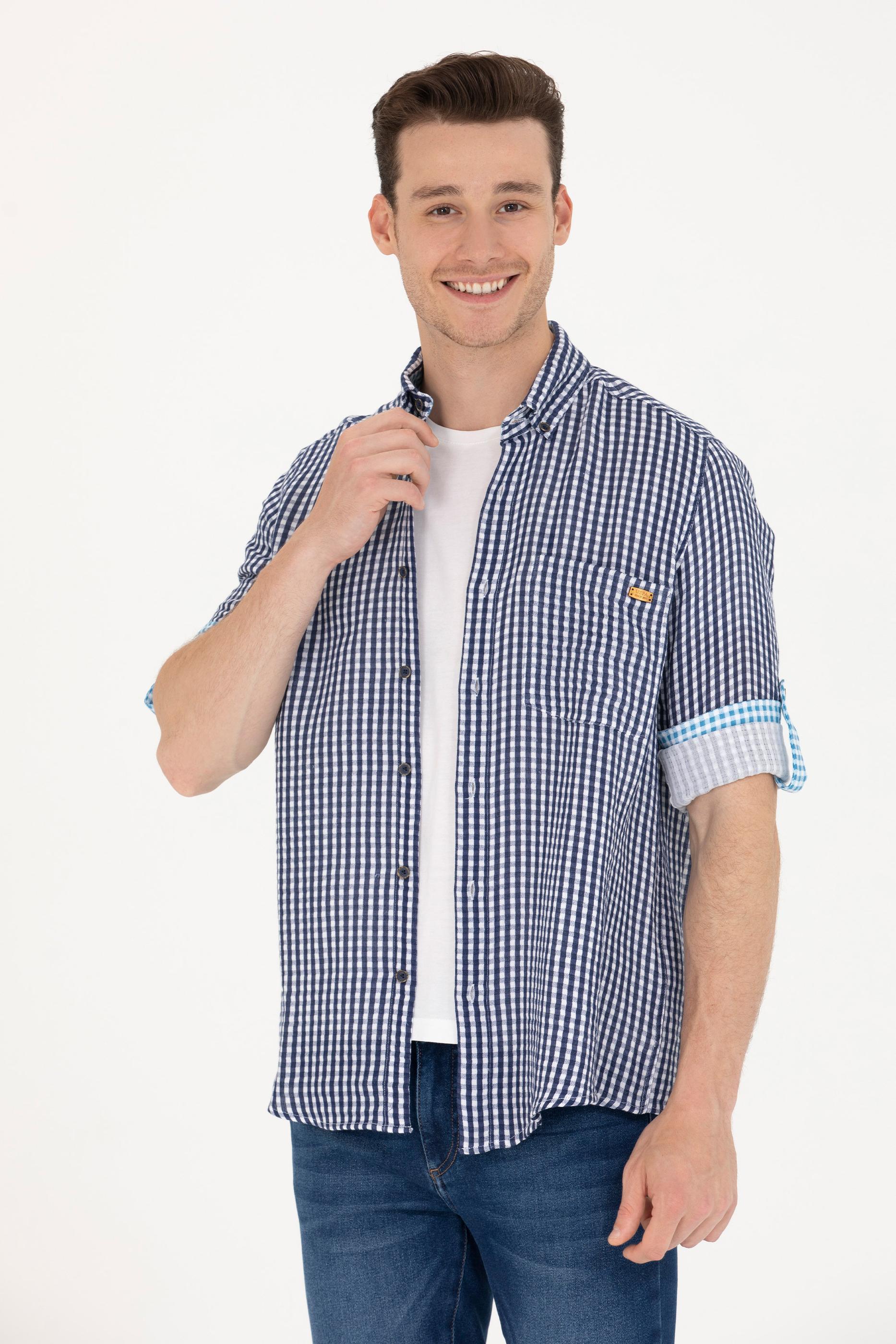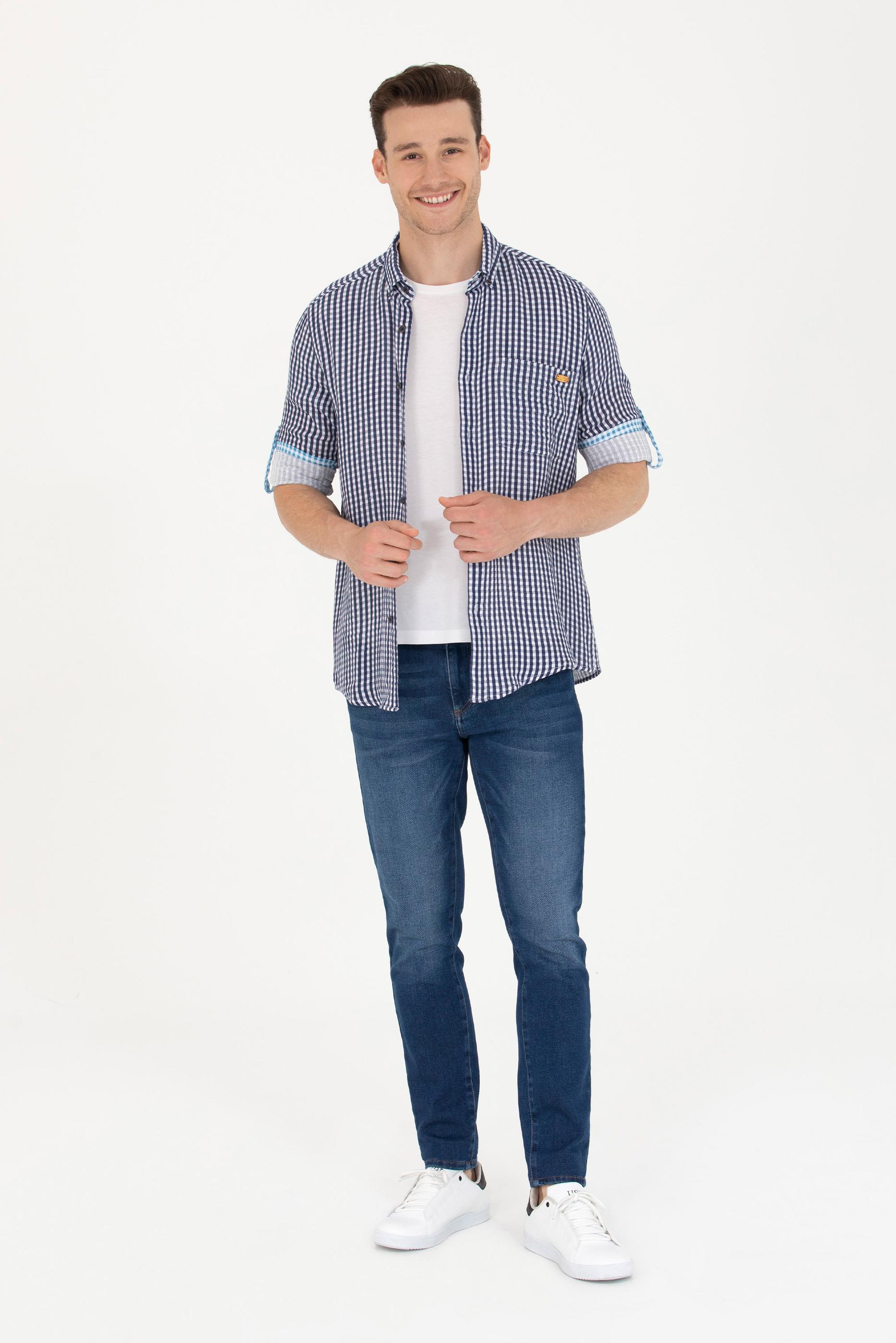 - Erkek Kareli Lacivert Gömlek