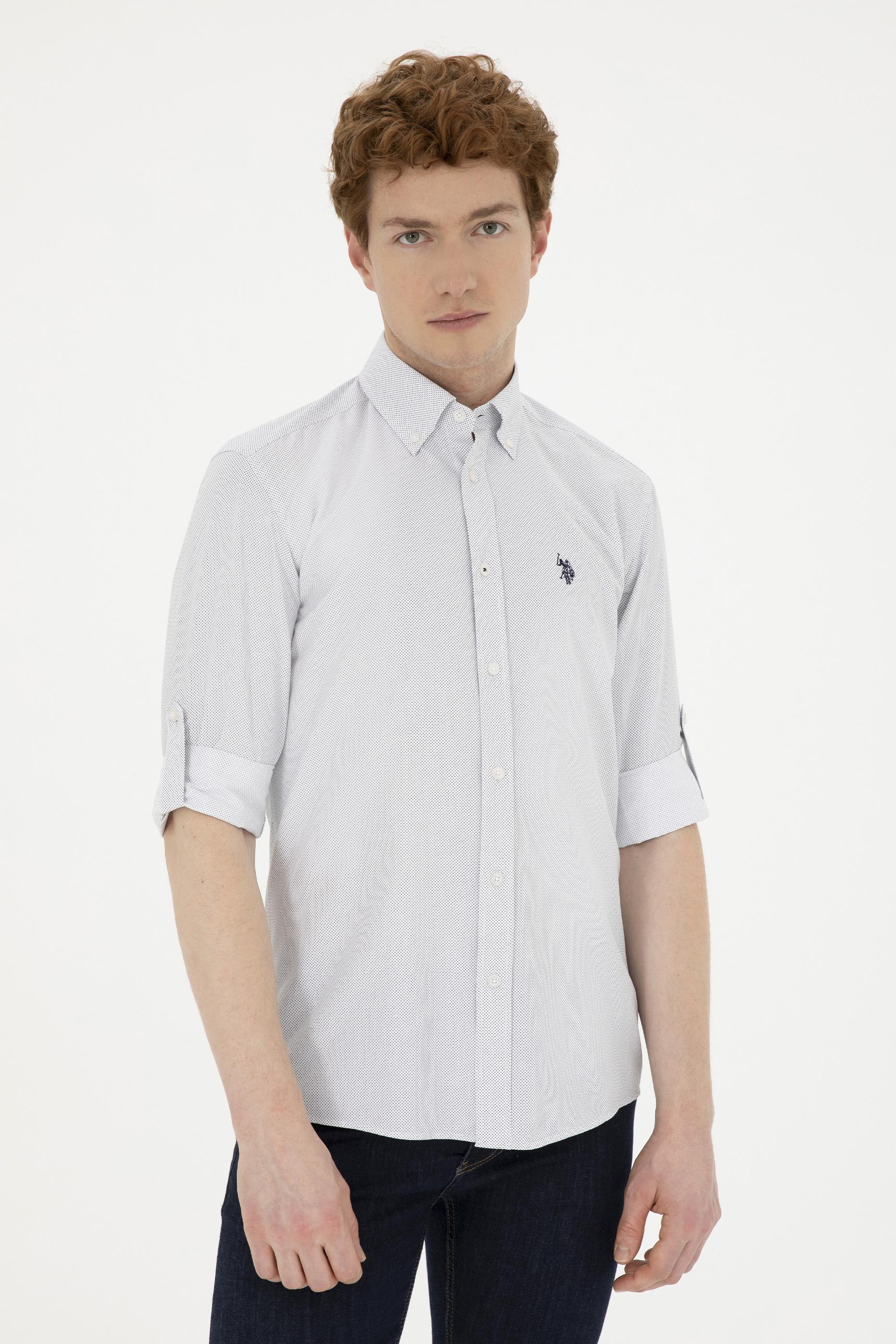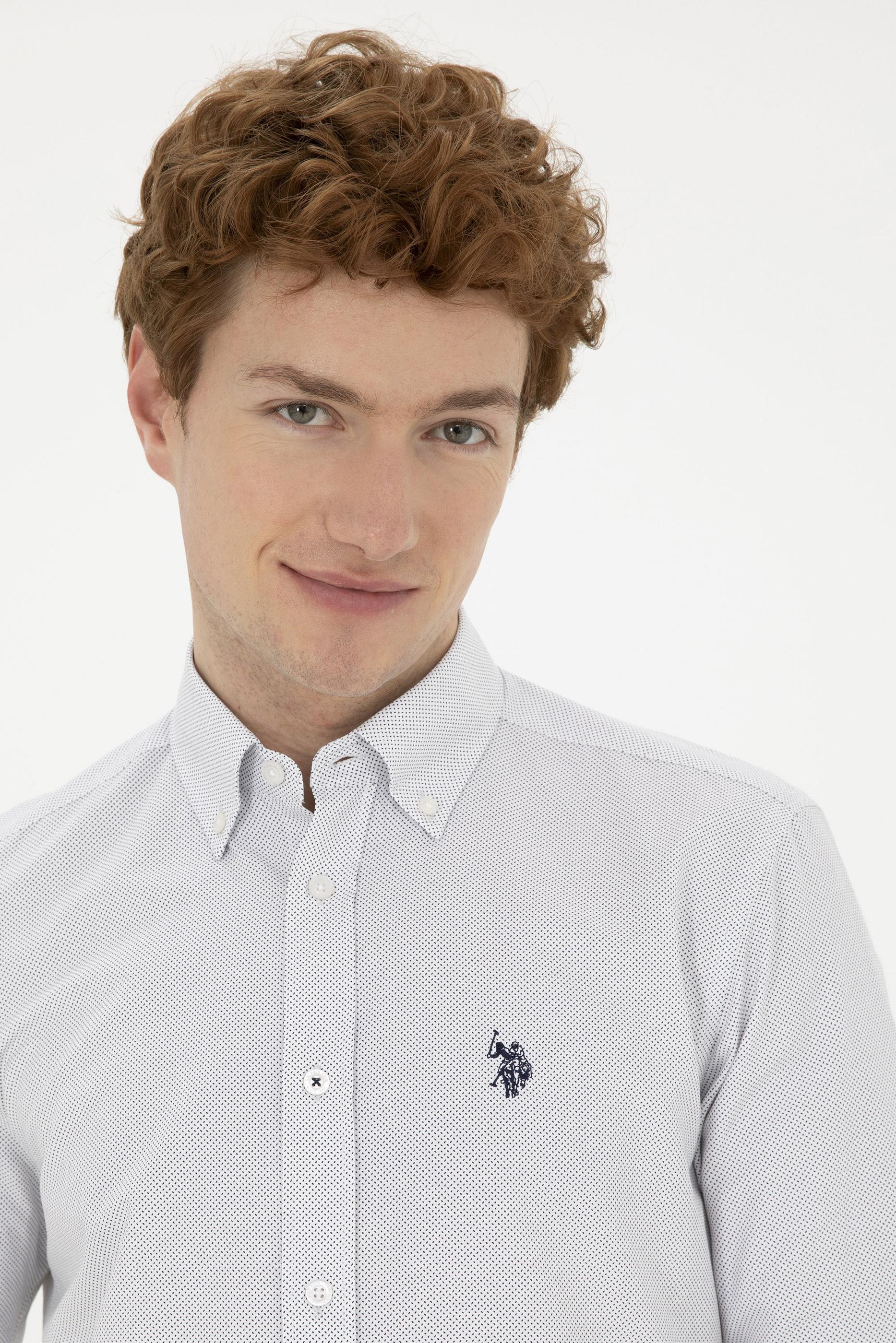 - Erkek Lacivert Desenli Beyaz Gömlek
