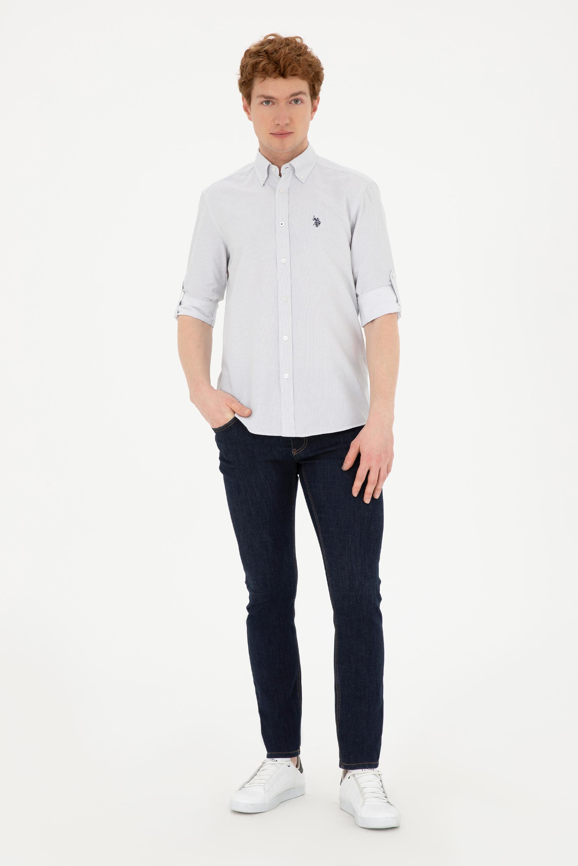 Erkek Lacivert Desenli Beyaz Gömlek