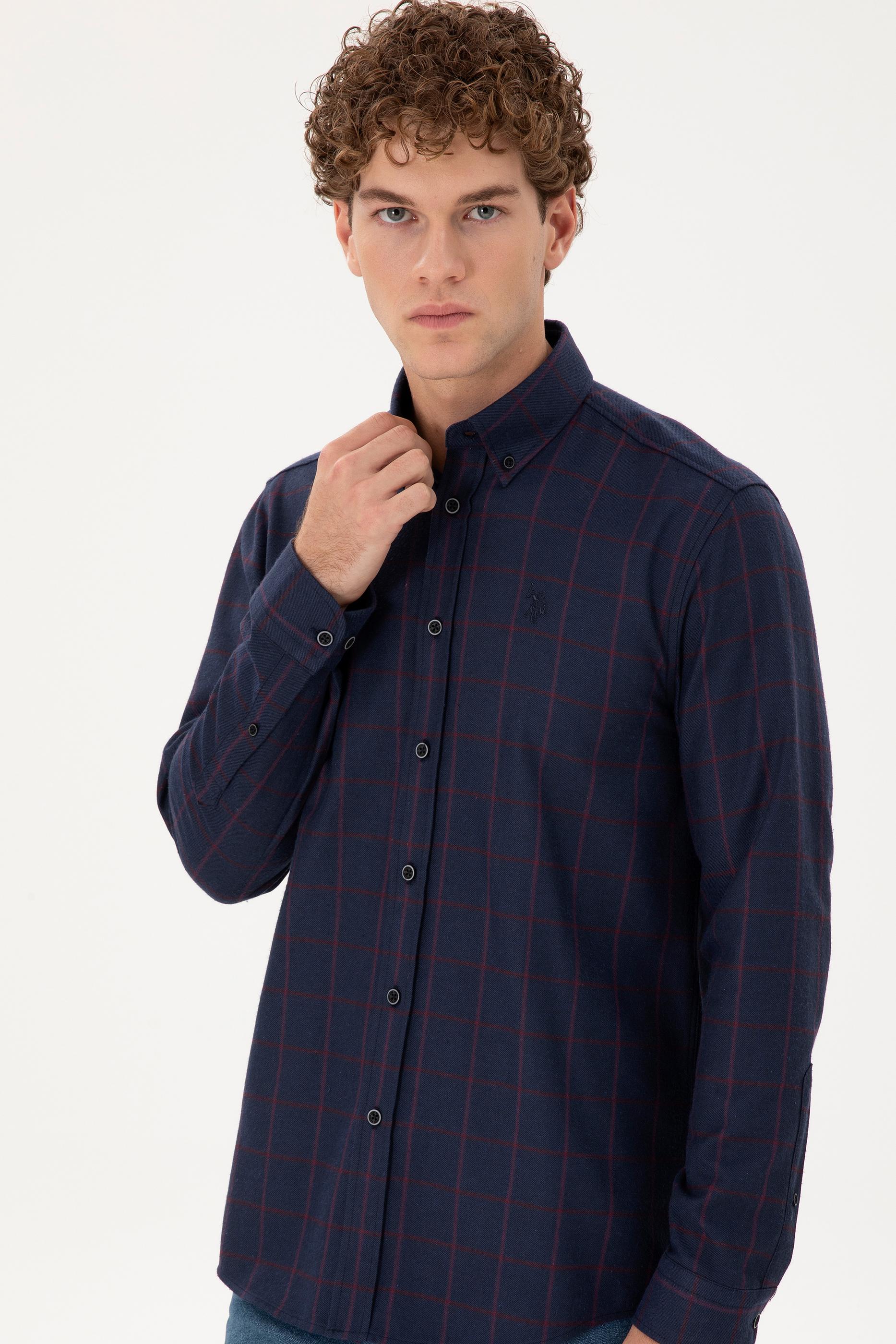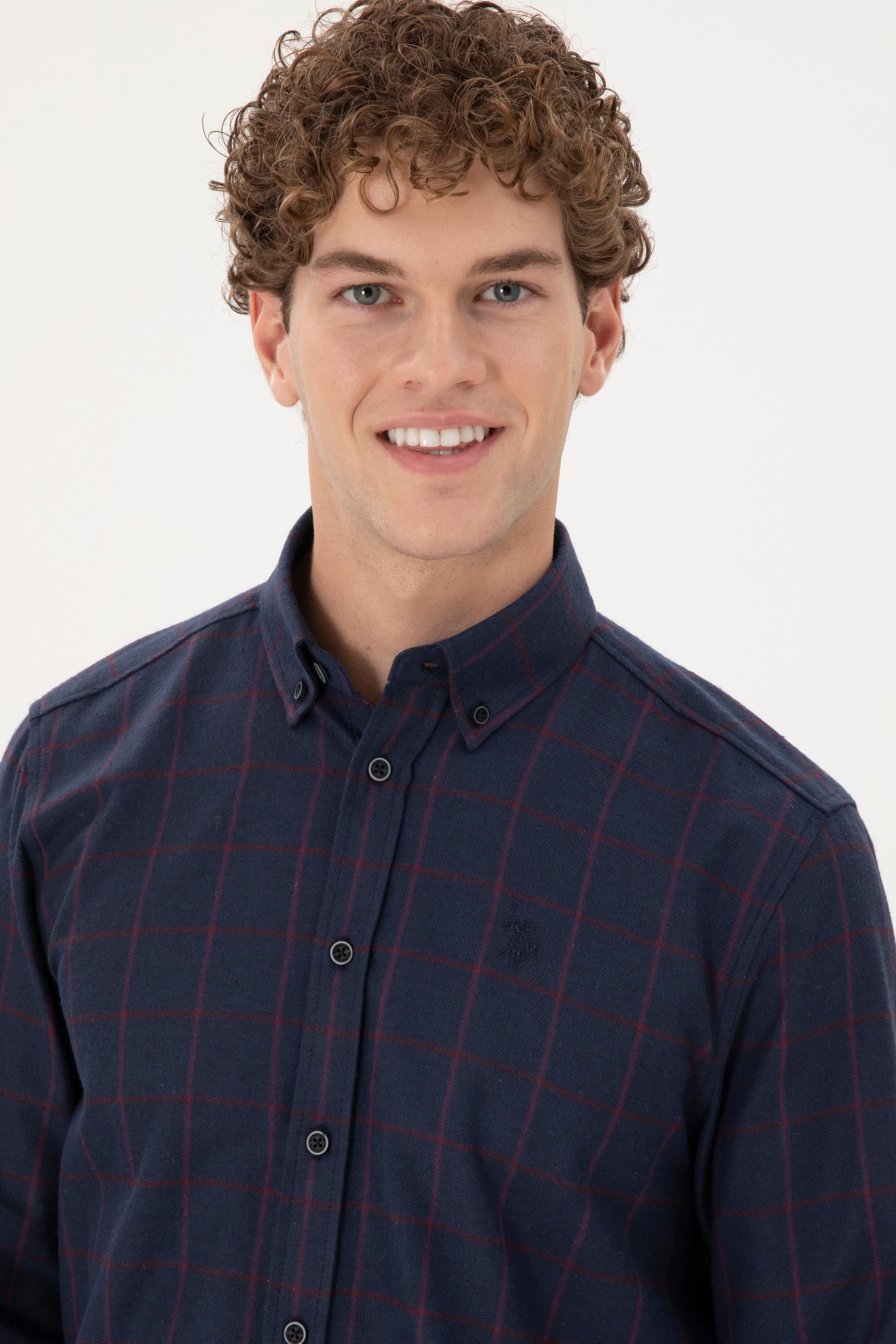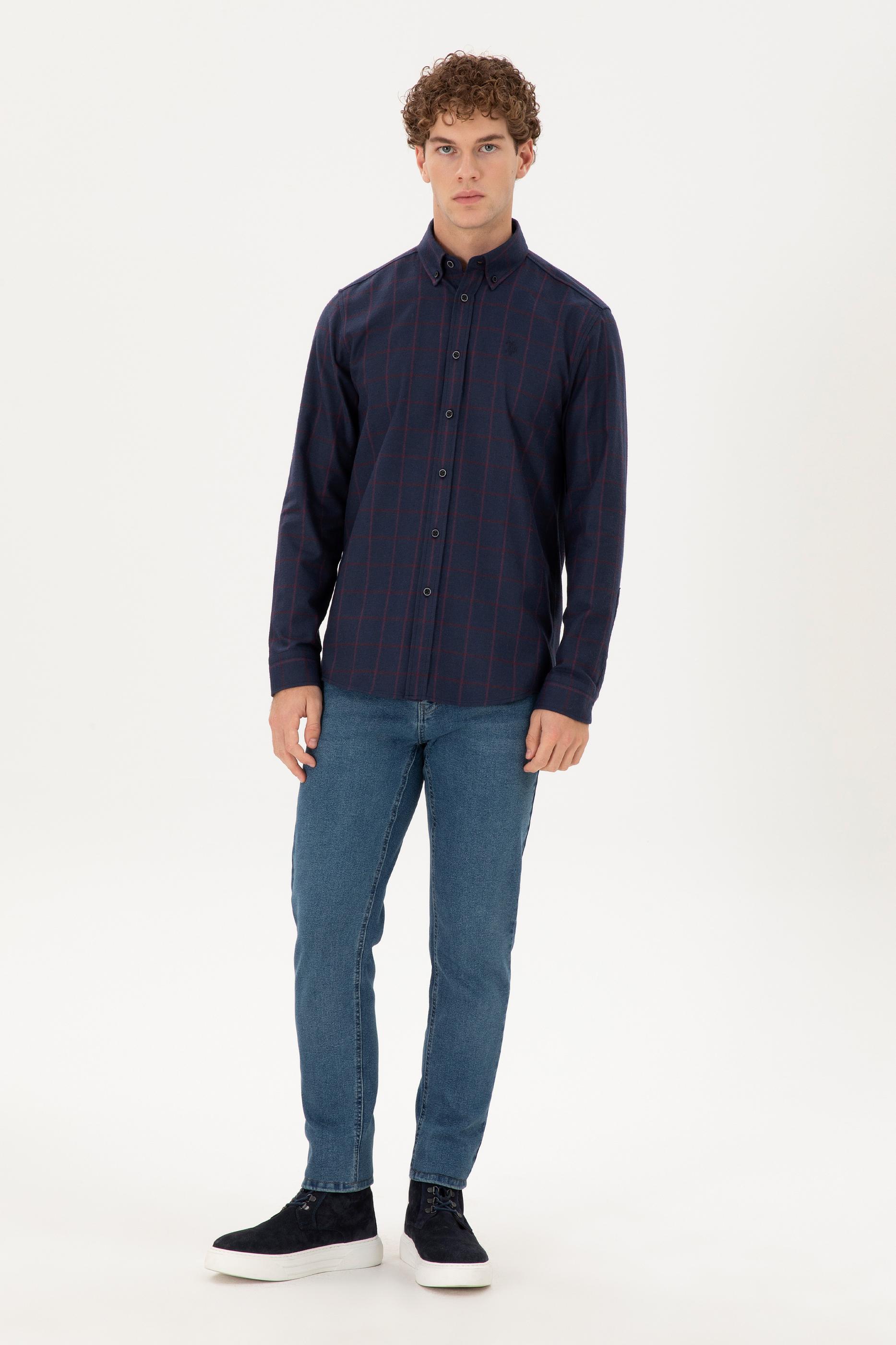 Uzun kollu erkek gömlek, lacivert rengi ve kareli deseniyle her zaman şıklık sunar. Regular fit kesimi sayesinde rahat bir giyim sağlar ve tüm vücut tiplerine uygun bir duruş sergiler. Cepsiz ve düğmeli yaka tasarımı, klasik ve modern stilin uyumlu bir birleşimini ortaya koyar. Gömleğin kareli deseni, sade tasarımına hareket katarken iş hayatından günlük giyime kadar geniş bir kullanım alanı sunar. Kareli dokusu, klasik bir hava taşırken, düğmeli yaka detayı ile sportif ve şık bir görünüm kazandırır. Lacivert rengin kolayca kombinlenebilir olması, gömleği farklı pantolon ve aksesuarlarla rahatça kullanabilme imkanı sunar.