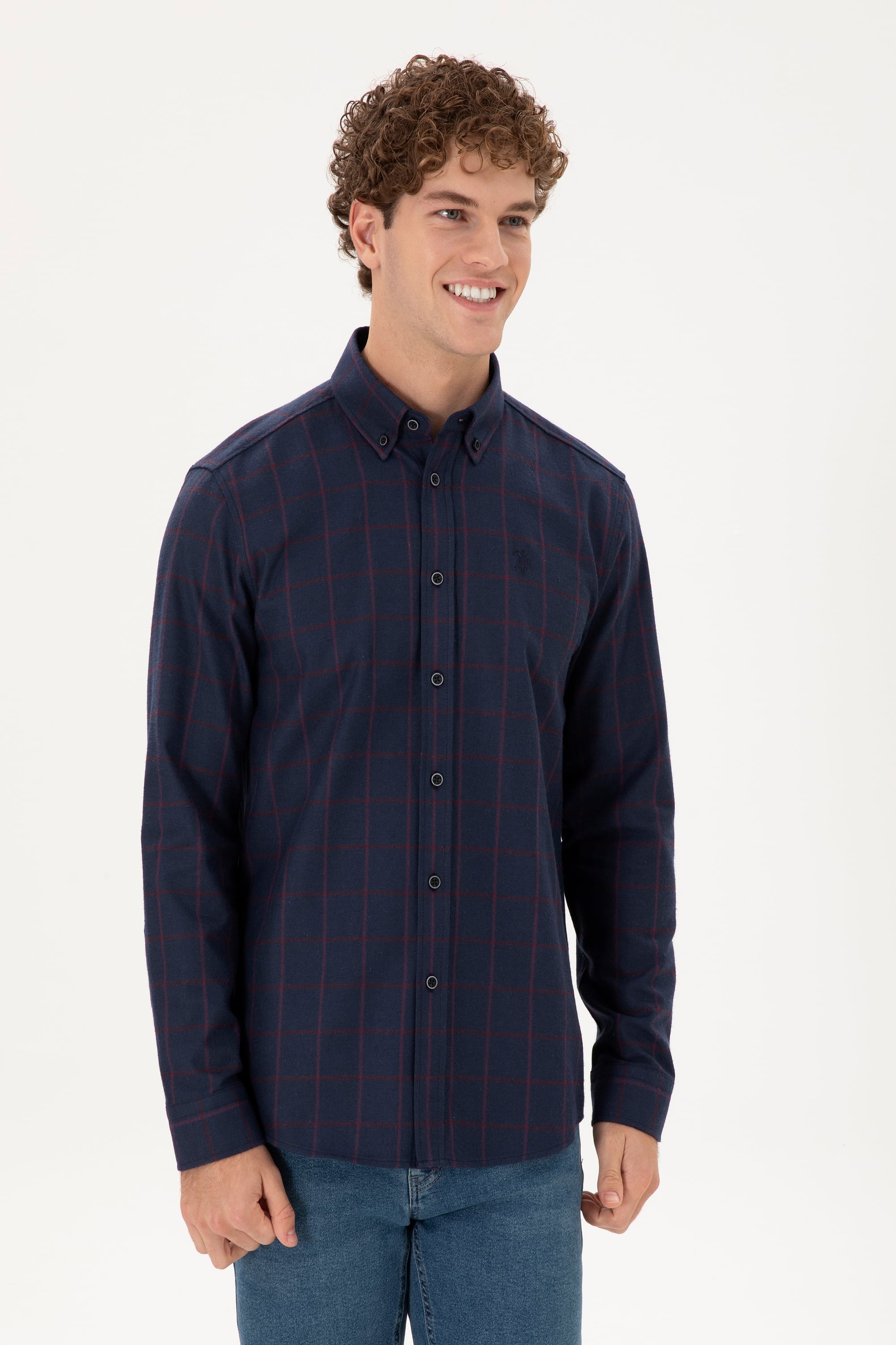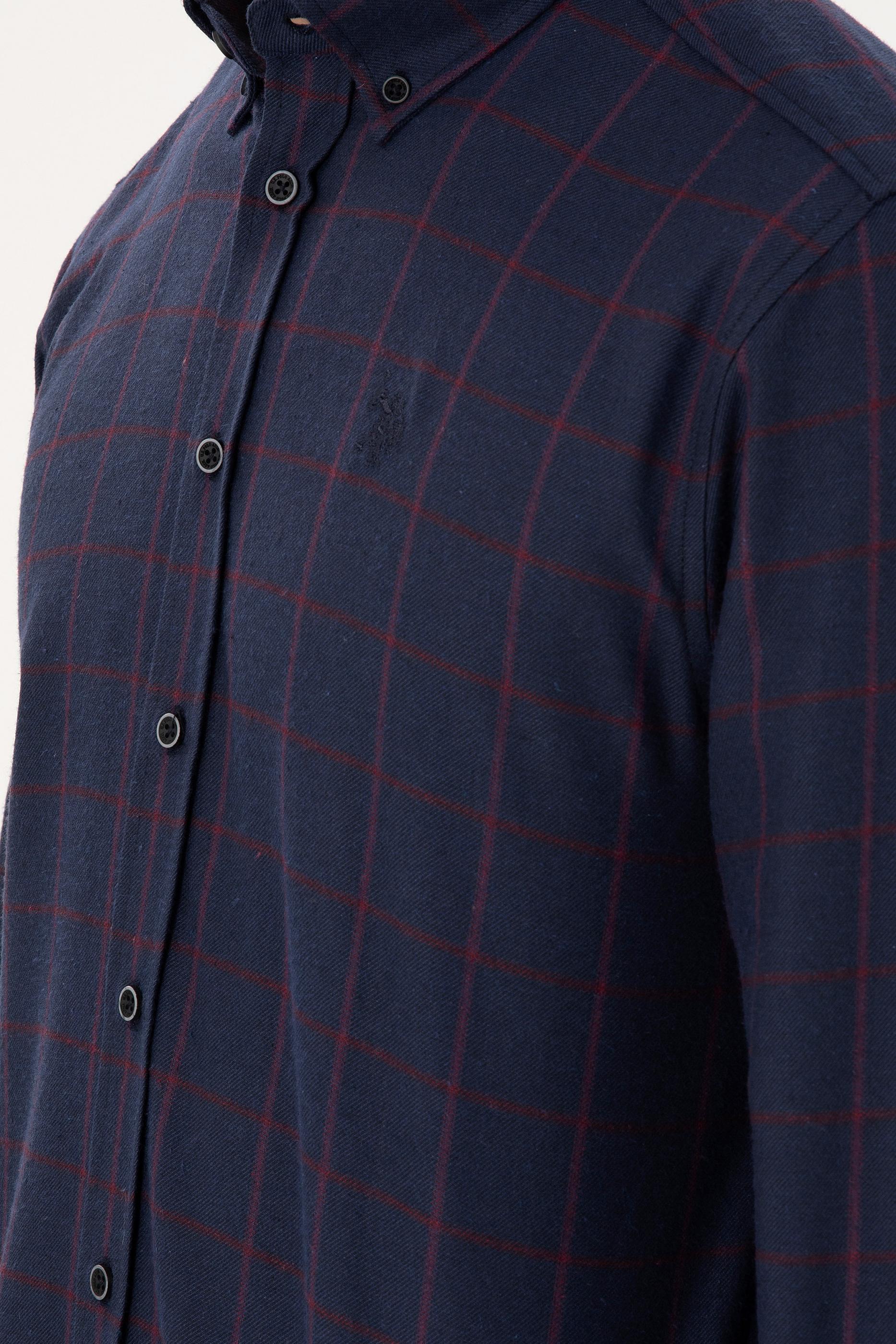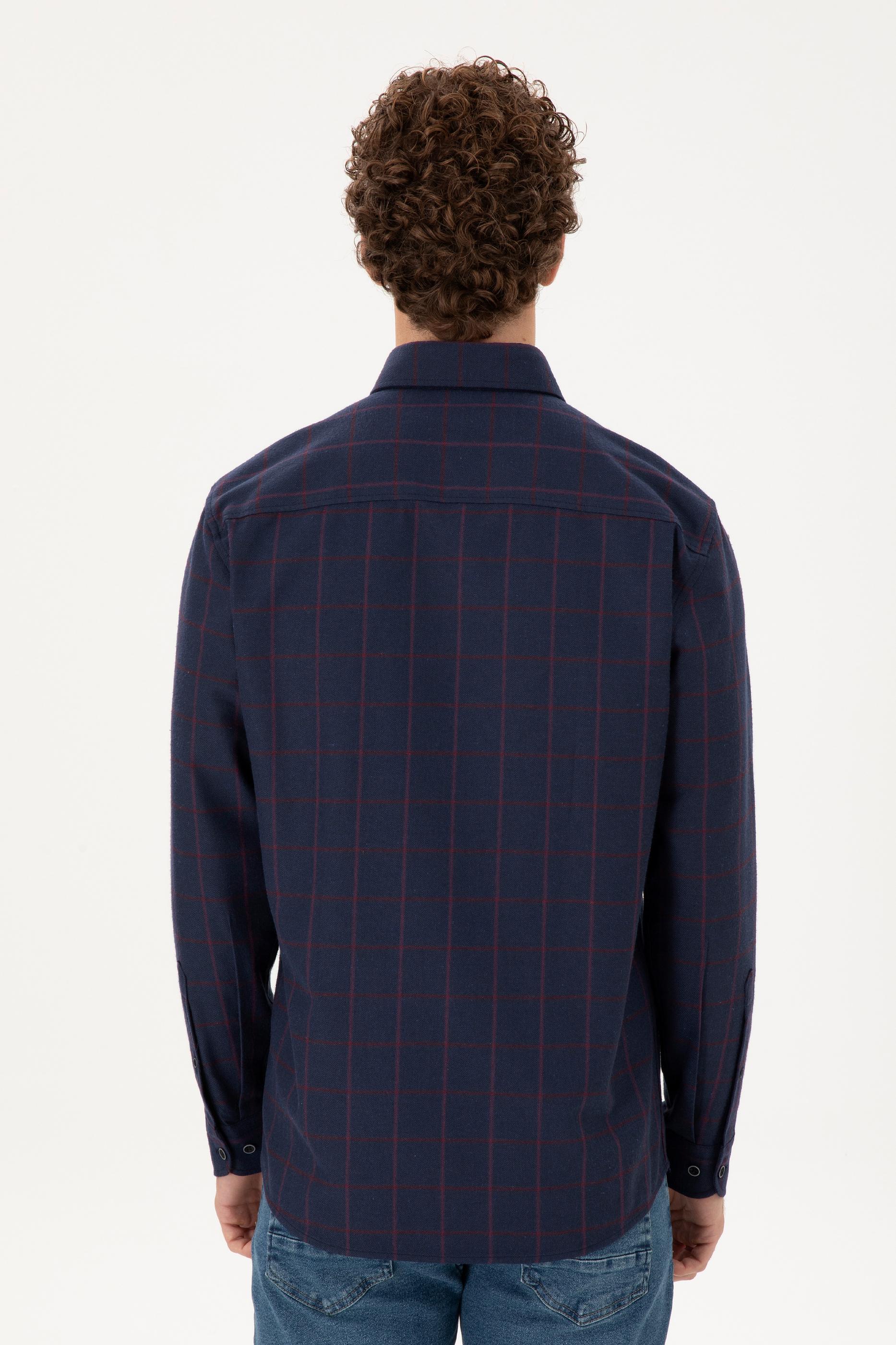 Uzun kollu erkek gömlek, lacivert rengi ve kareli deseniyle her zaman şıklık sunar. Regular fit kesimi sayesinde rahat bir giyim sağlar ve tüm vücut tiplerine uygun bir duruş sergiler. Cepsiz ve düğmeli yaka tasarımı, klasik ve modern stilin uyumlu bir birleşimini ortaya koyar. Gömleğin kareli deseni, sade tasarımına hareket katarken iş hayatından günlük giyime kadar geniş bir kullanım alanı sunar. Kareli dokusu, klasik bir hava taşırken, düğmeli yaka detayı ile sportif ve şık bir görünüm kazandırır. Lacivert rengin kolayca kombinlenebilir olması, gömleği farklı pantolon ve aksesuarlarla rahatça kullanabilme imkanı sunar.