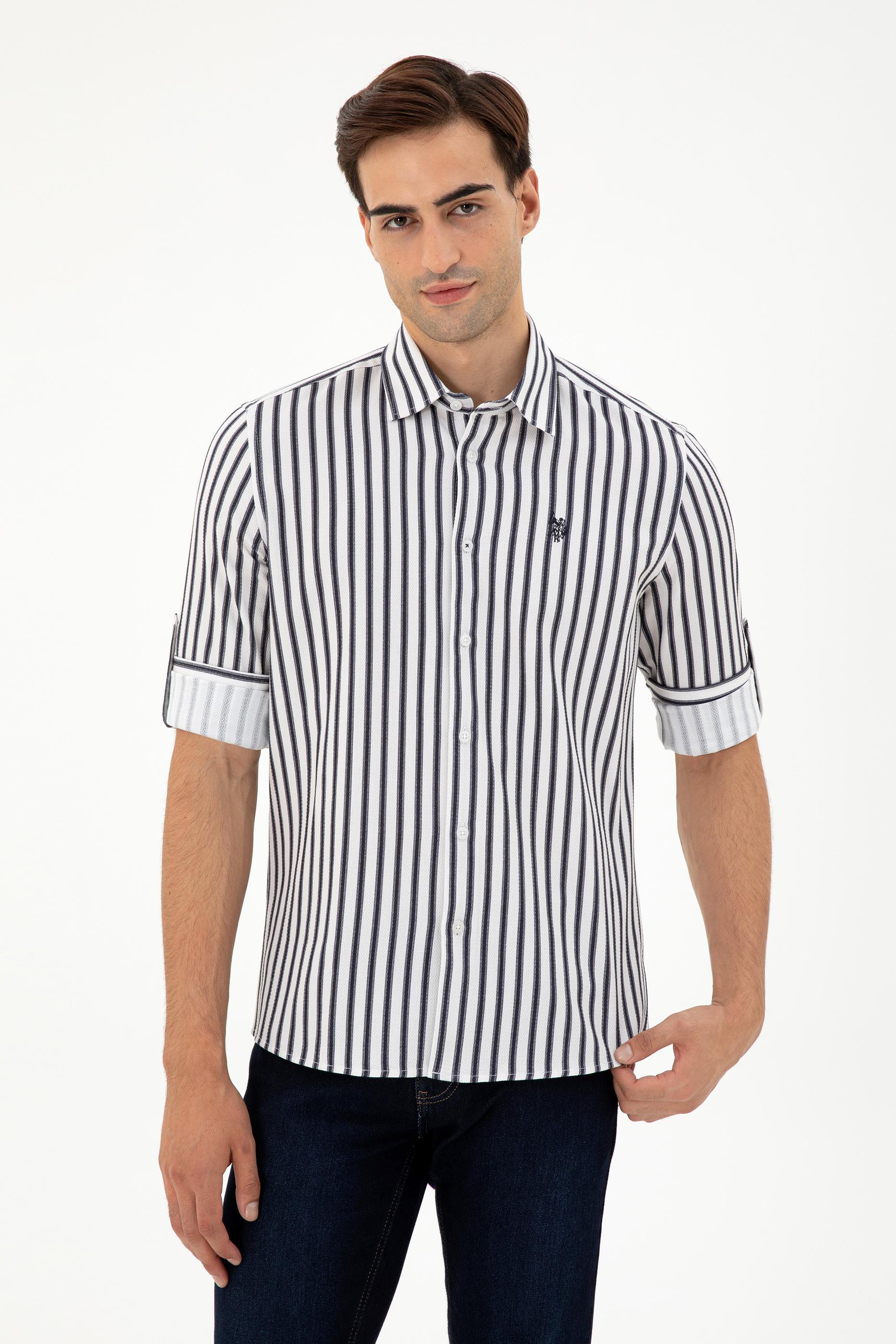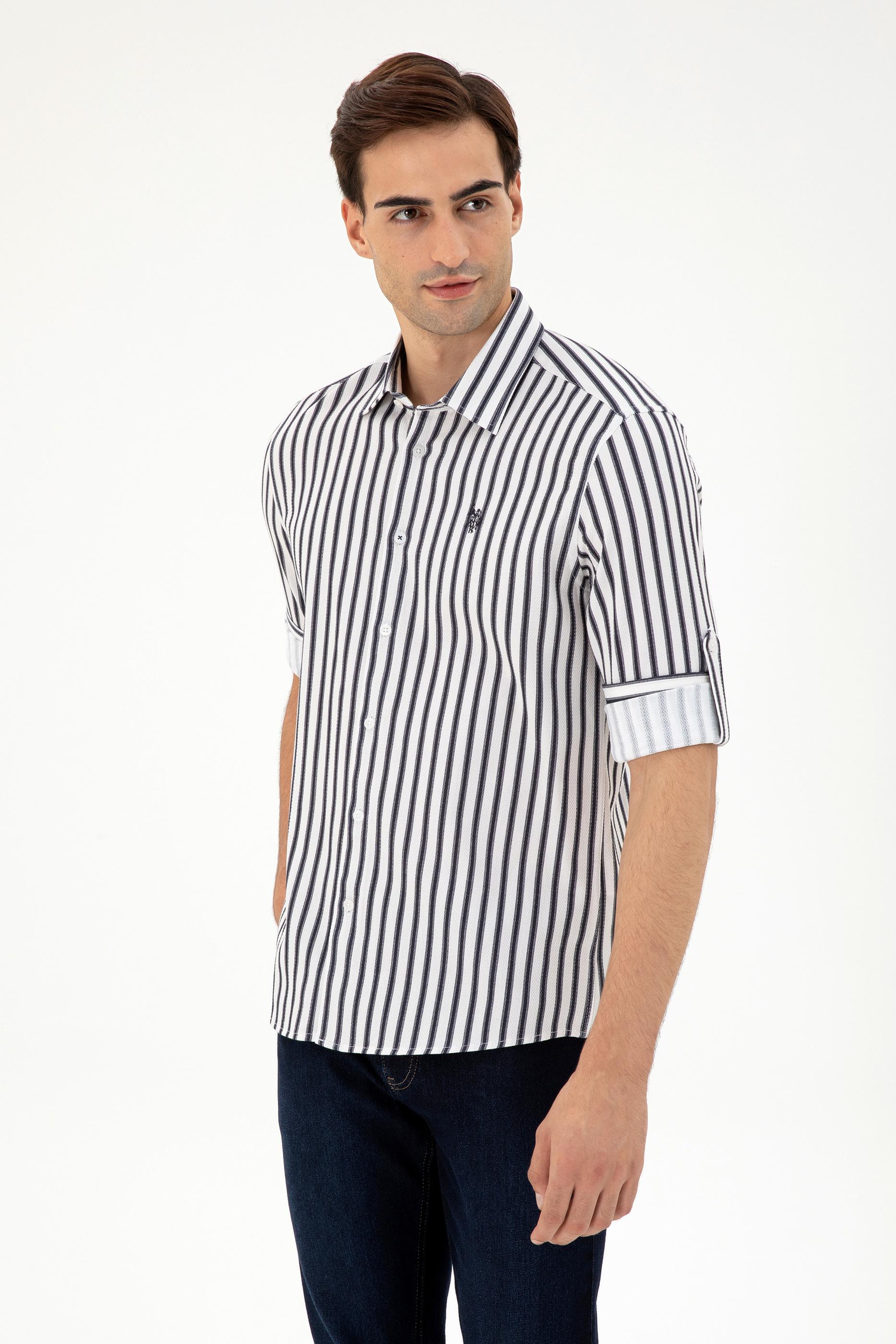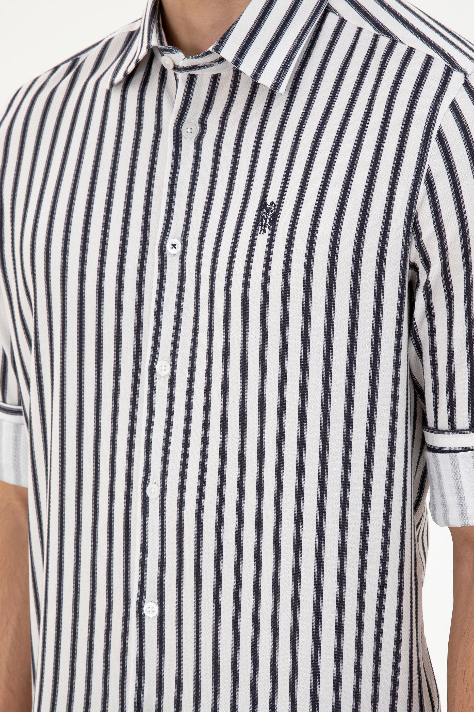- Erkek Lacivert Çizgili Beyaz Gömlek