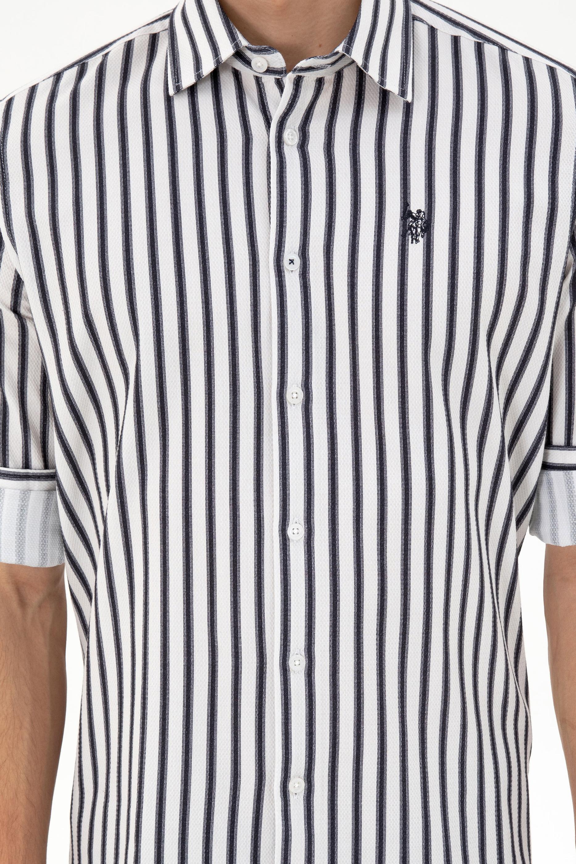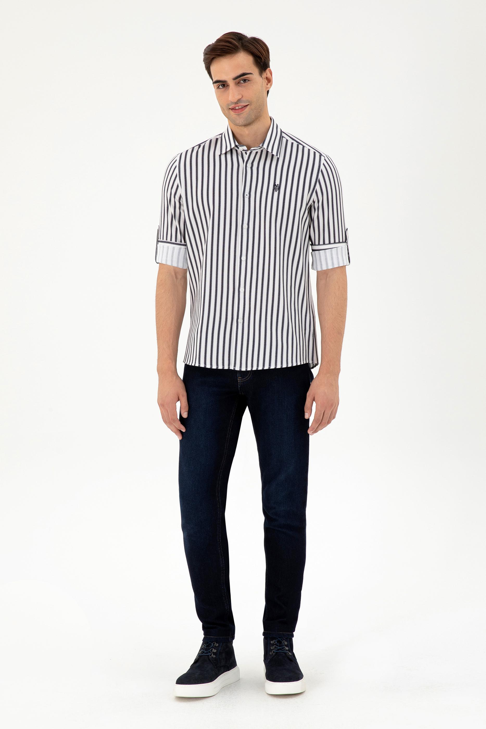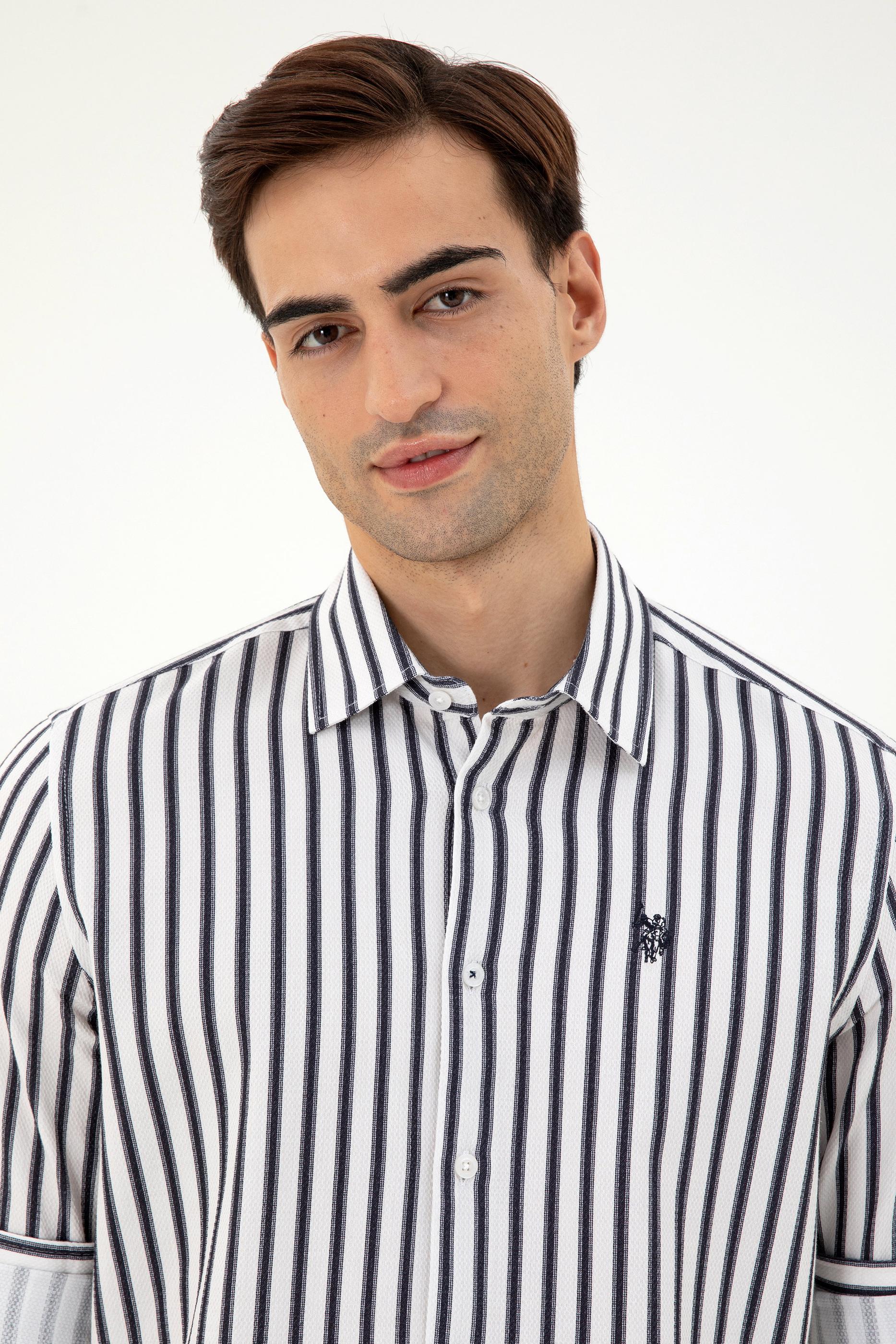 - Erkek Lacivert Çizgili Beyaz Gömlek
