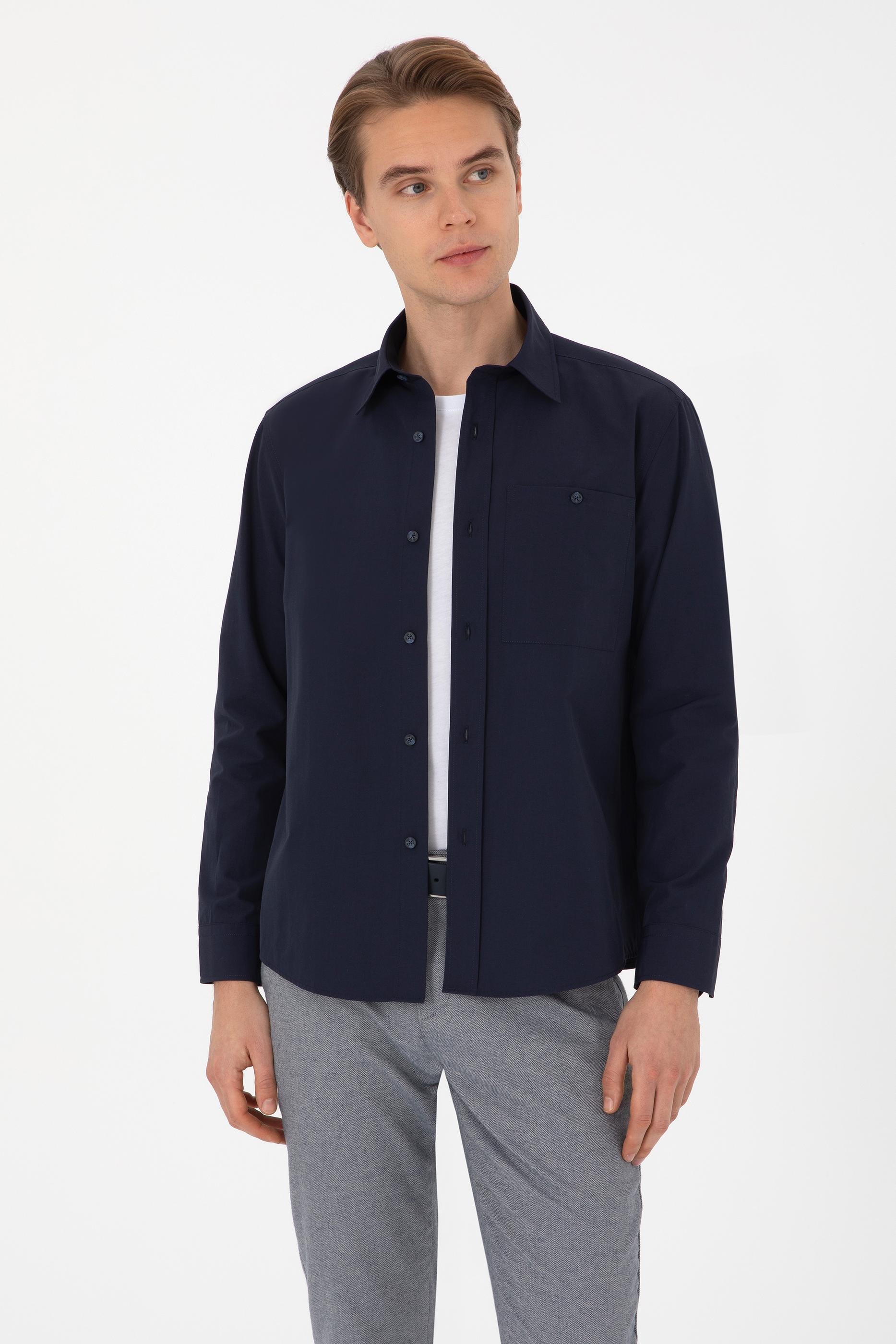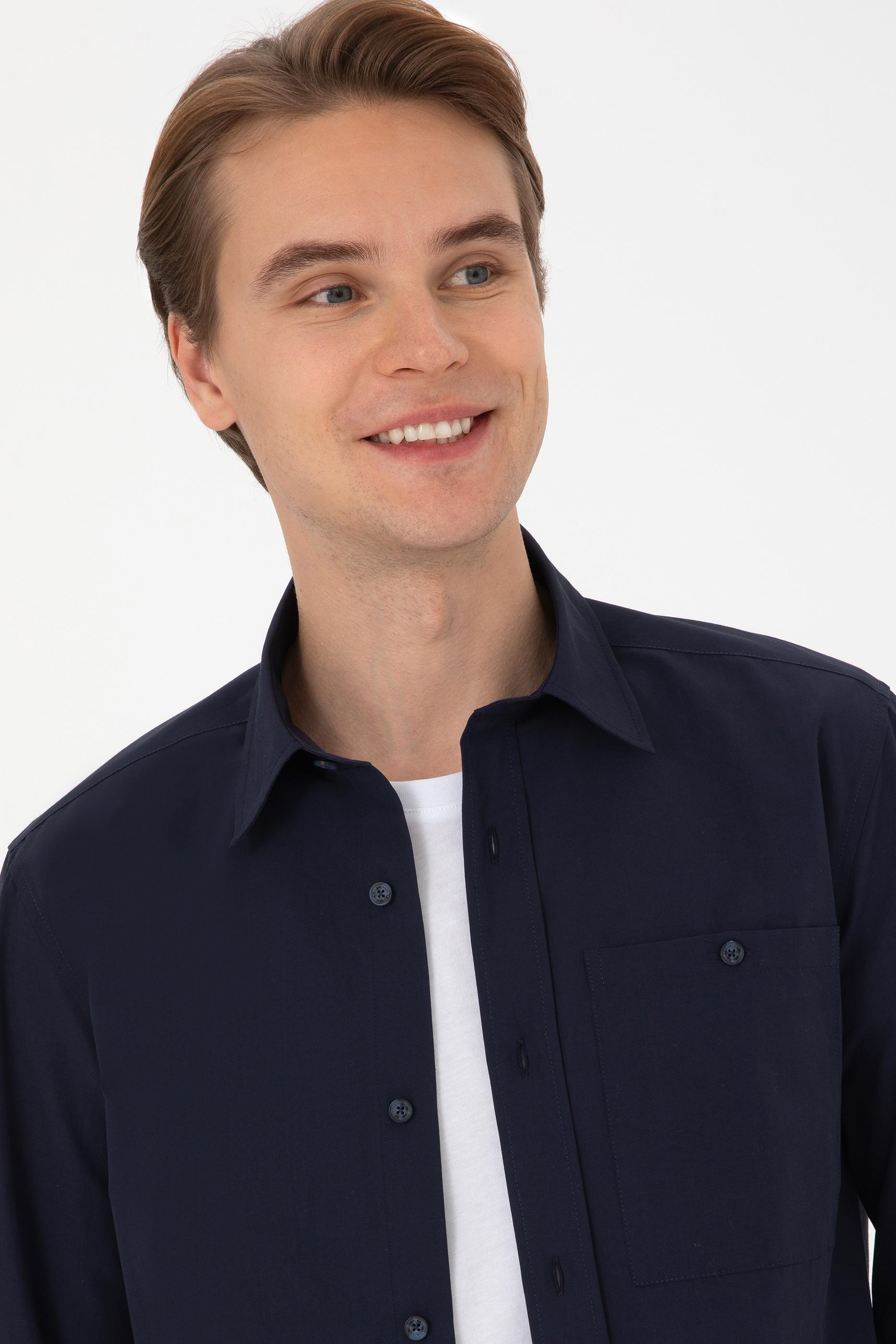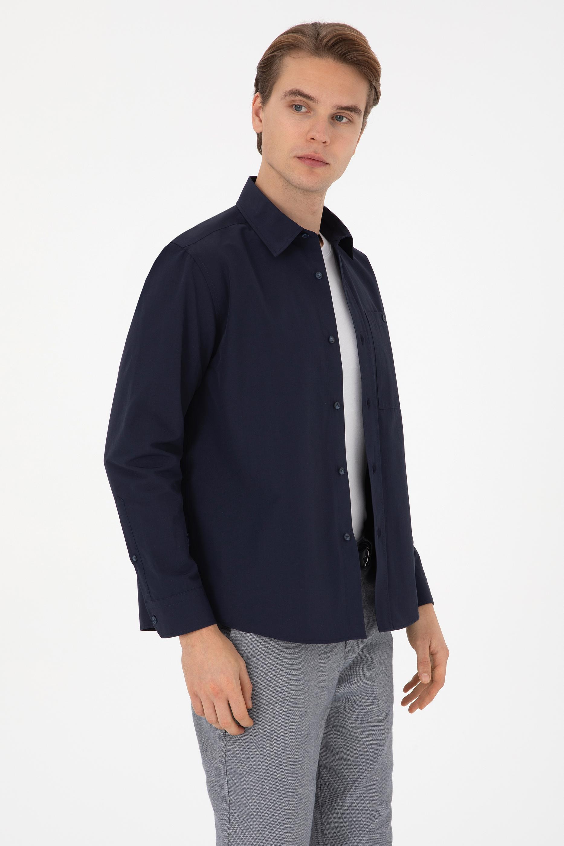 Erkek Lacivert Uzun Kollu Gömlek