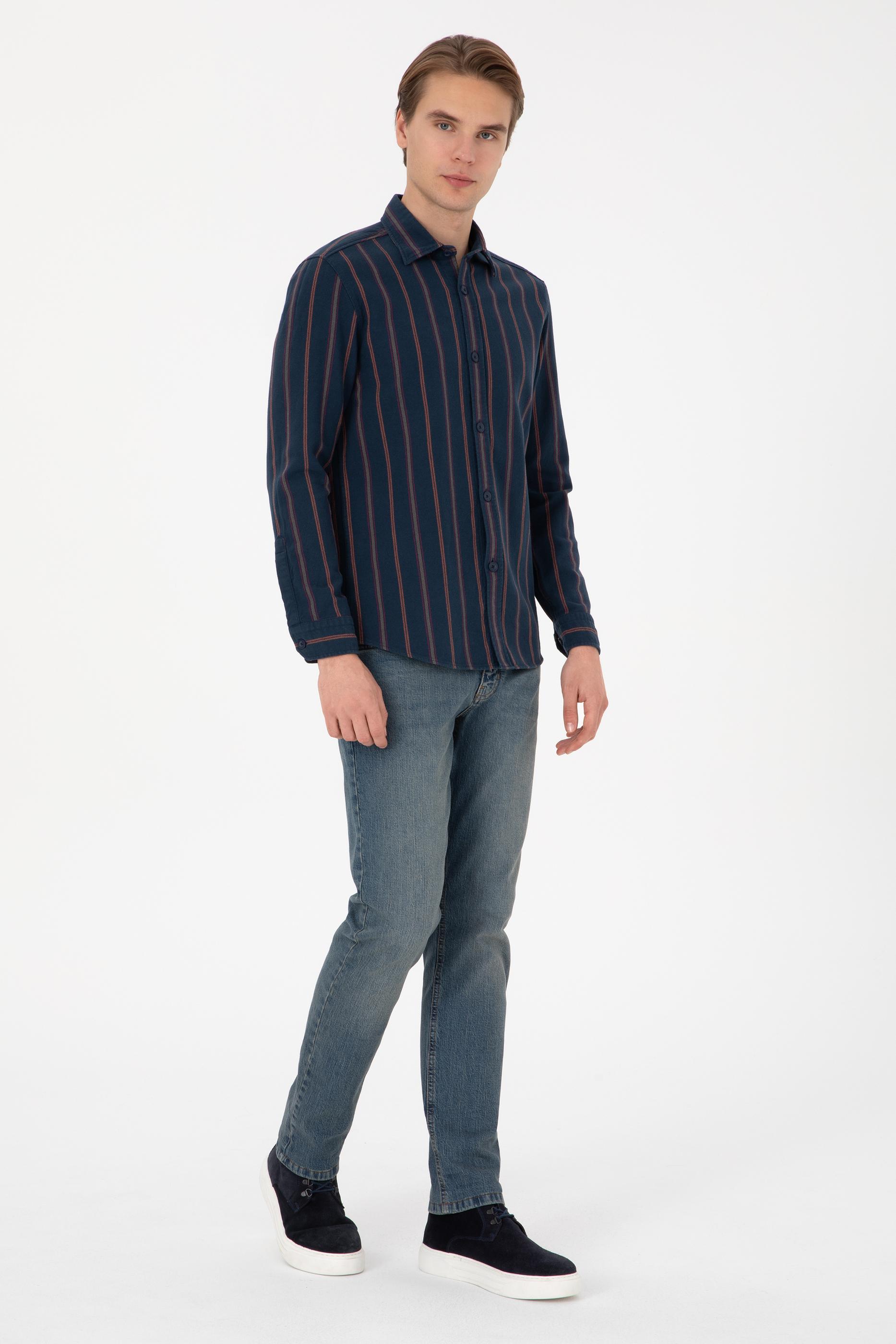 Erkek Lacivert Uzun Kollu Gömlek