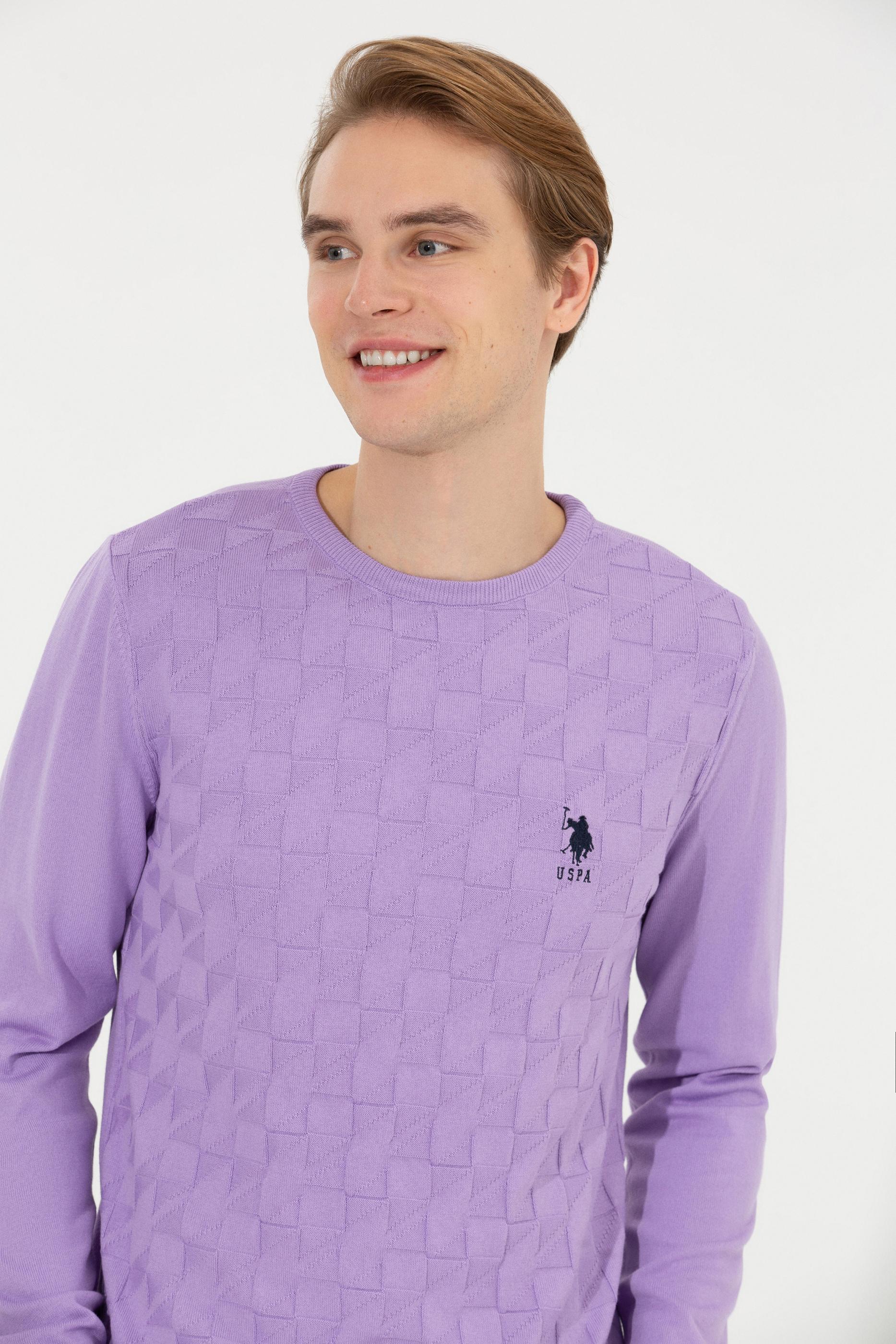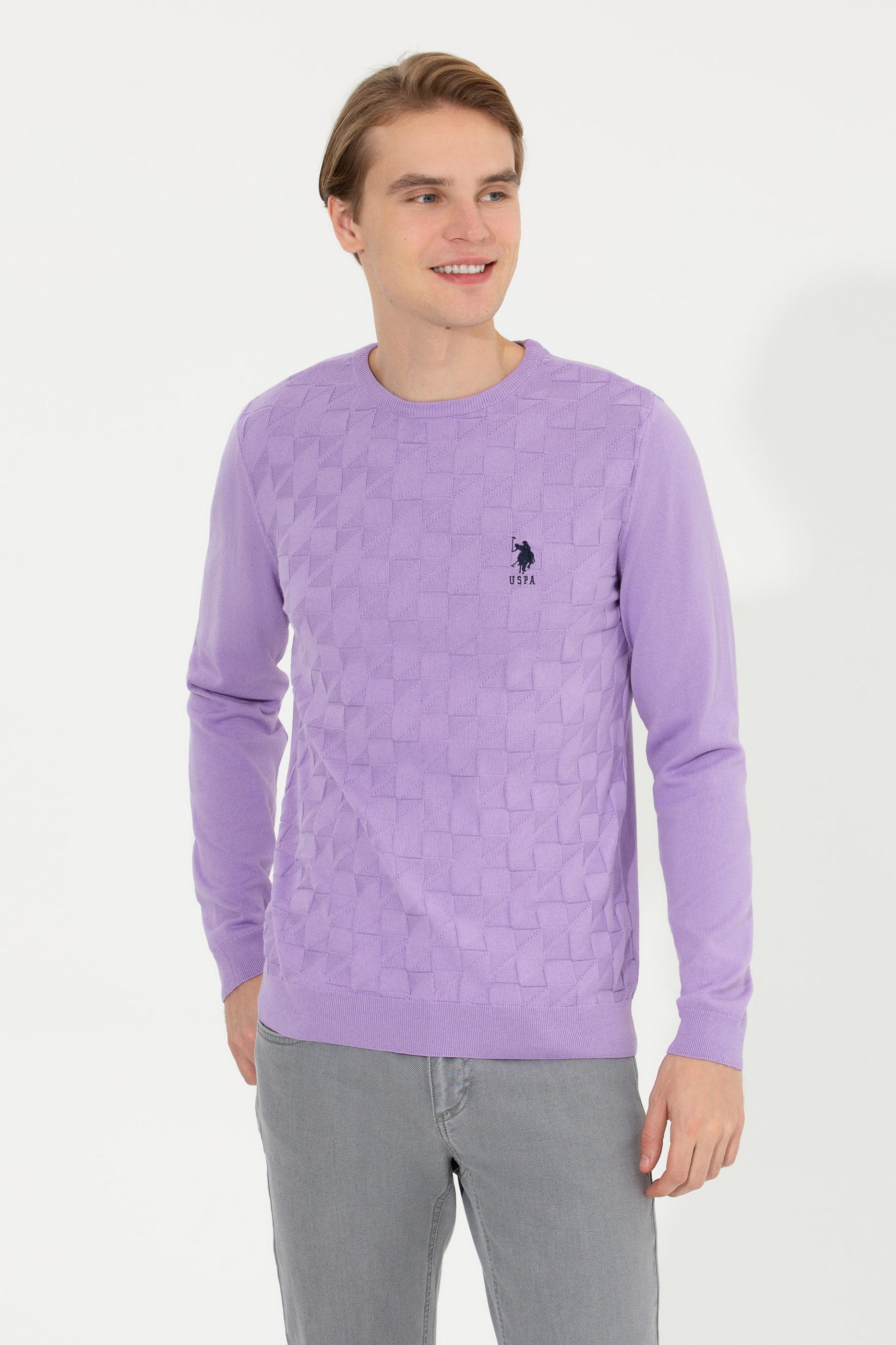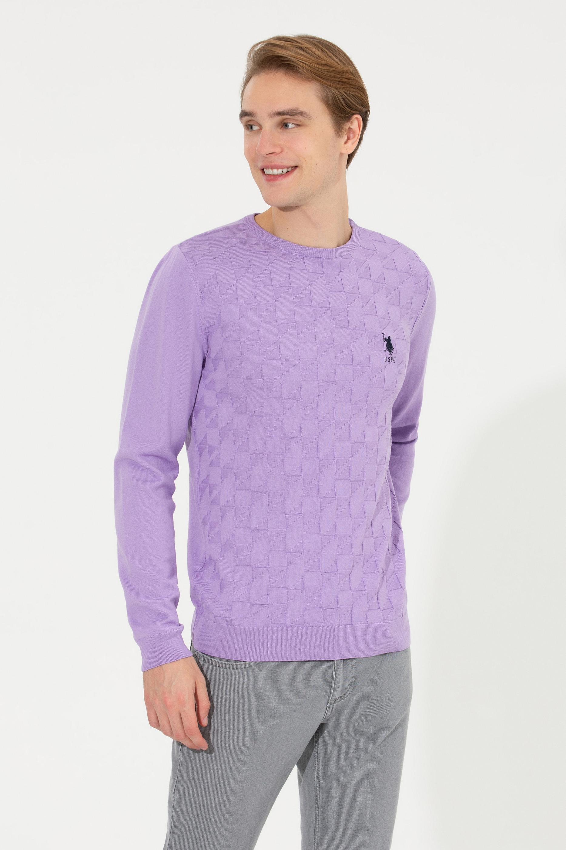 Erkek Lila Bisiklet Yaka Basic Triko Kazak
