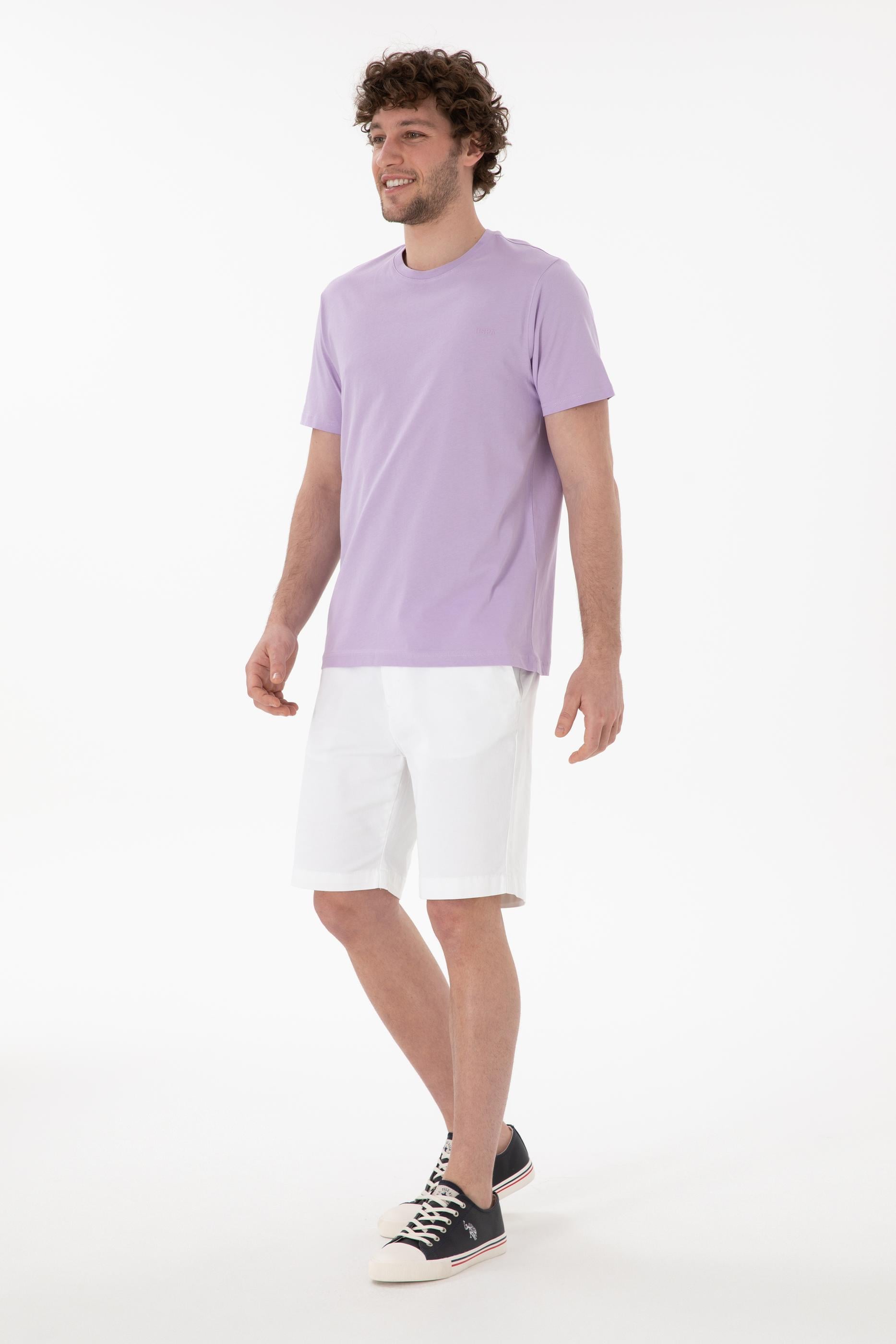 - Erkek Regular Fit Bisiklet Yaka Lila Basic Tişört