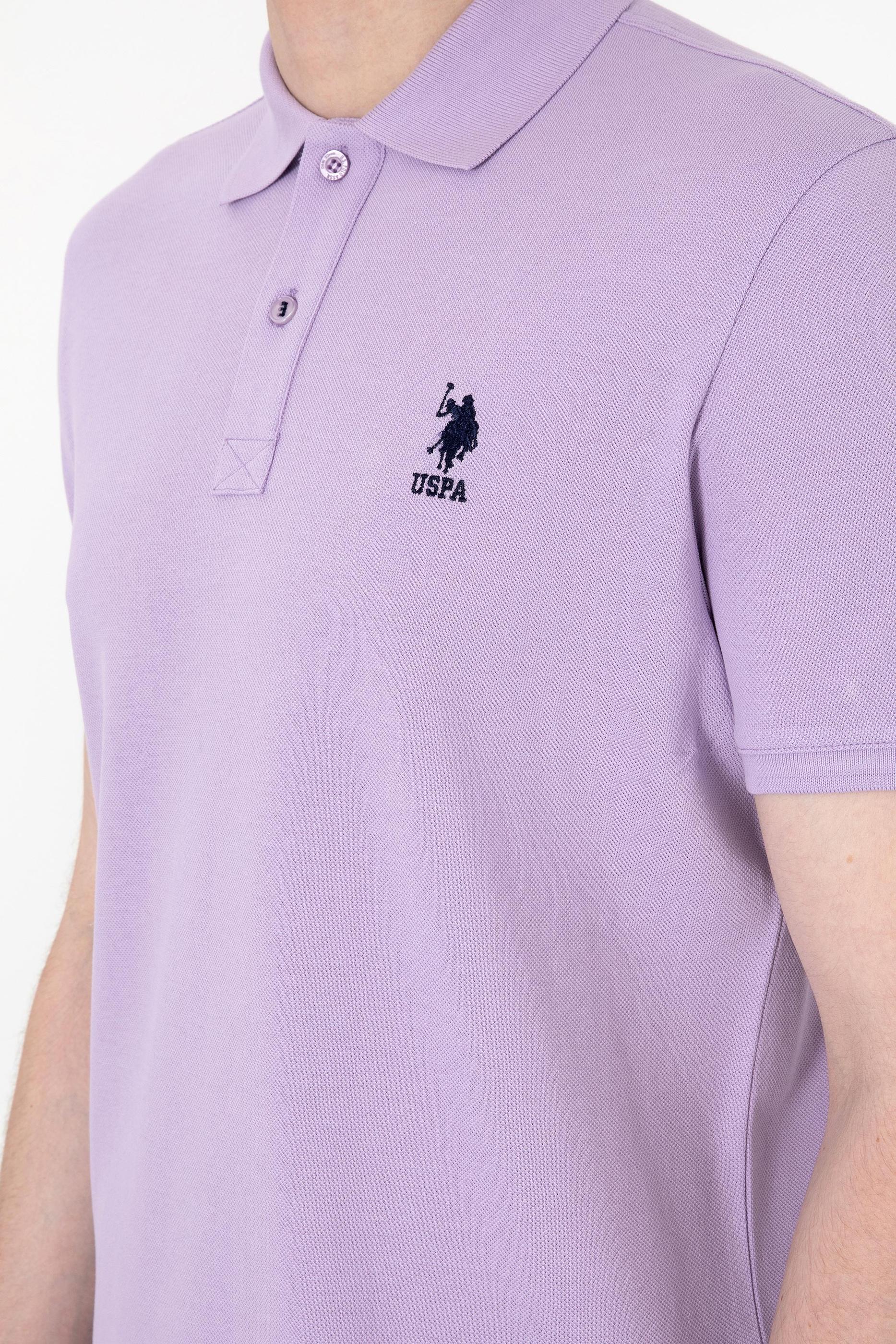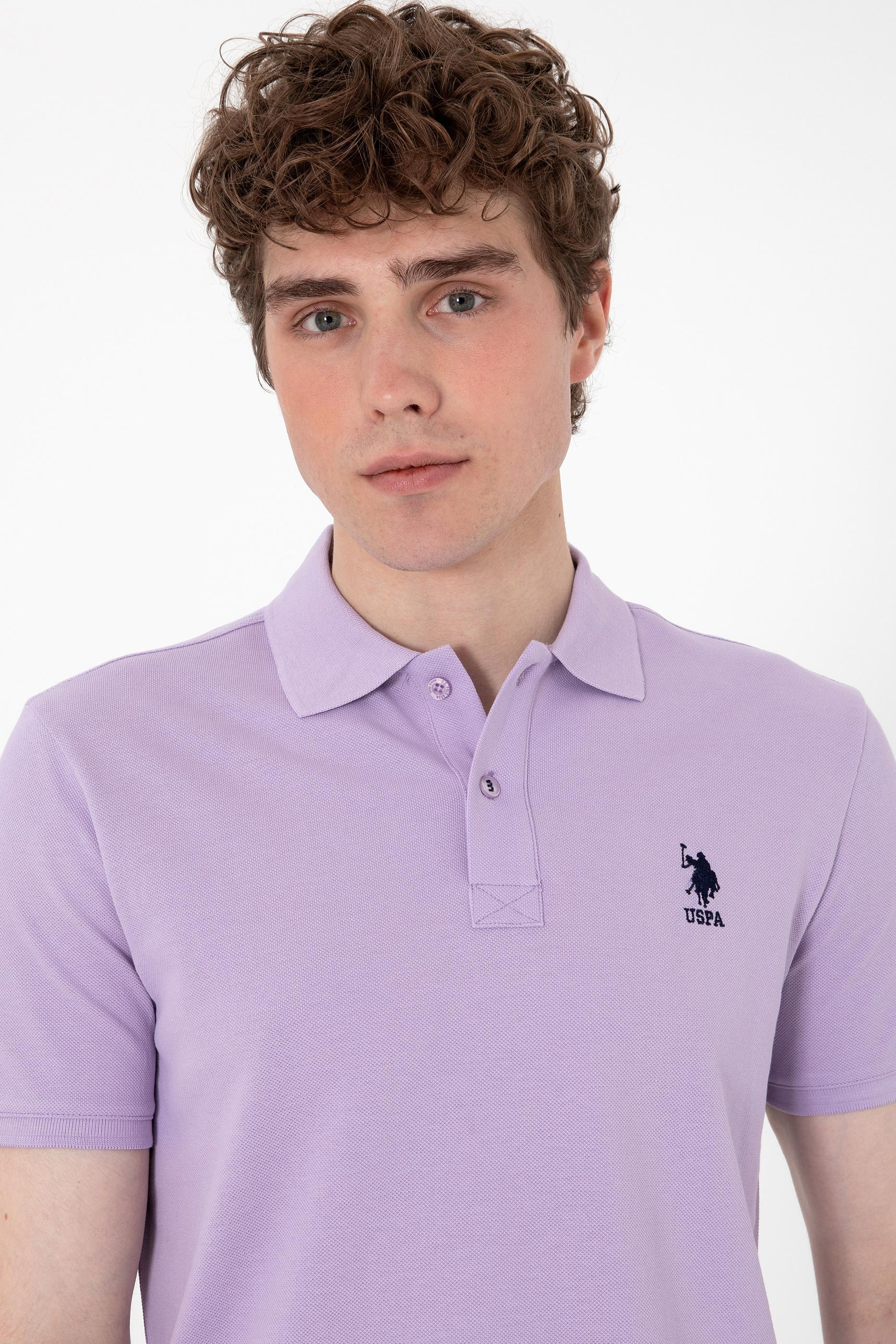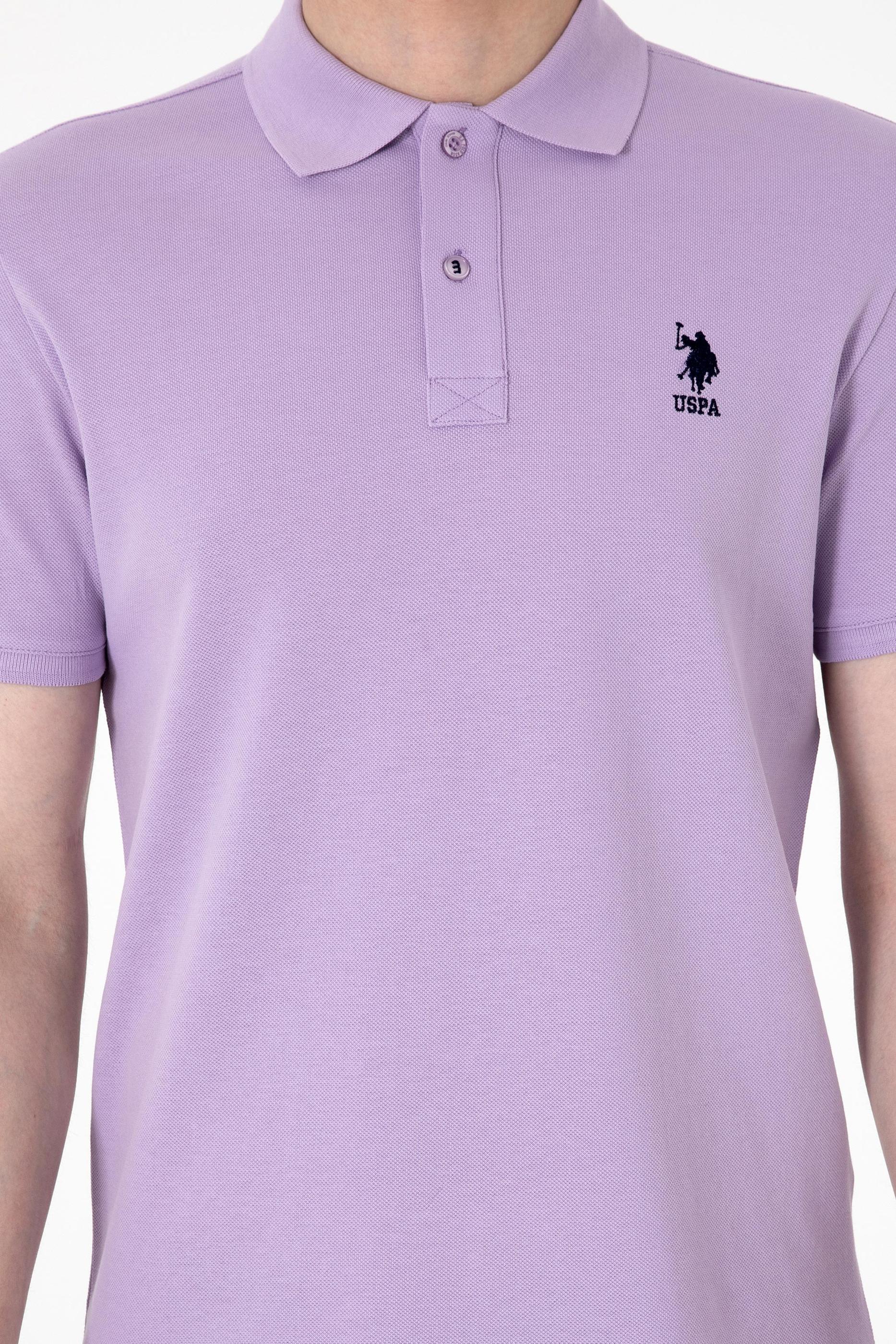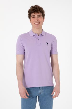 - Erkek Slim Fit Polo Yaka Lila Basic Tişört