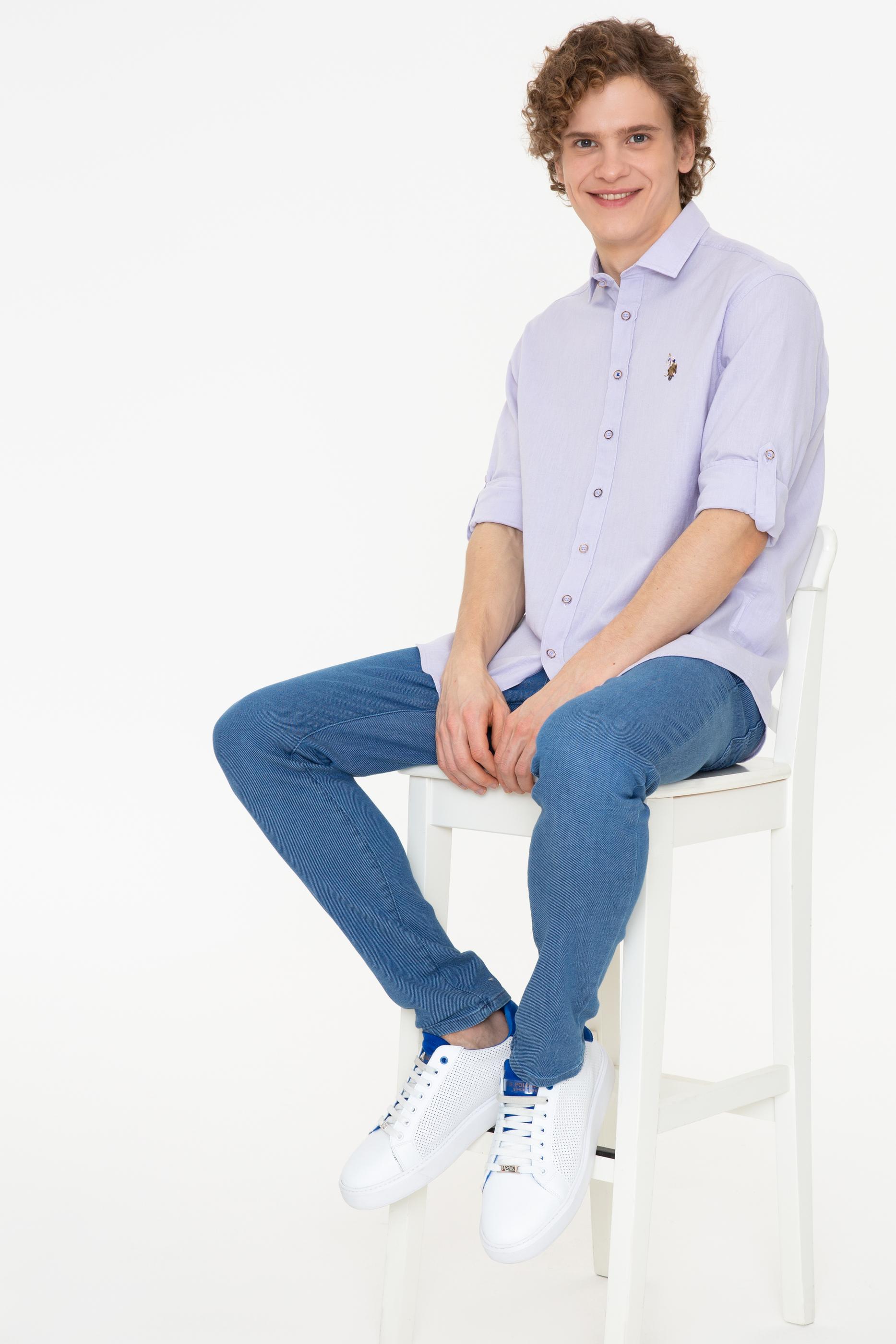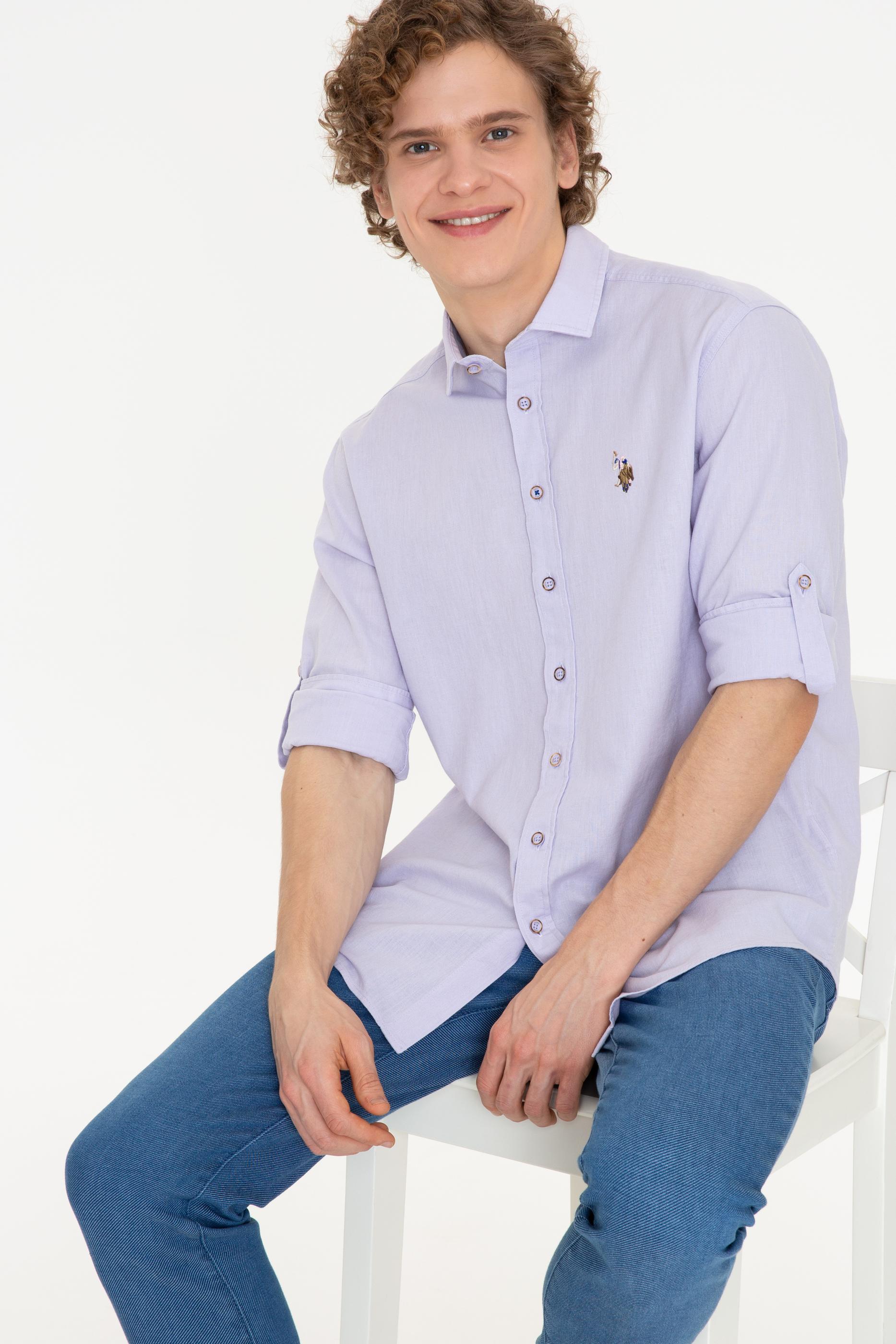 Erkek Lila Uzun Kollu Basic Gömlek