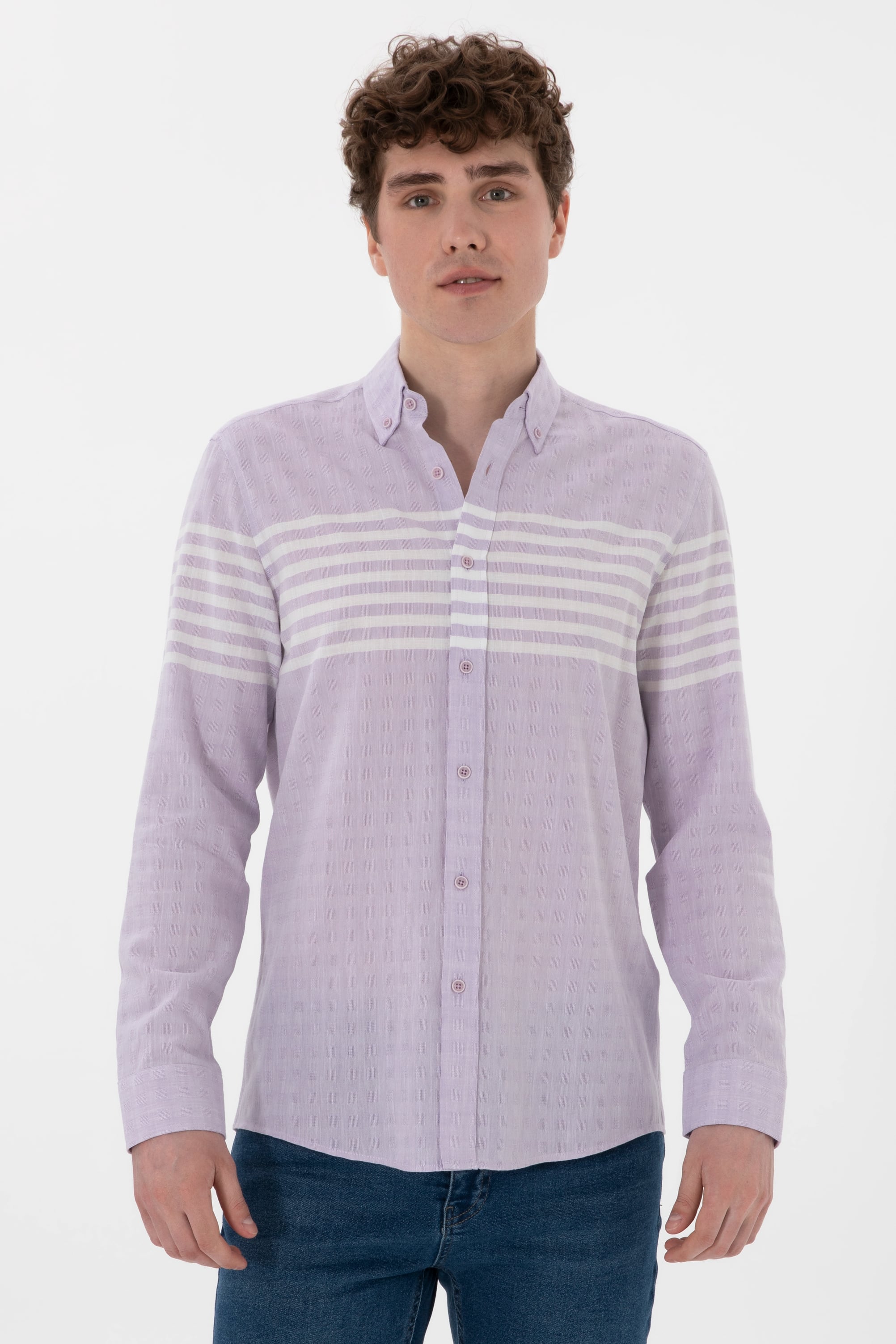 Erkek Lila Uzun Kollu Gömlek