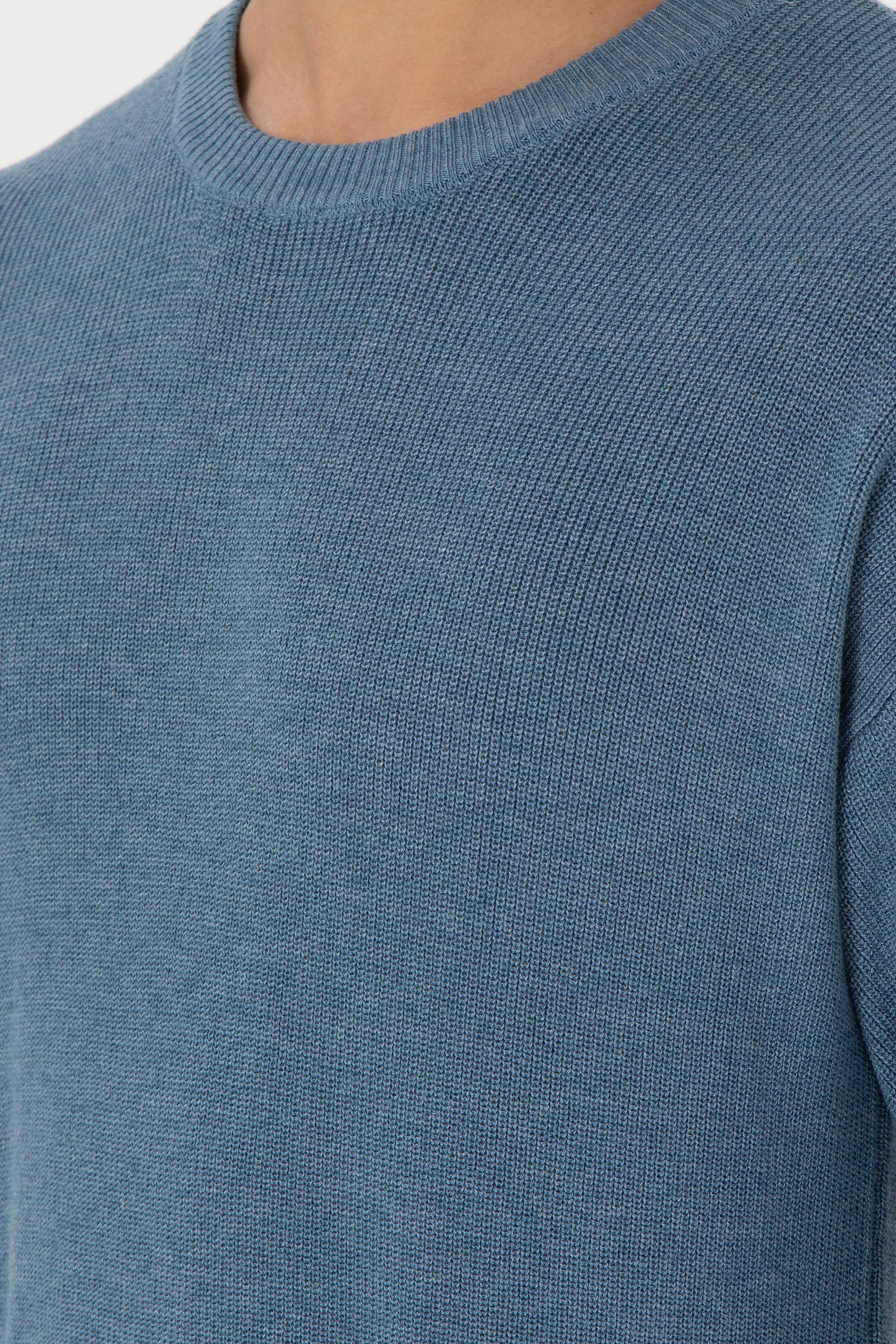 Erkek Regular Fit Bisiklet Yaka Mavi Basic Kazak