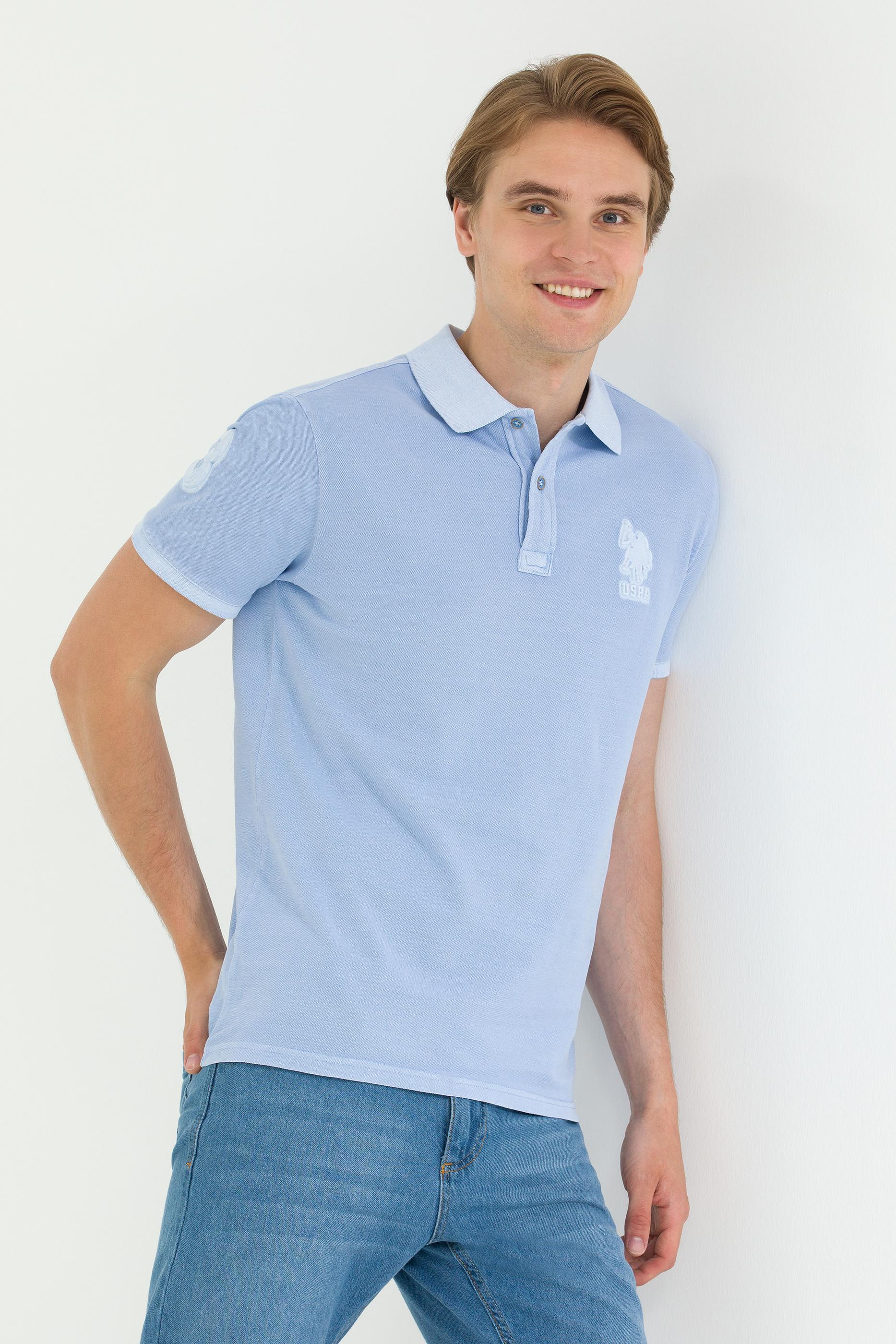 Erkek Mavi Basic Polo Yaka Tişört