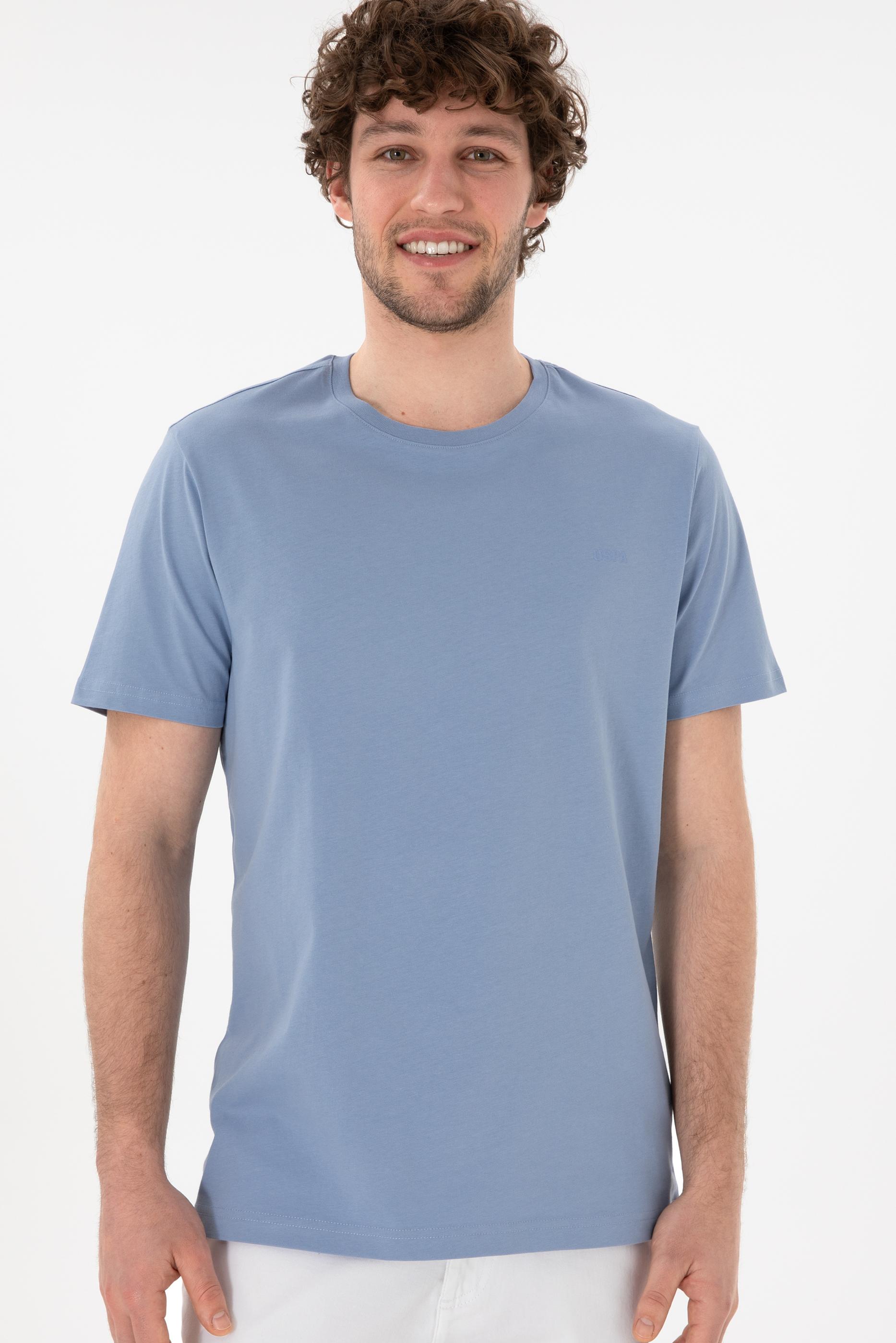 Erkek Regular Fit Bisiklet Yaka Mavi Basic Tişört