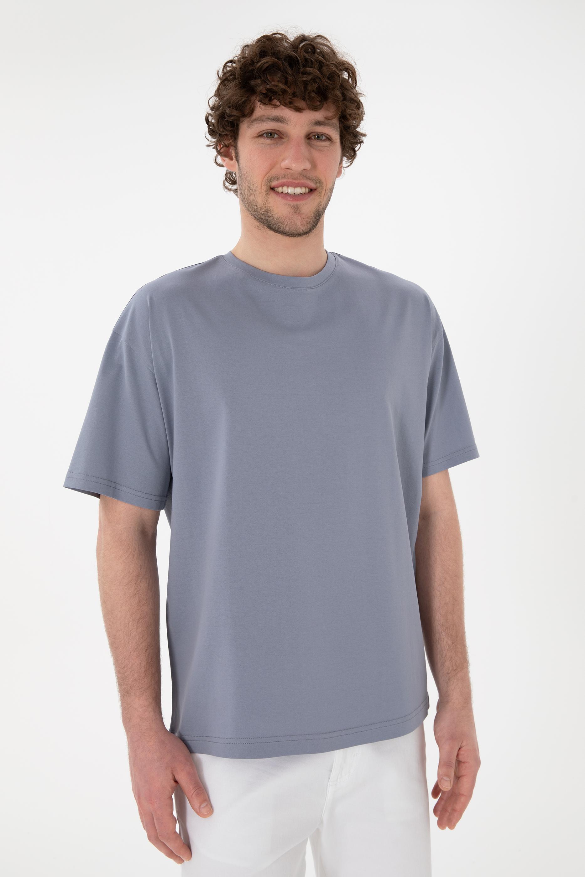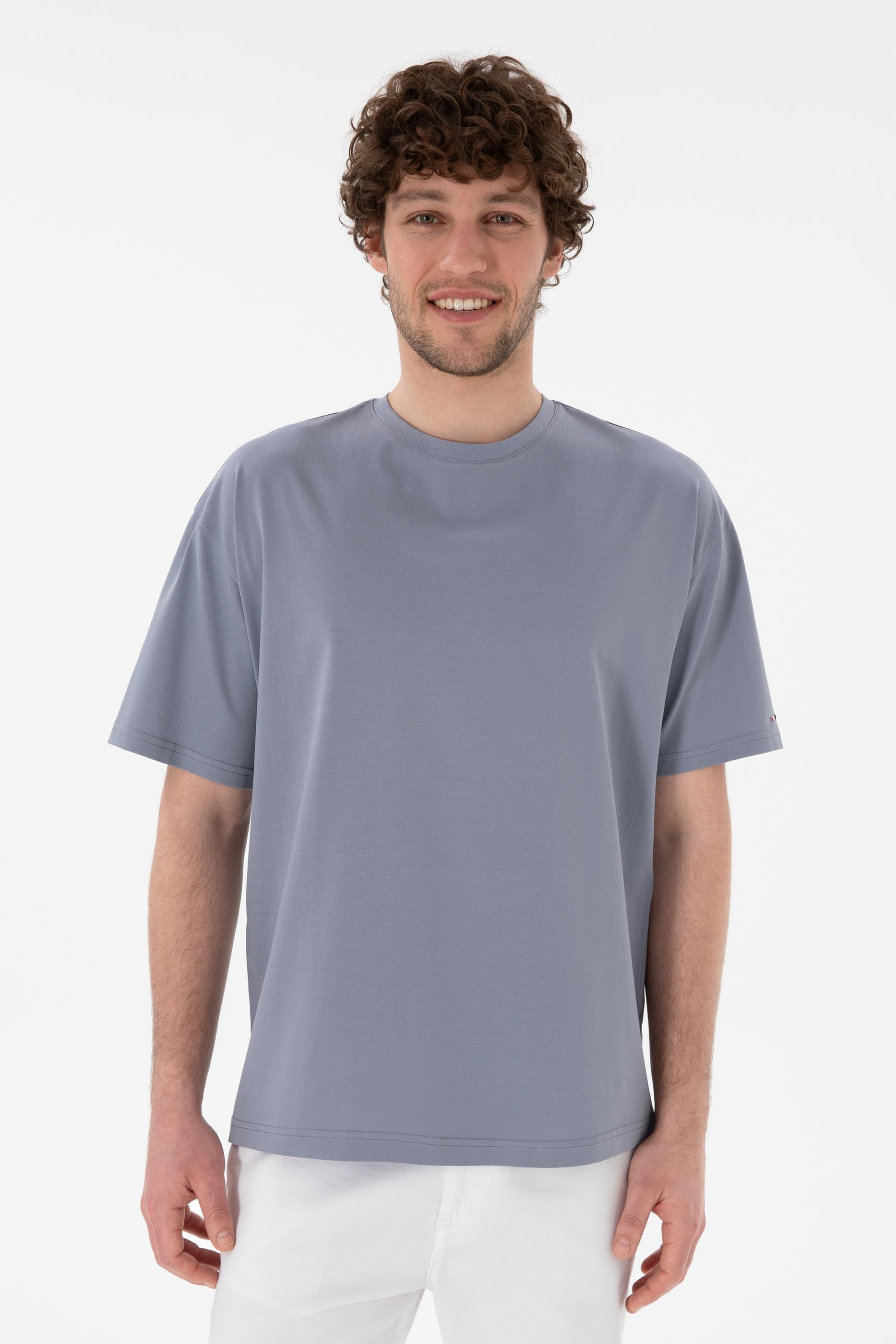 Erkek Comfort Fit Bisiklet Yaka Mavi Merserize Basic Tişört