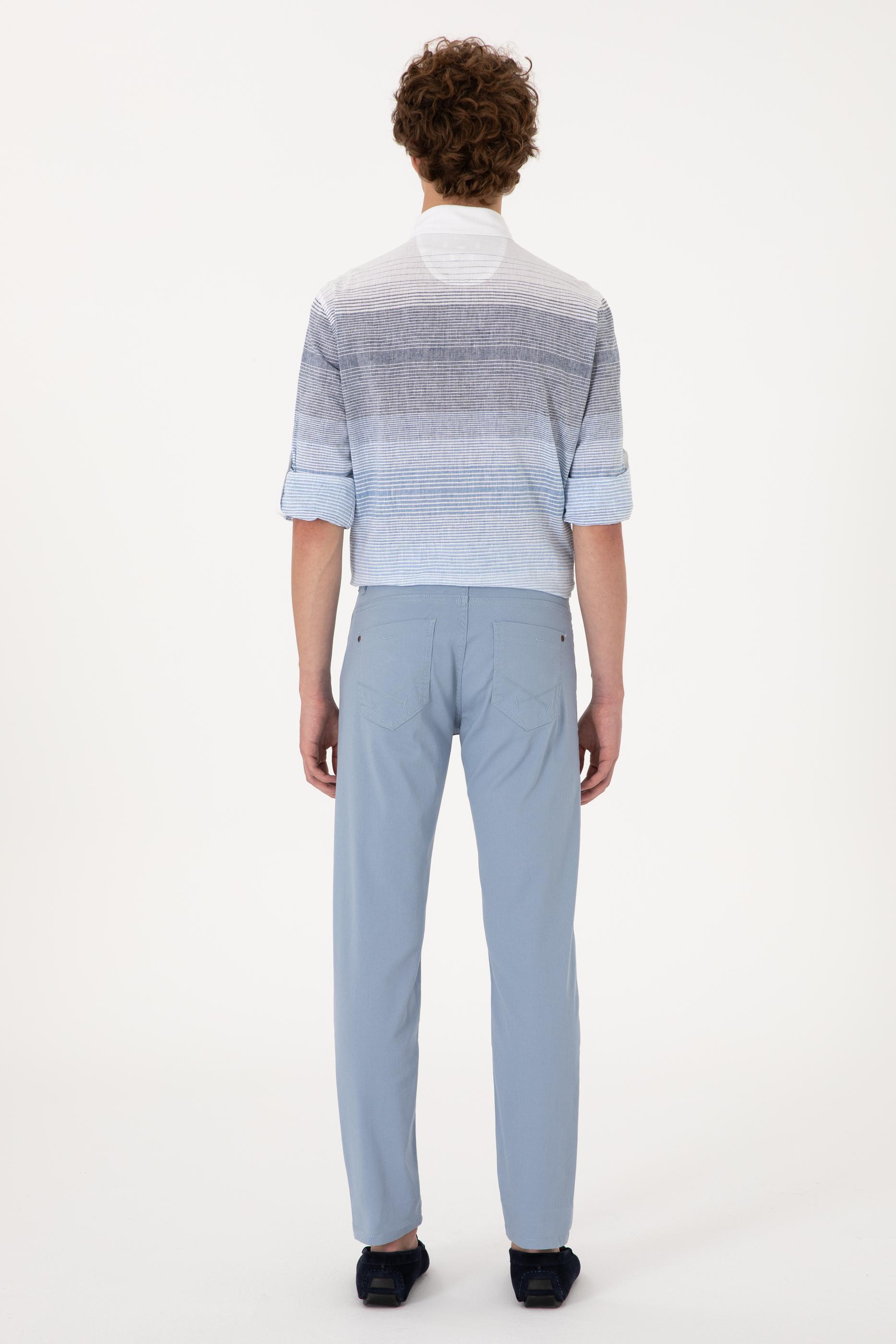 Erkek Slim Fit Mavi Kanvas Pantolon
