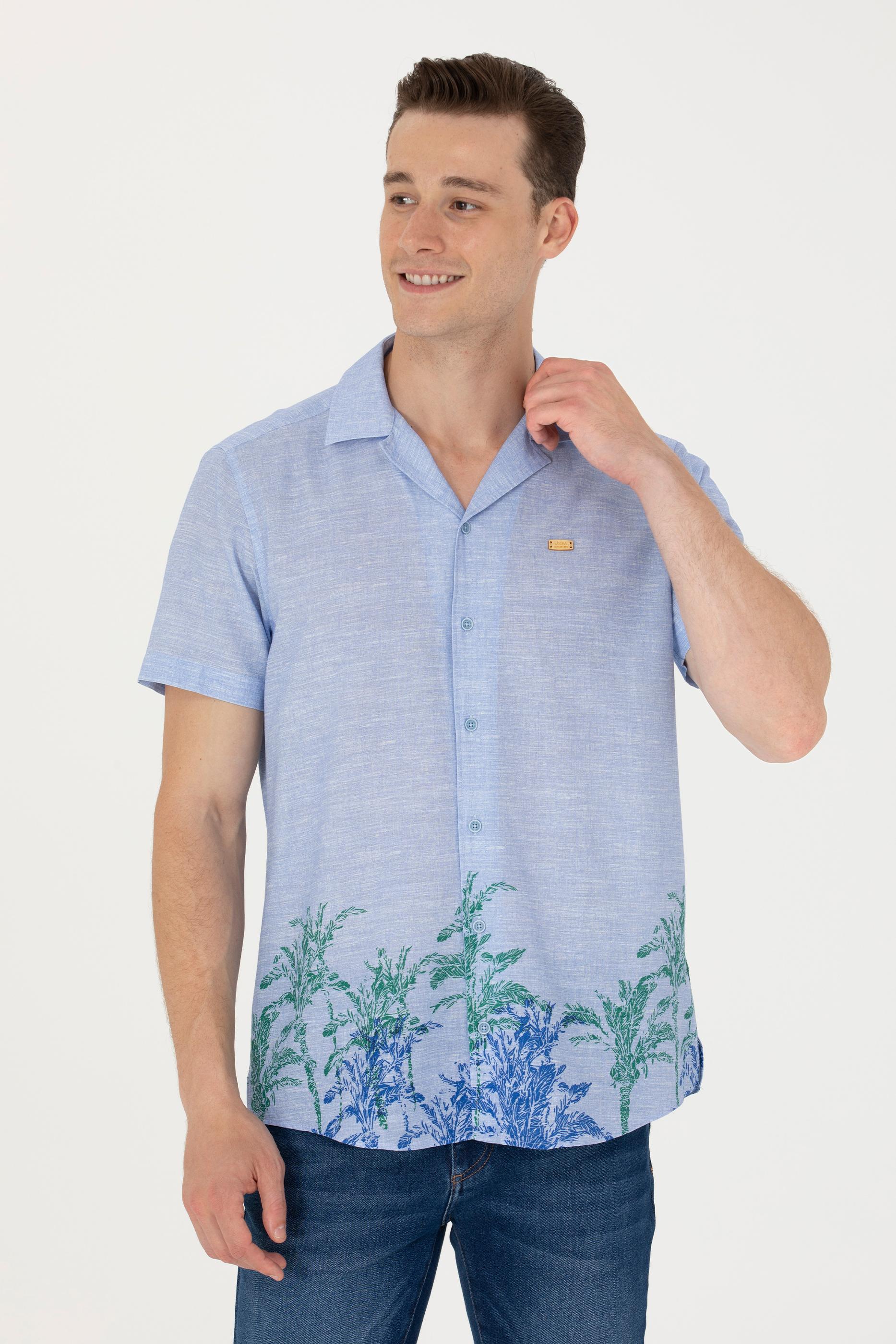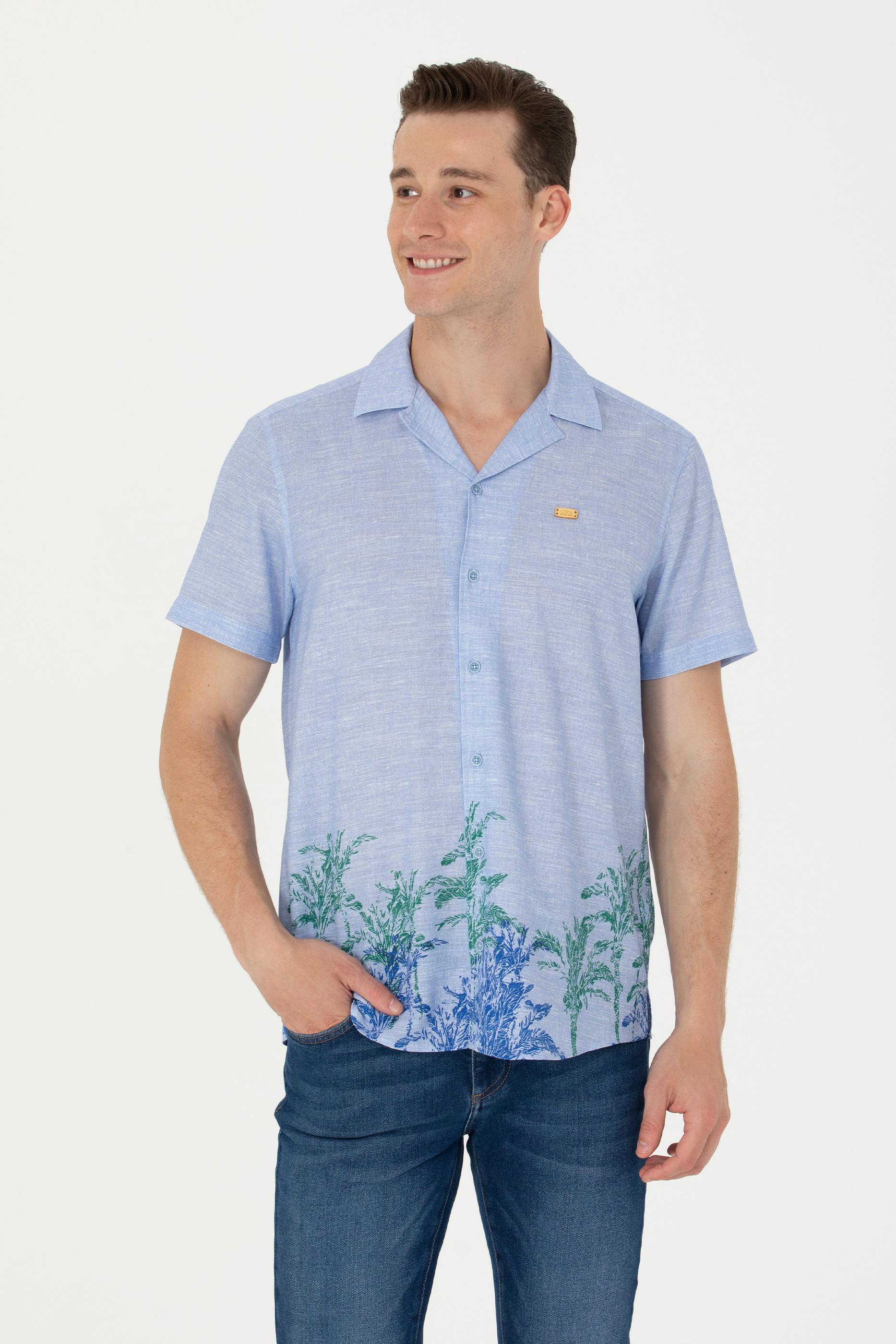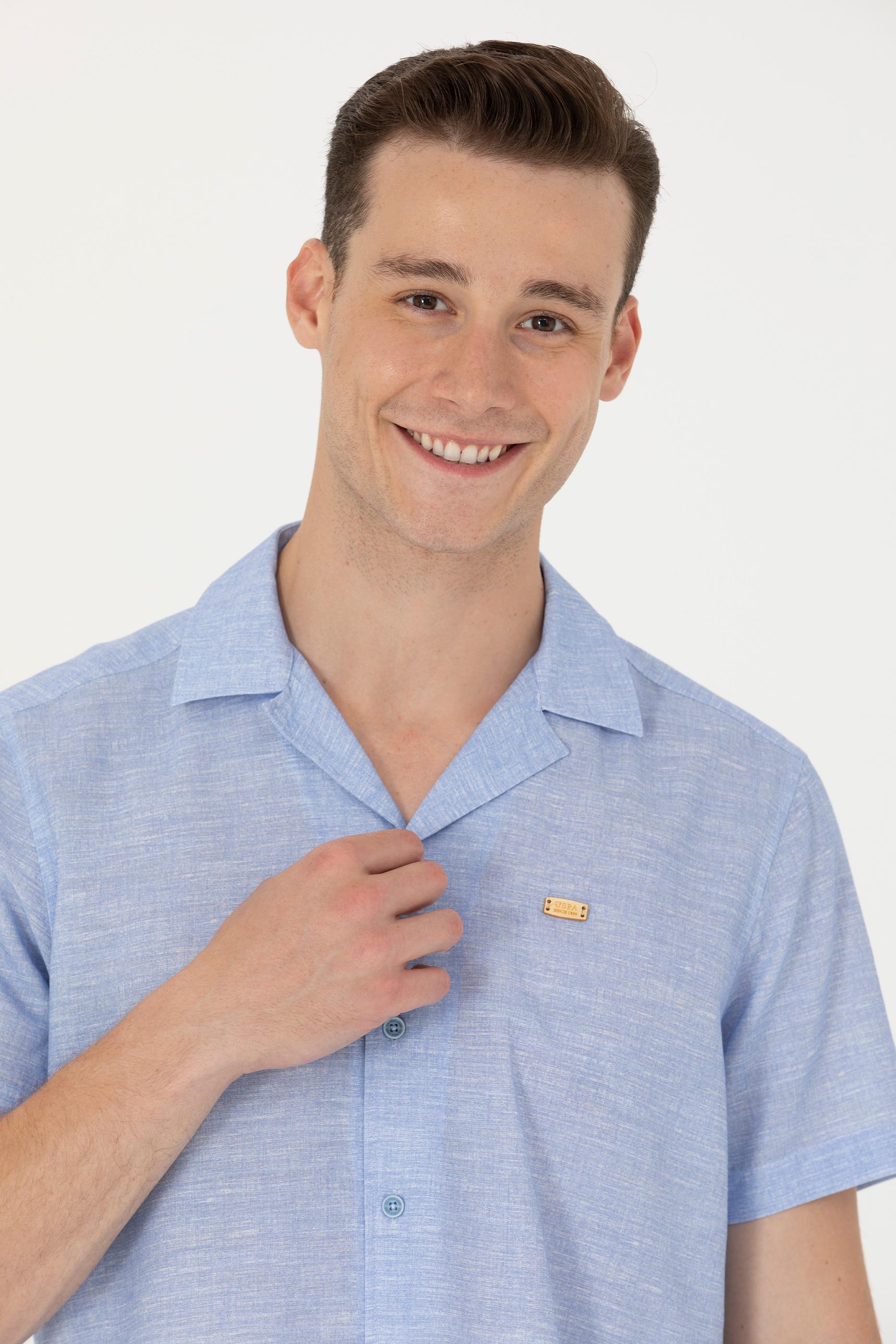 Erkek Apaş Yaka Mavi Kısa Kollu Gömlek