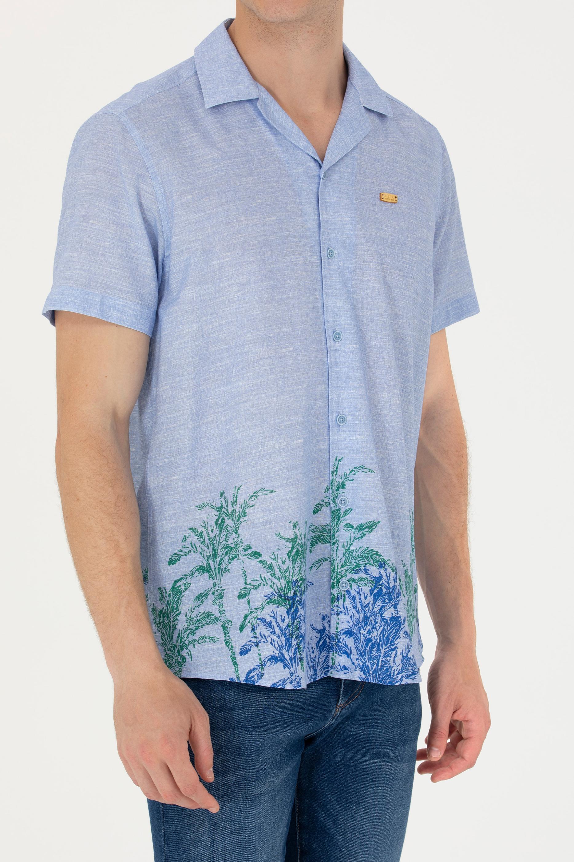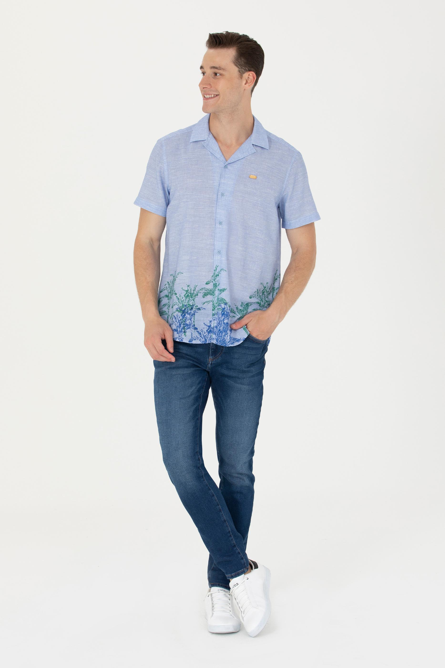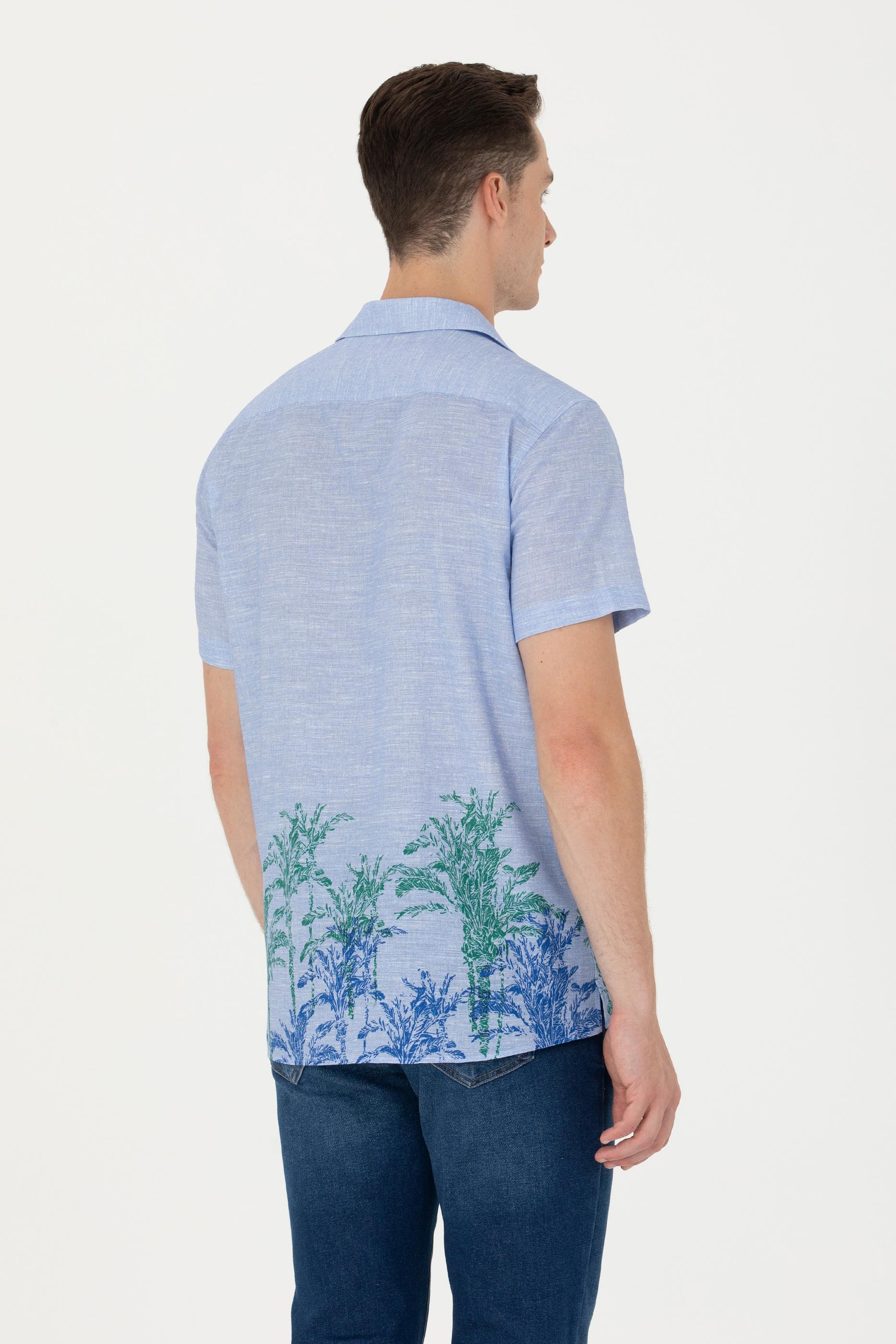 Erkek Apaş Yaka Mavi Kısa Kollu Gömlek