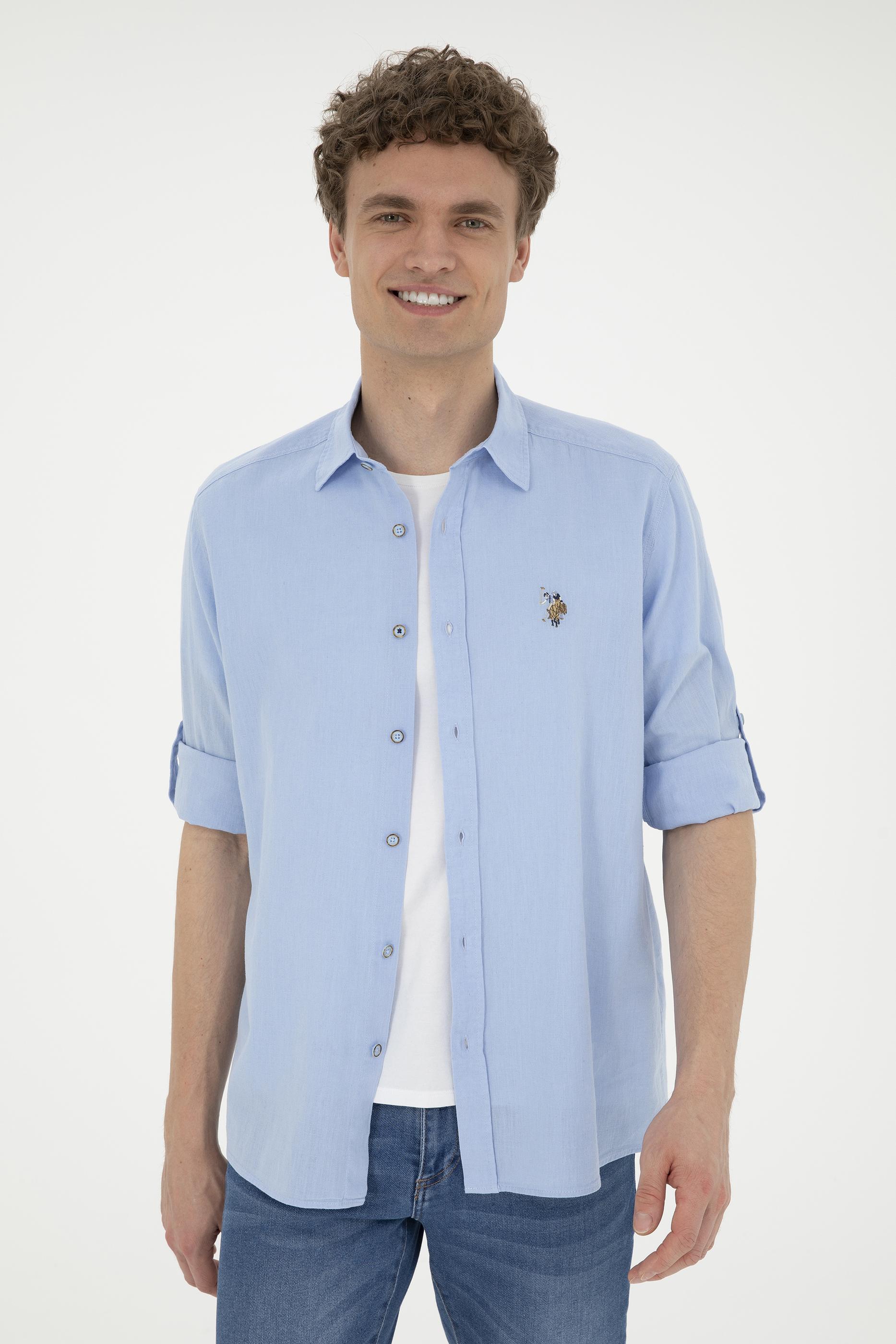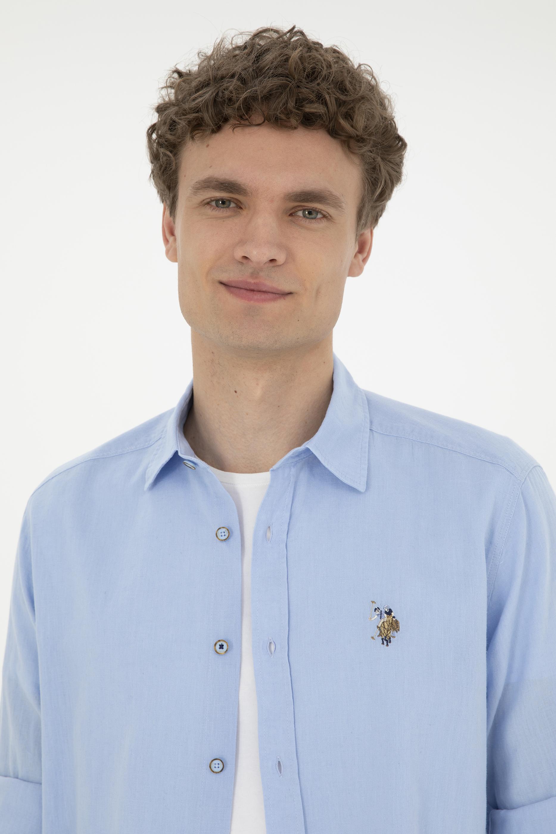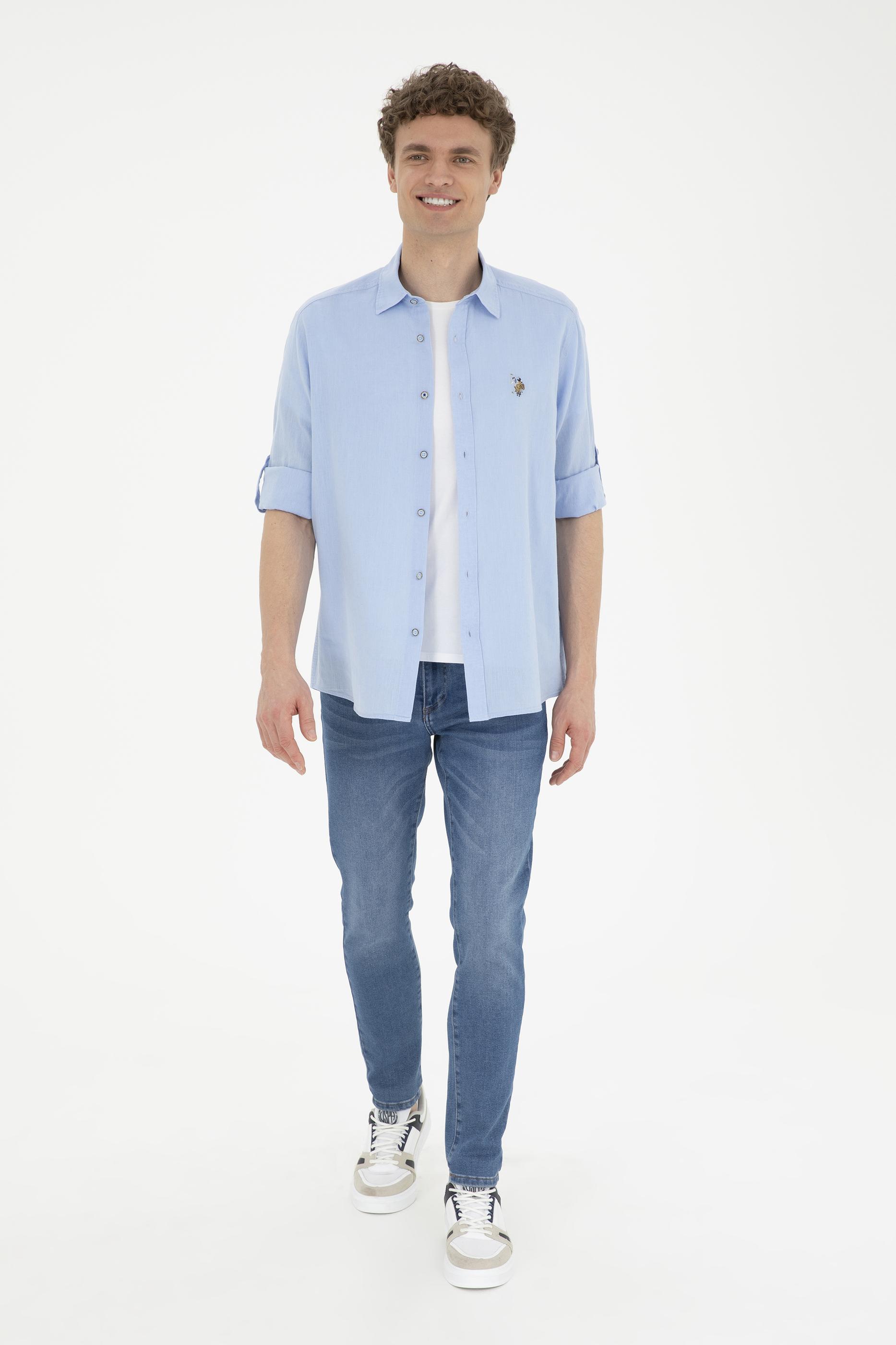 Erkek Mavi Uzun Kollu Basic Gömlek