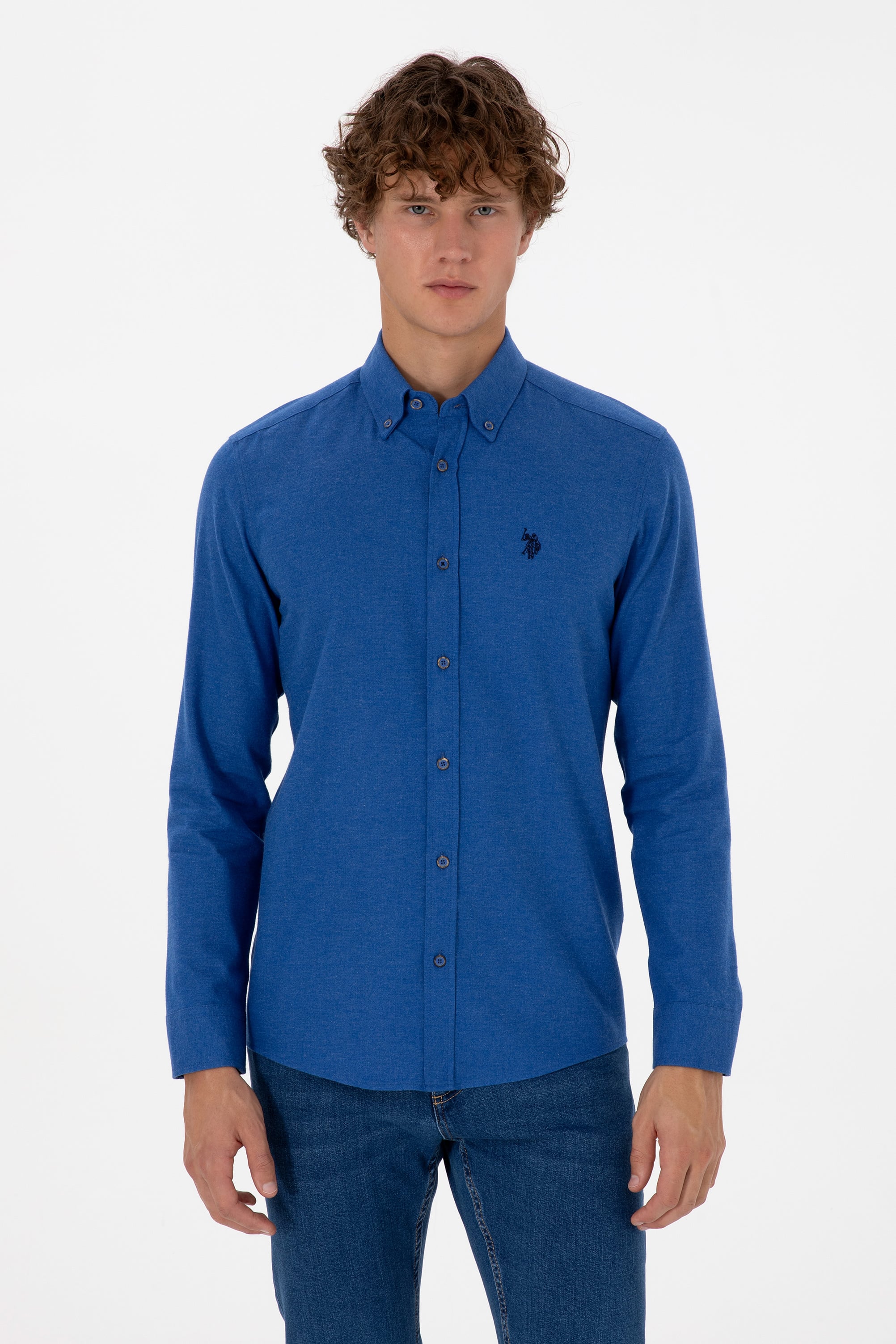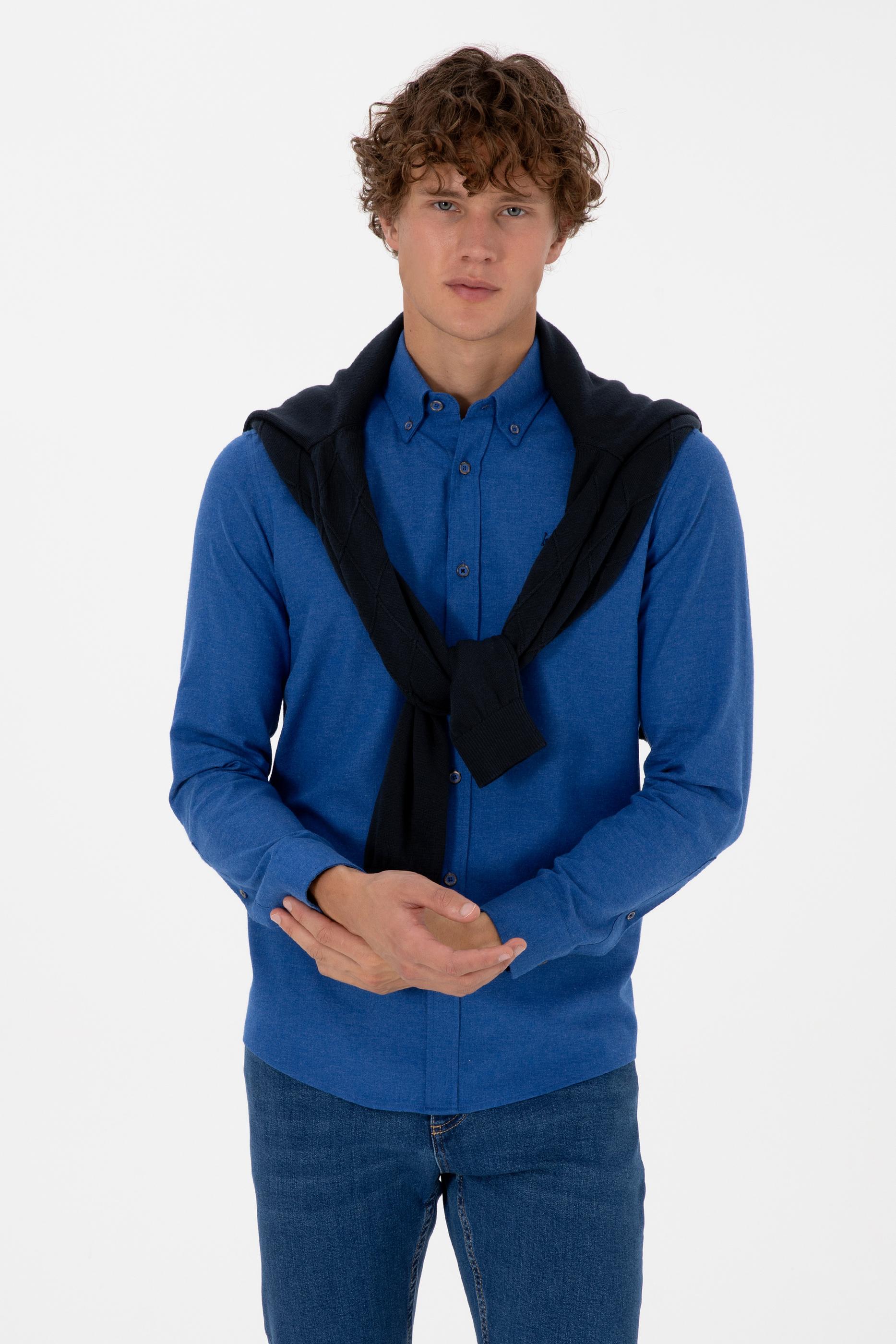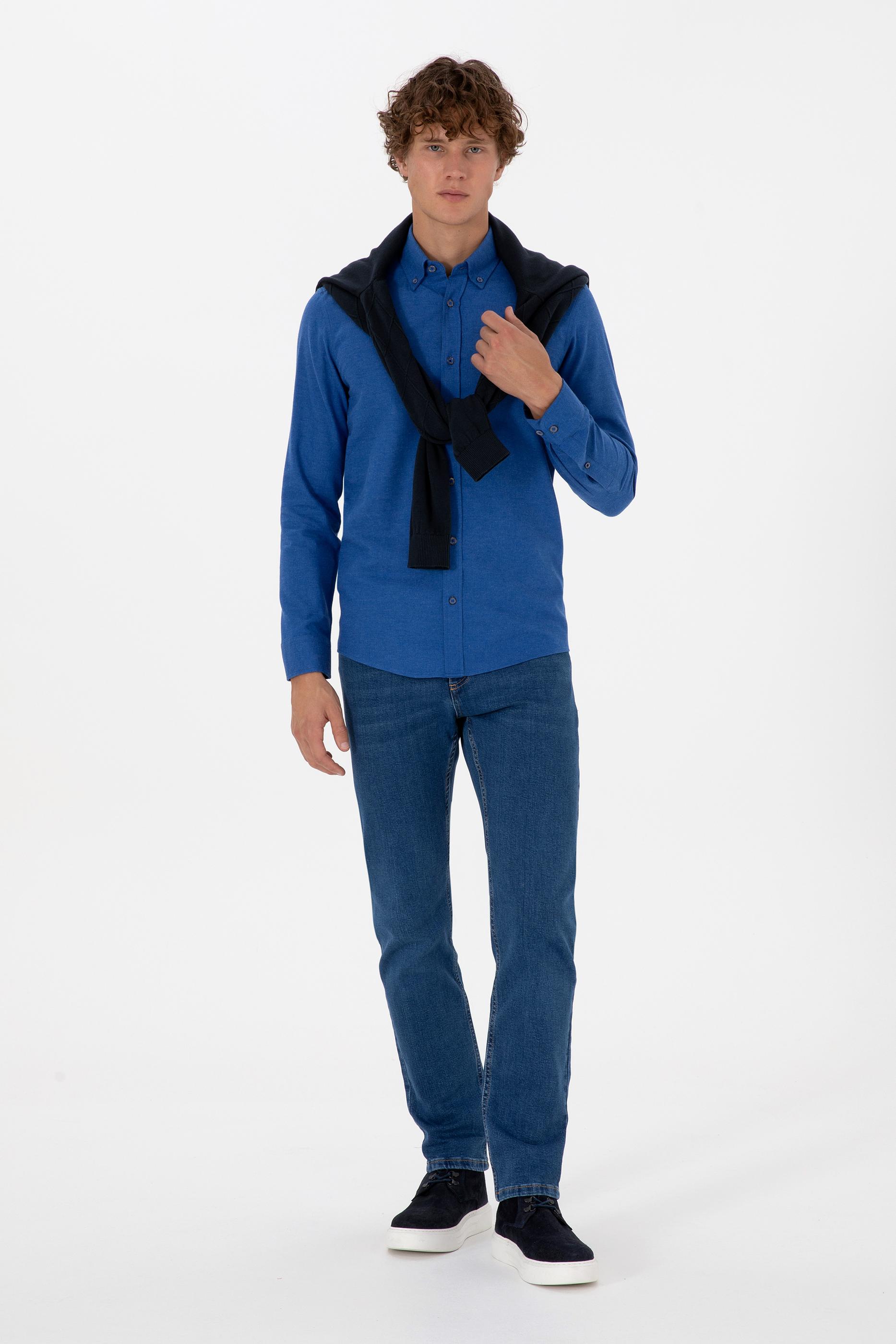 Erkek Mavi Uzun Kollu Basic Gömlek