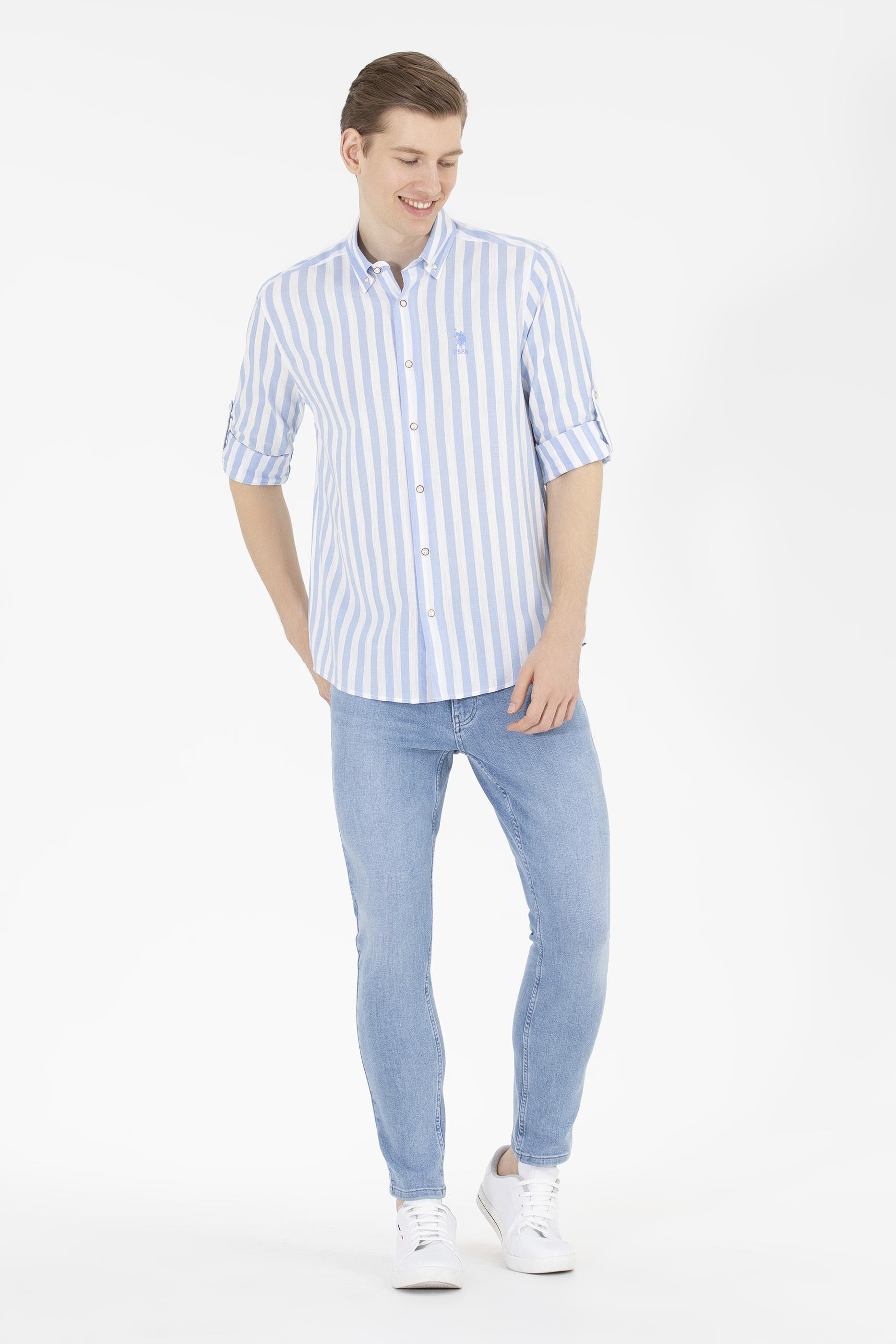 Erkek Mavi Uzun Kollu Gömlek