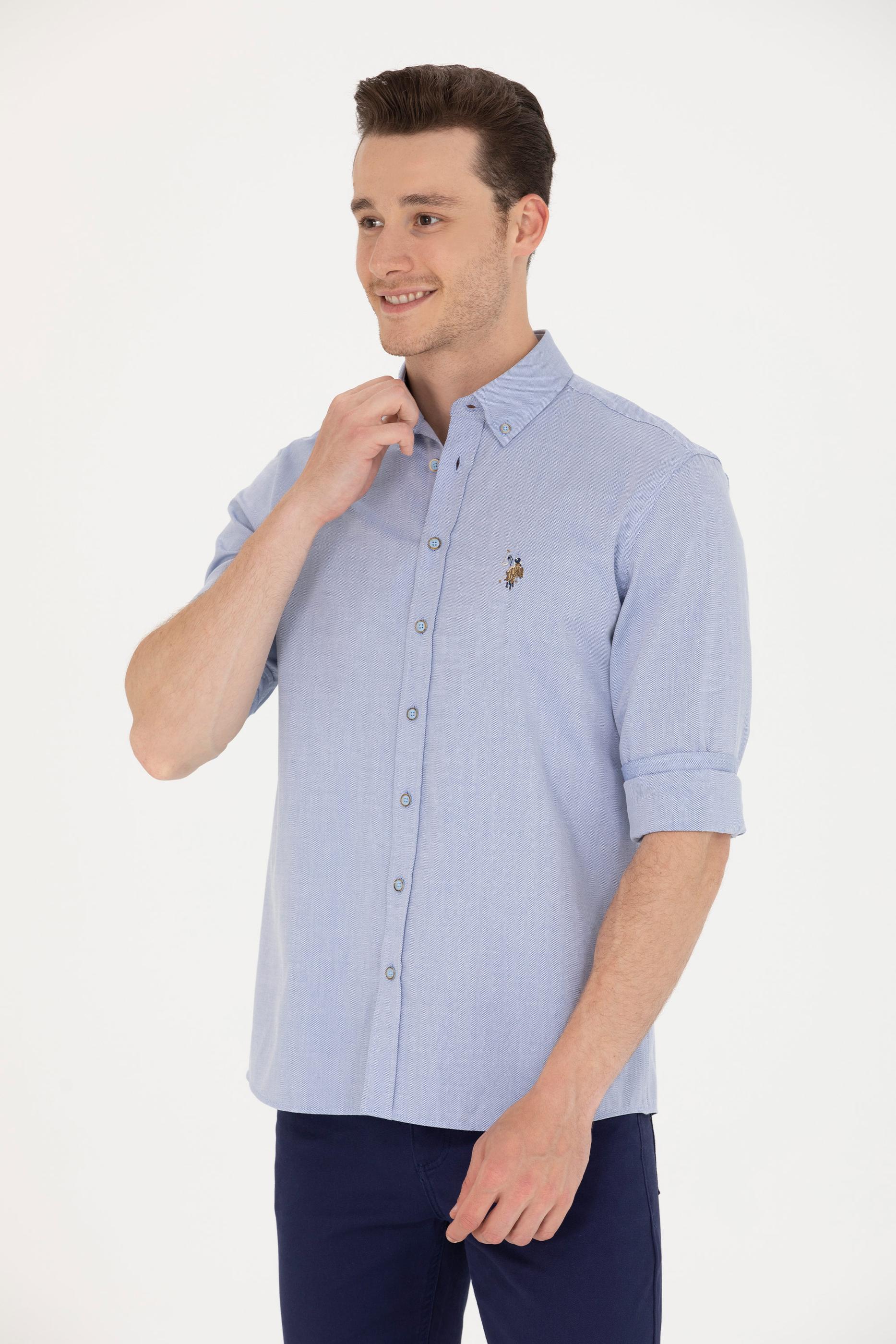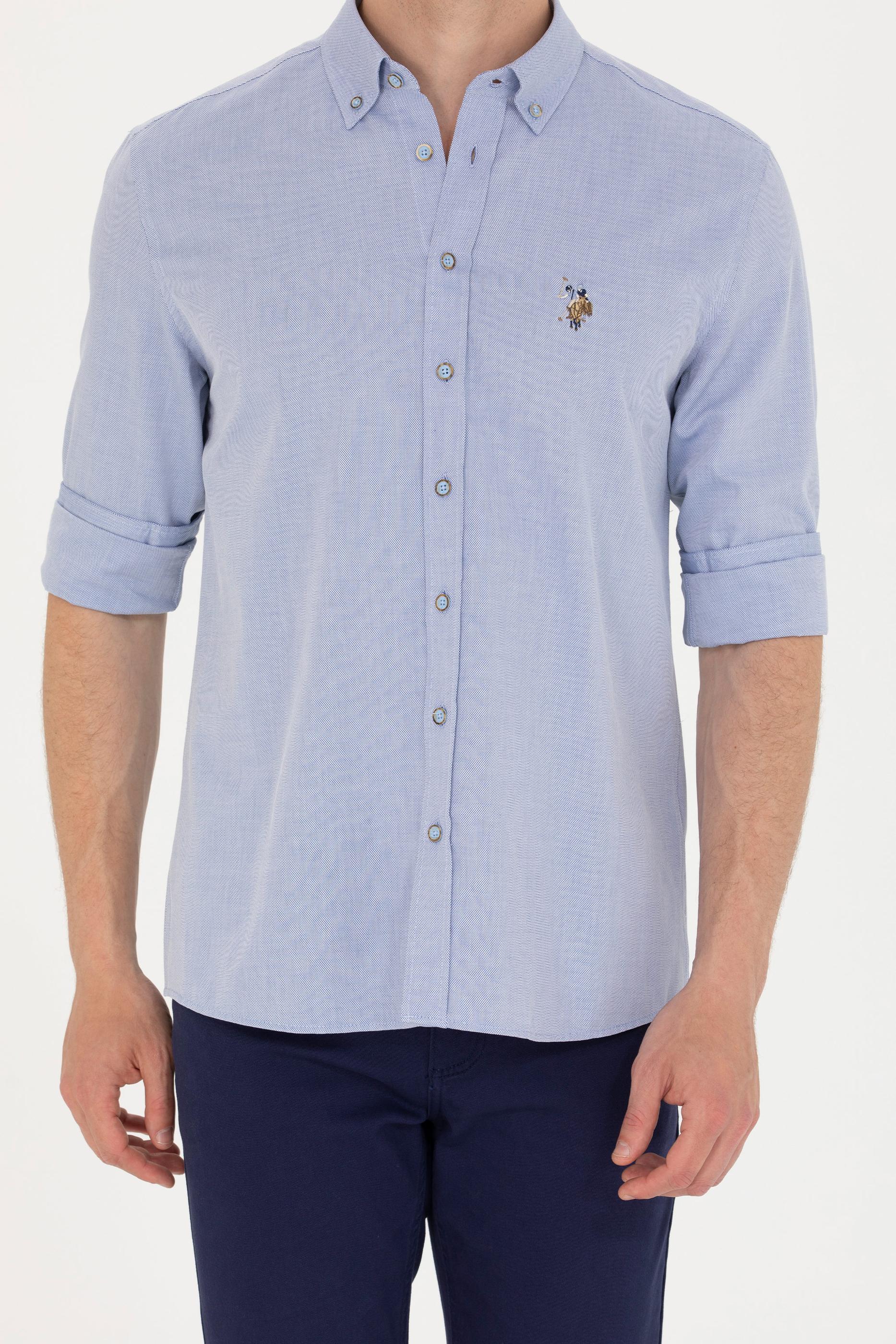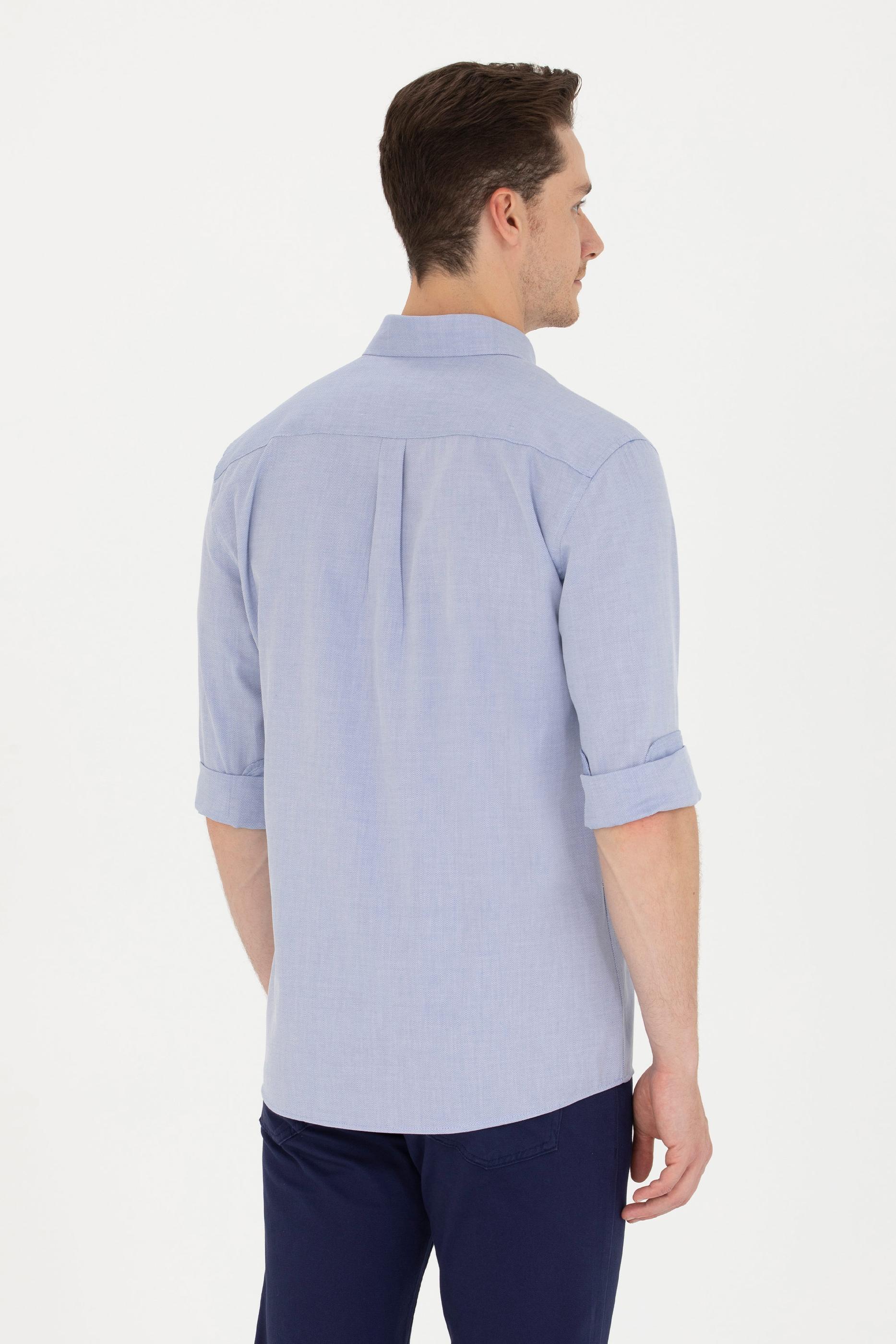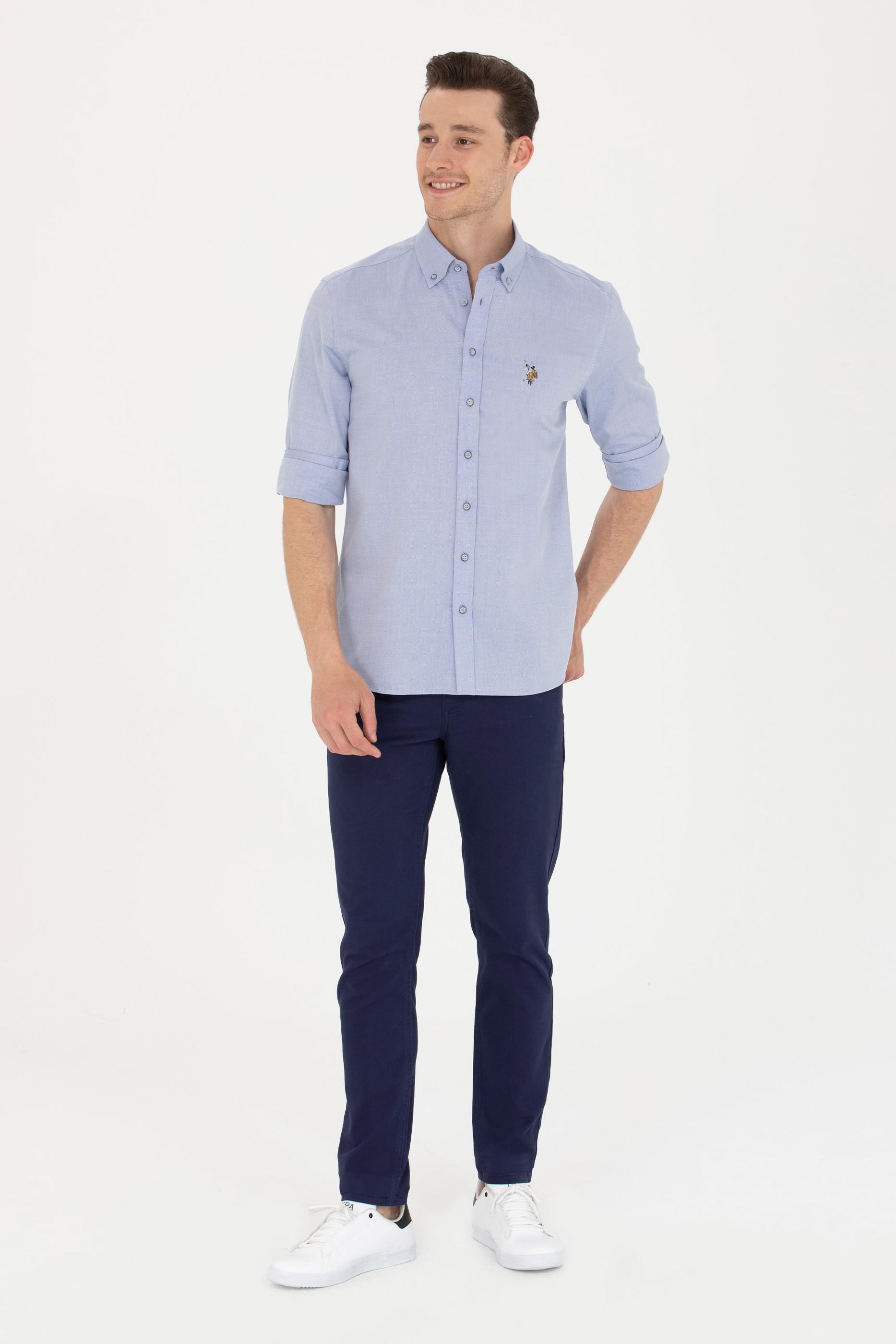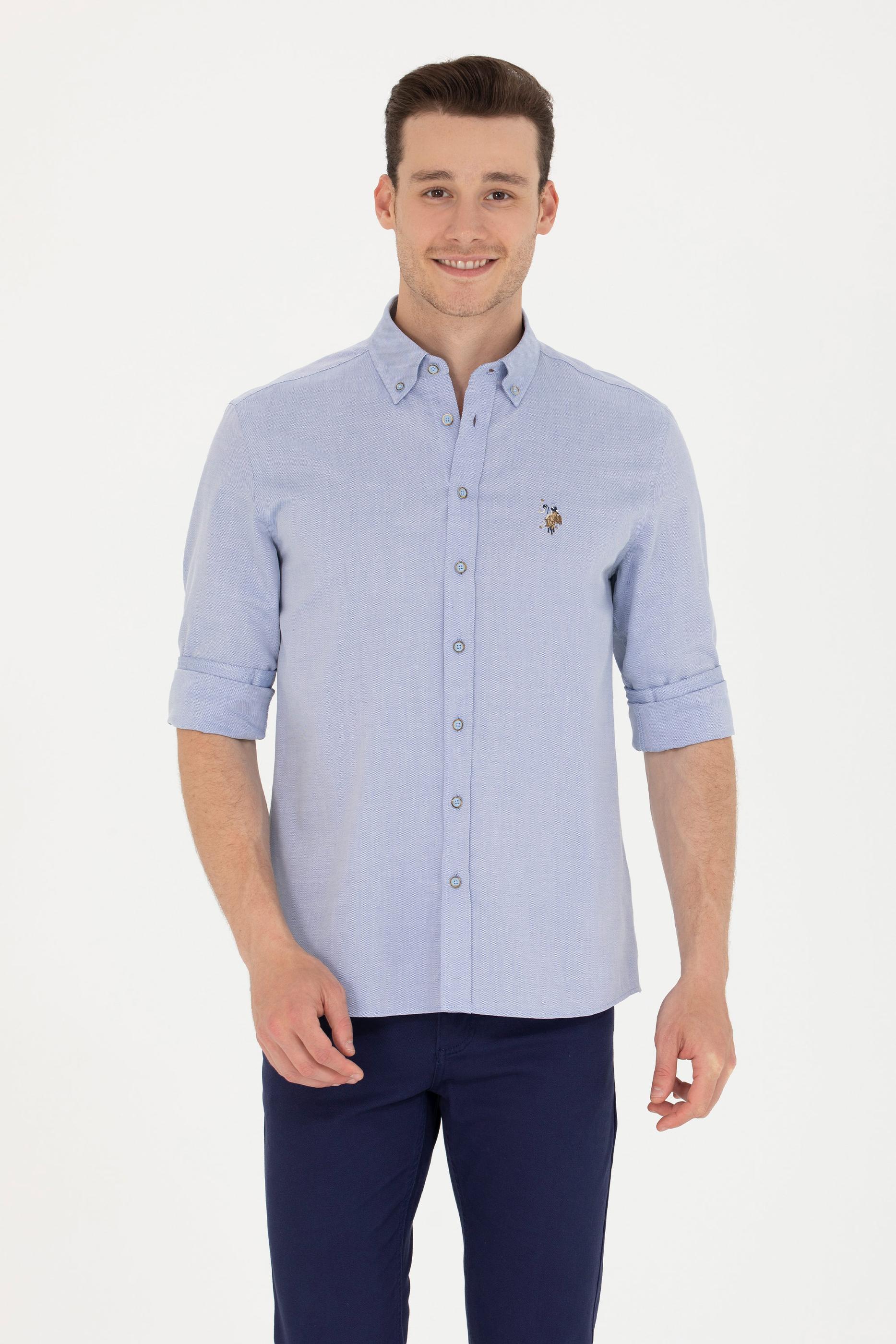 Erkek Mavi Uzun Kollu Gömlek